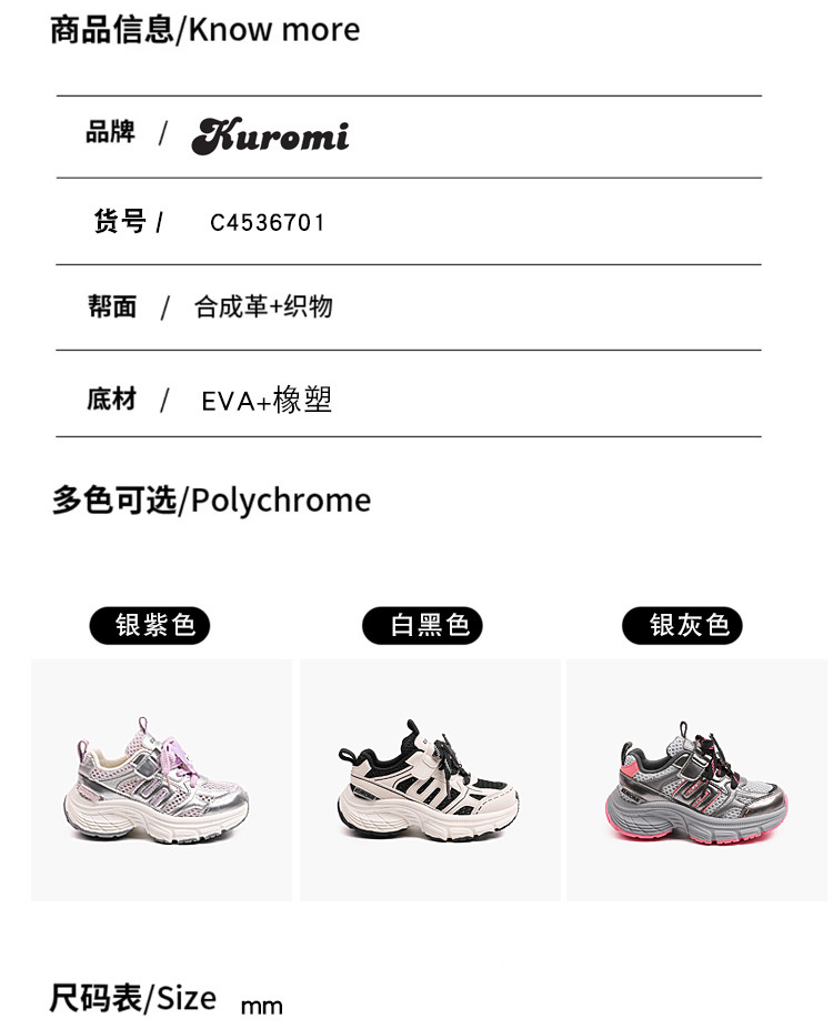 商品名称:【IP联名】夏季儿童运动鞋库洛米网面透气跑步鞋单网舒适老爹鞋 148545