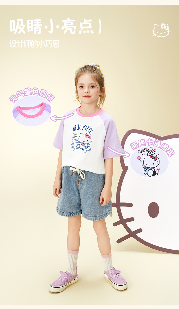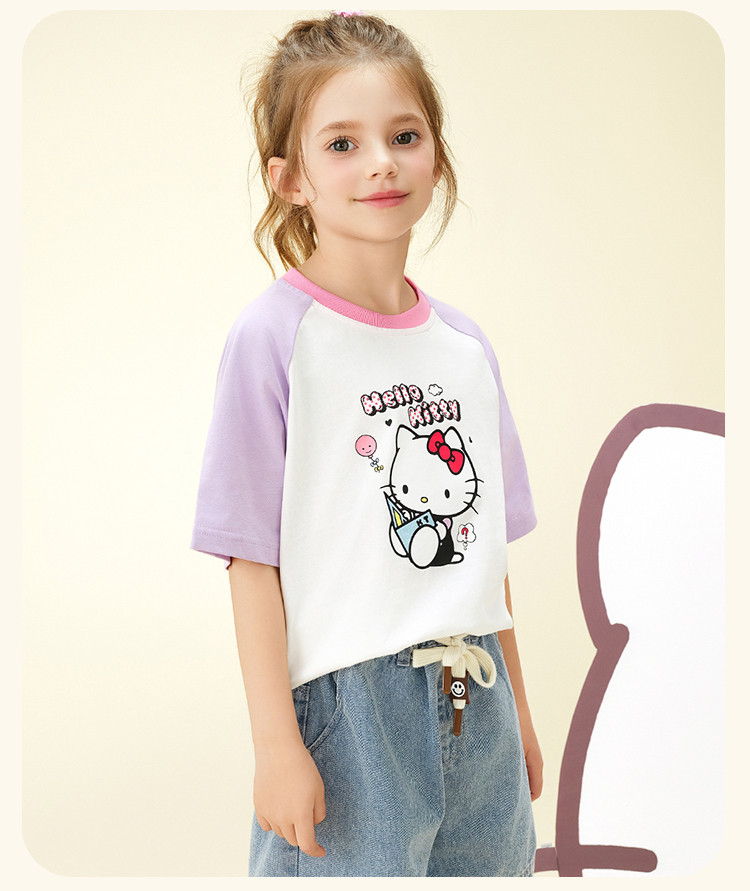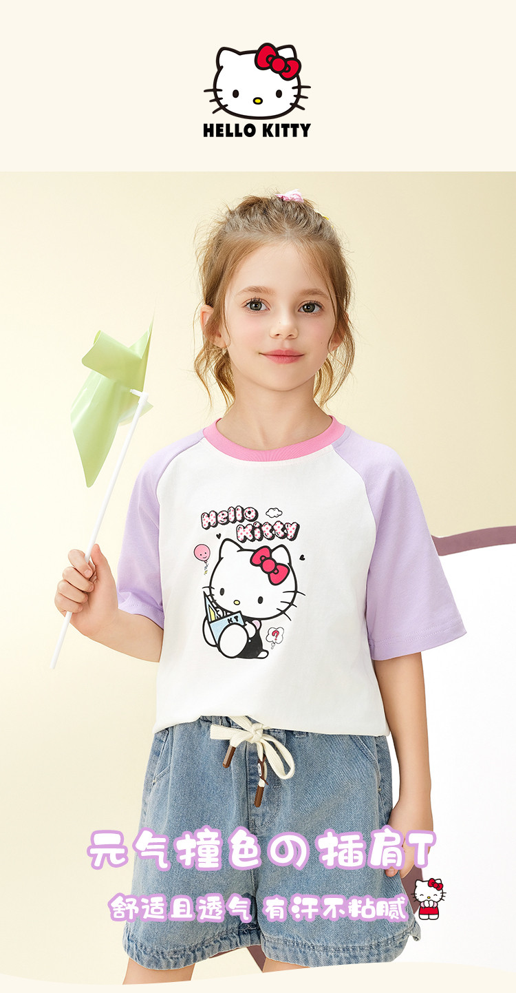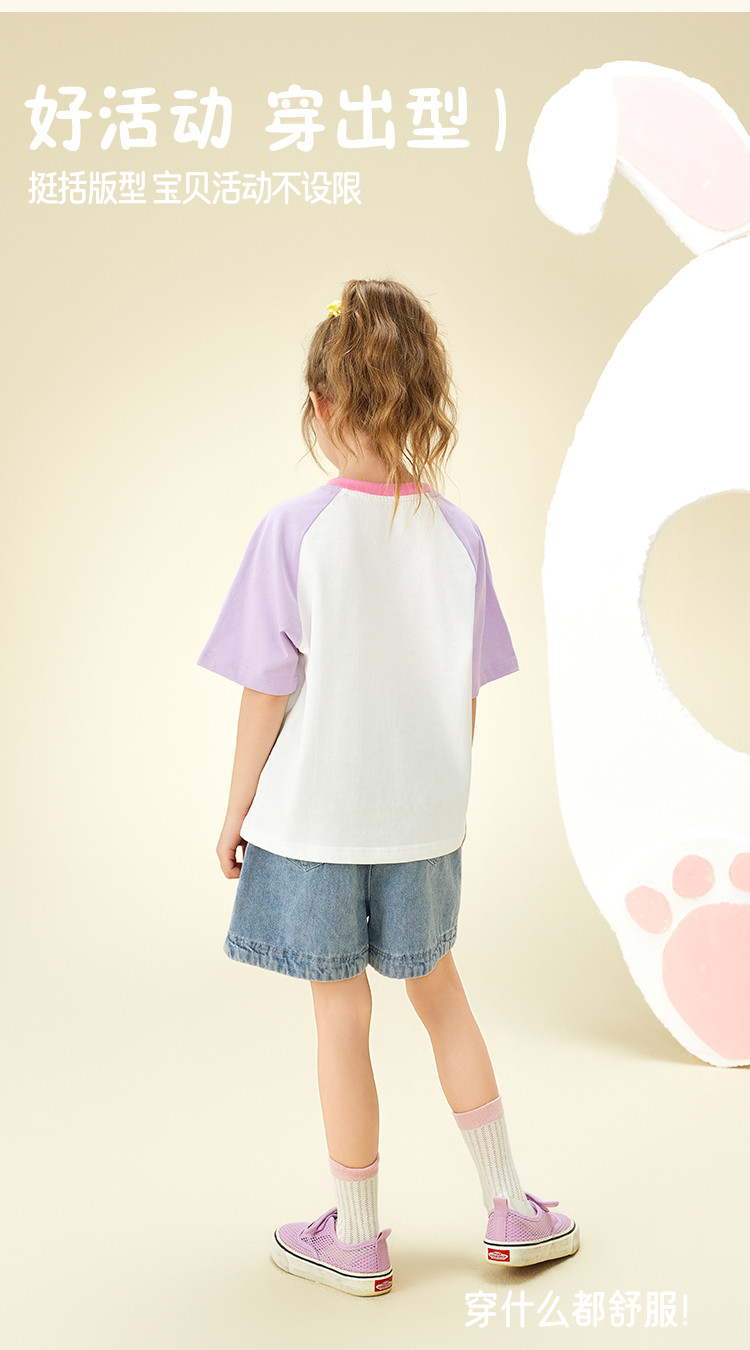 商品名称:【撞色拼接短袖T恤】女童夏季2025款可爱简约风中大童装 628830