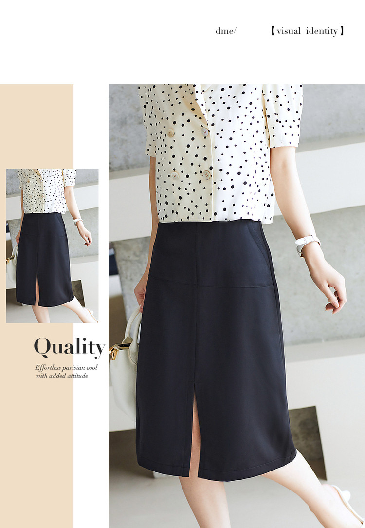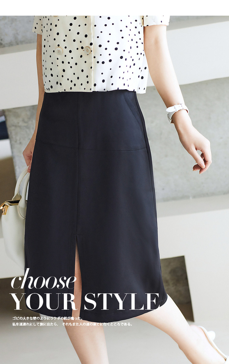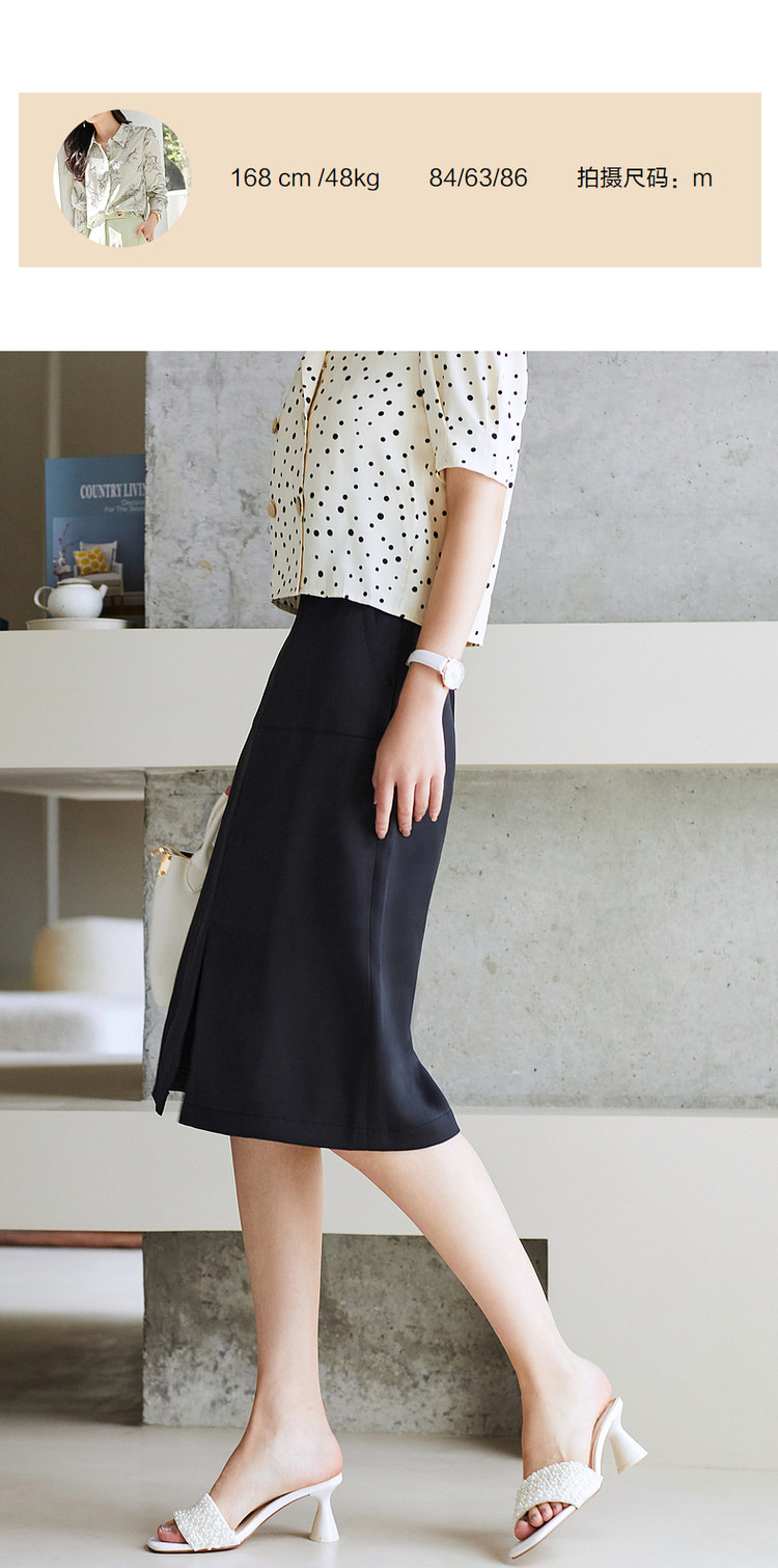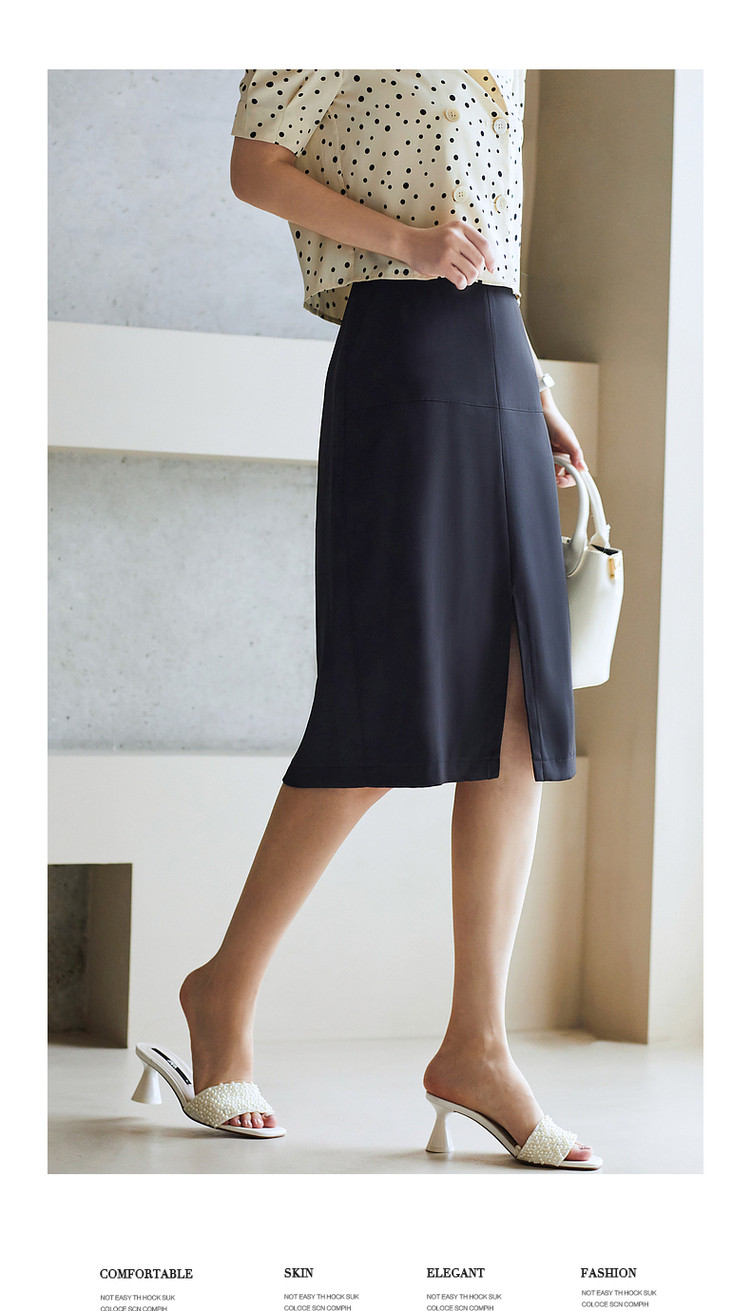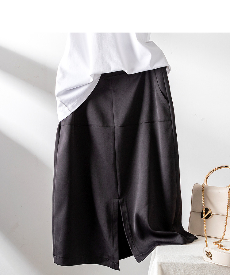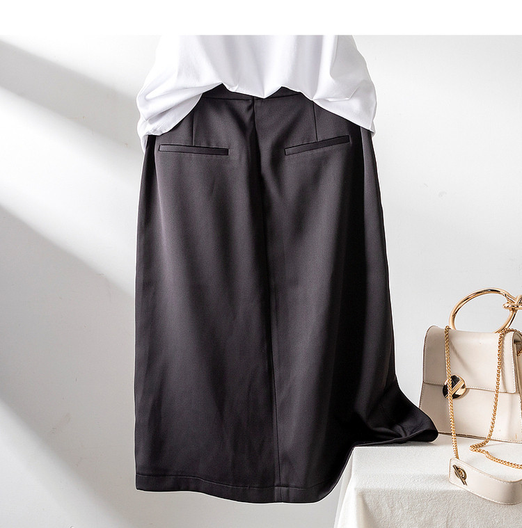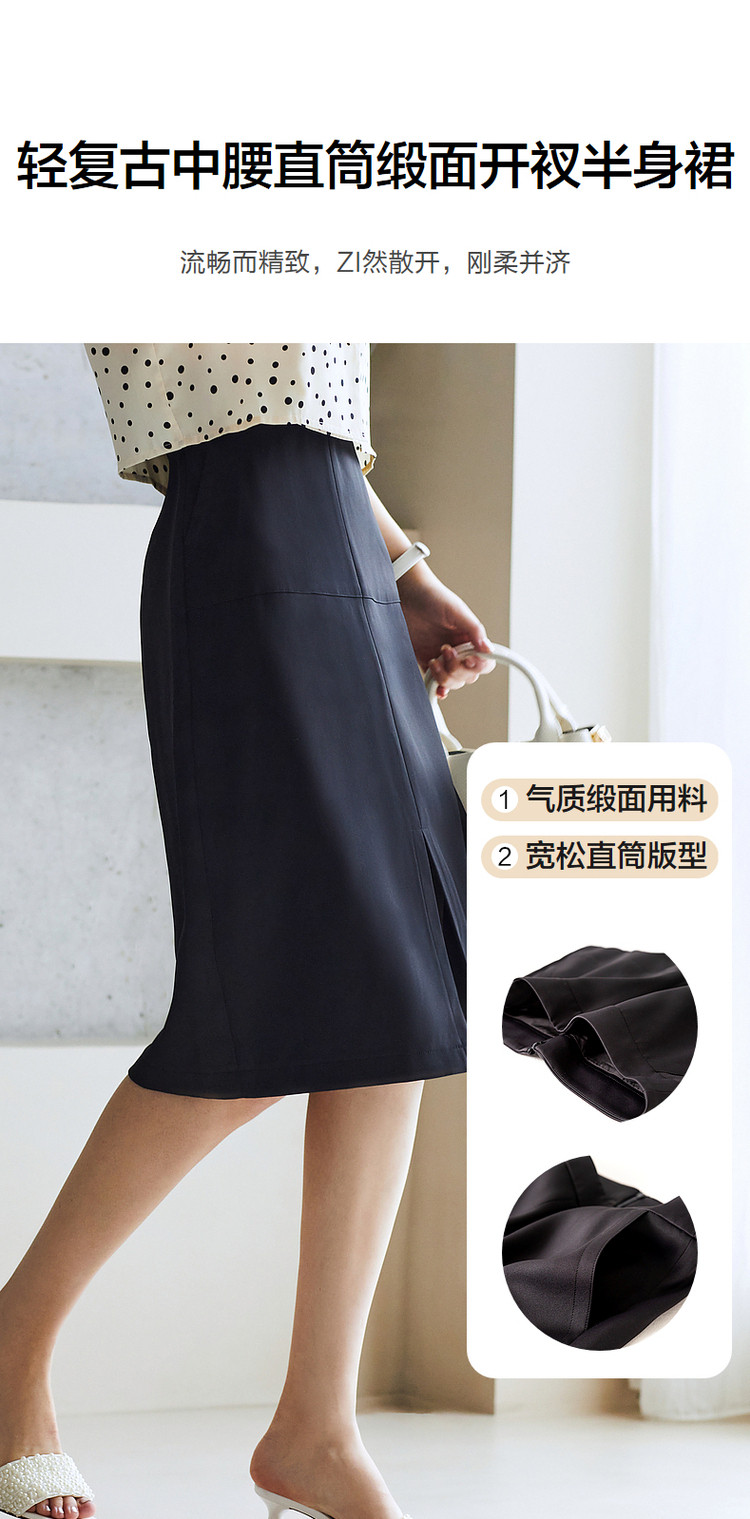 商品名称:【缎面开衩半裙】秋季中腰直筒分割半身裙女中长款 991425
