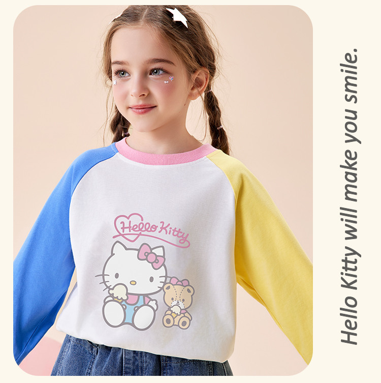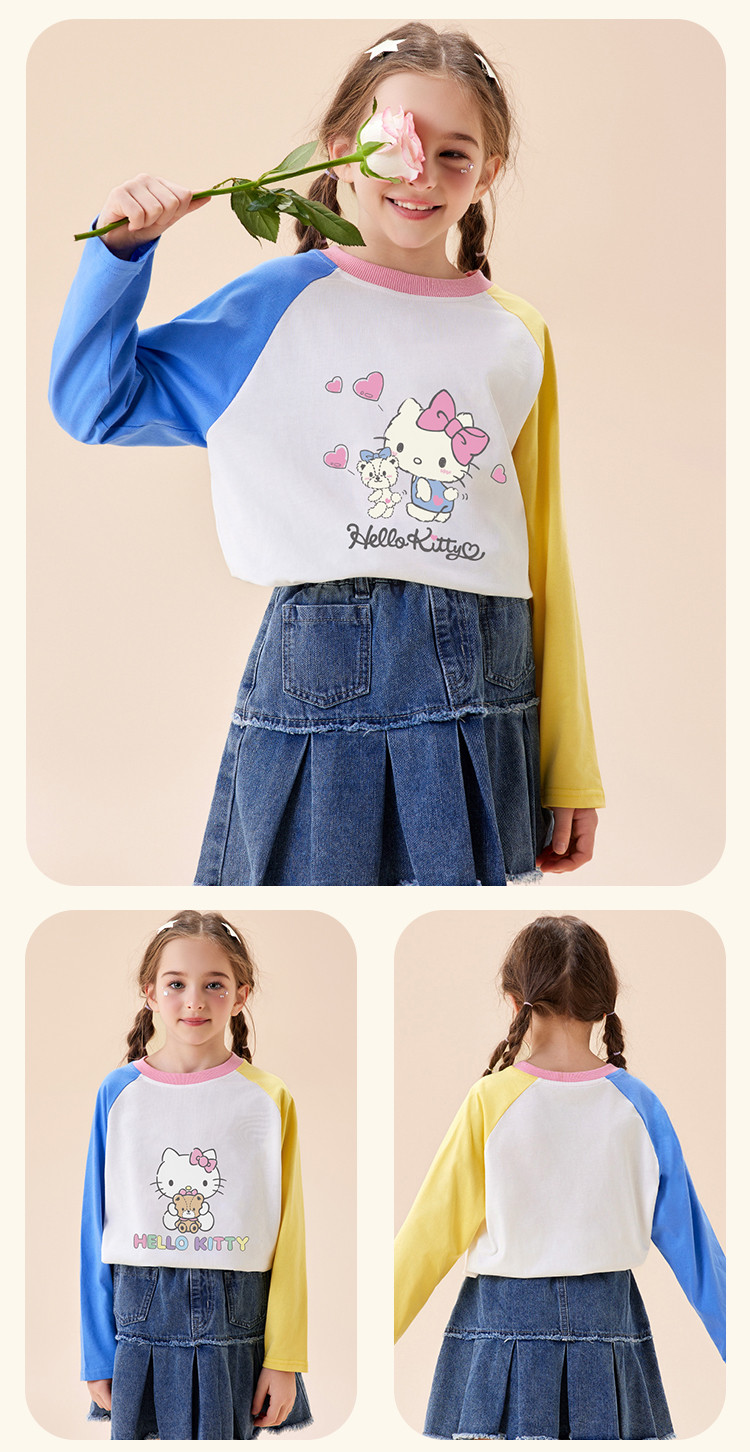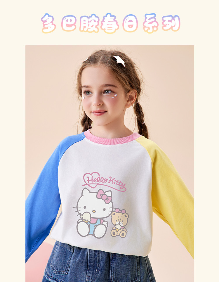 商品名称:【双色拼接撞色长袖】2025款儿童卡通印花女童春季中大童卫衣 699998