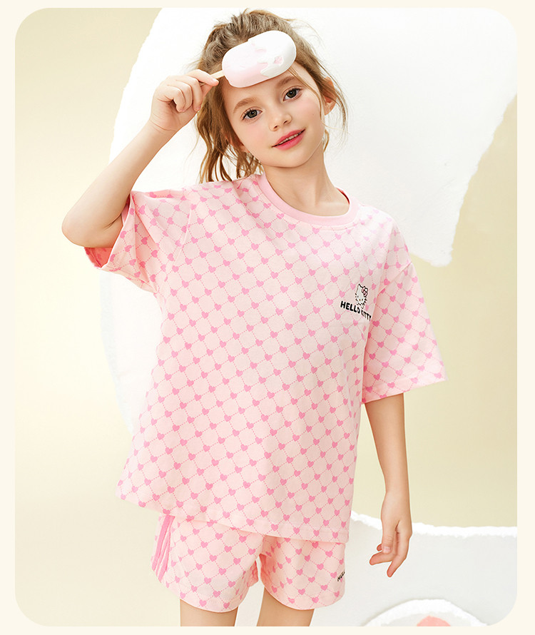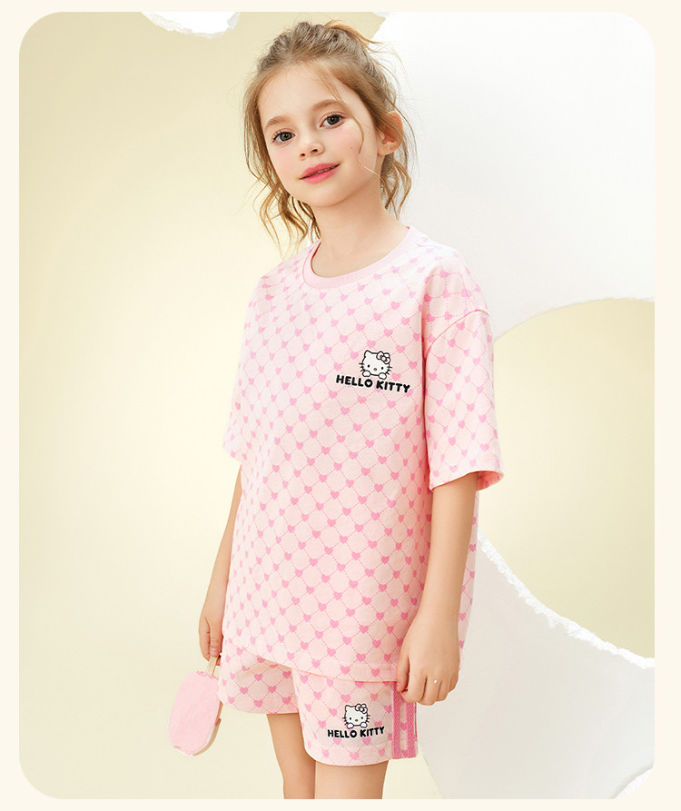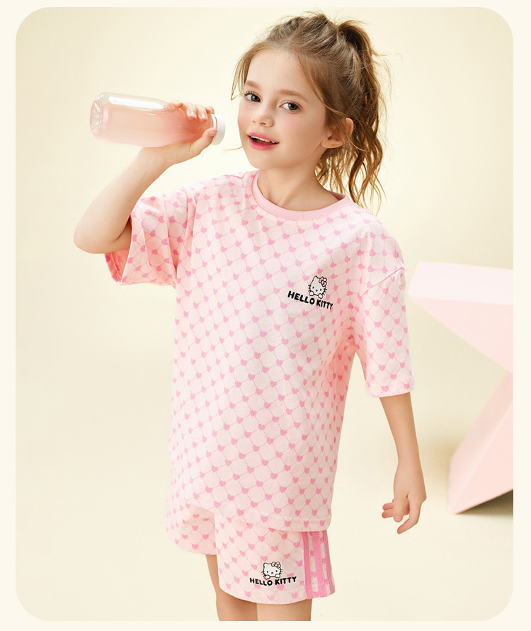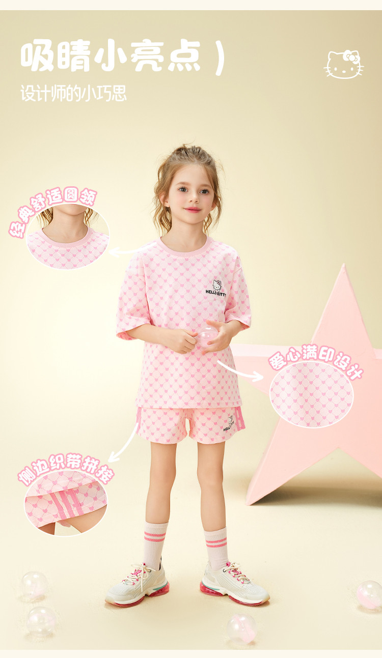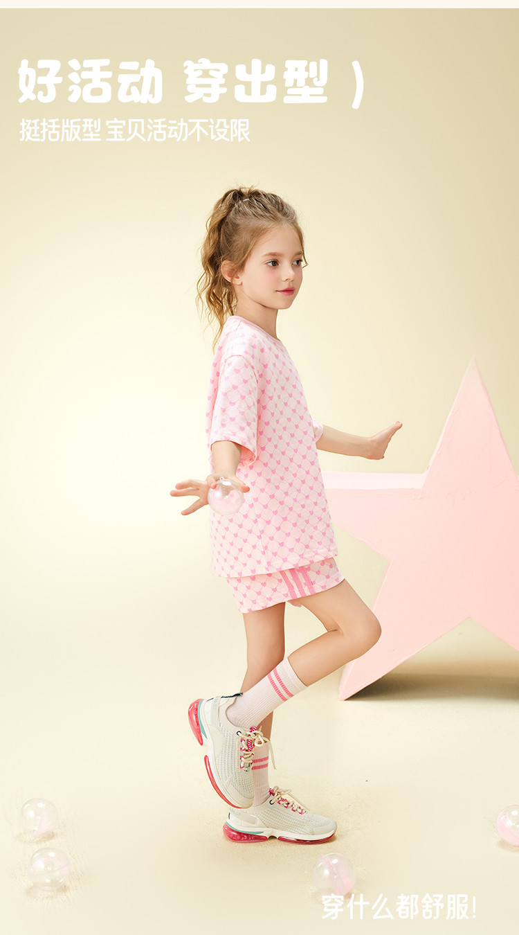 商品名称:【100%棉】2025款女童夏季套装满印中大童跑步运动两件套 242078