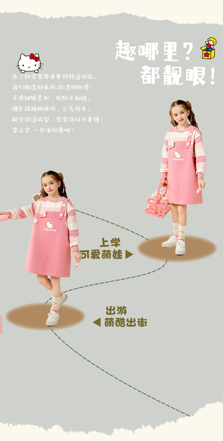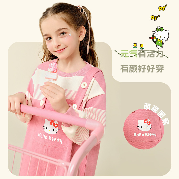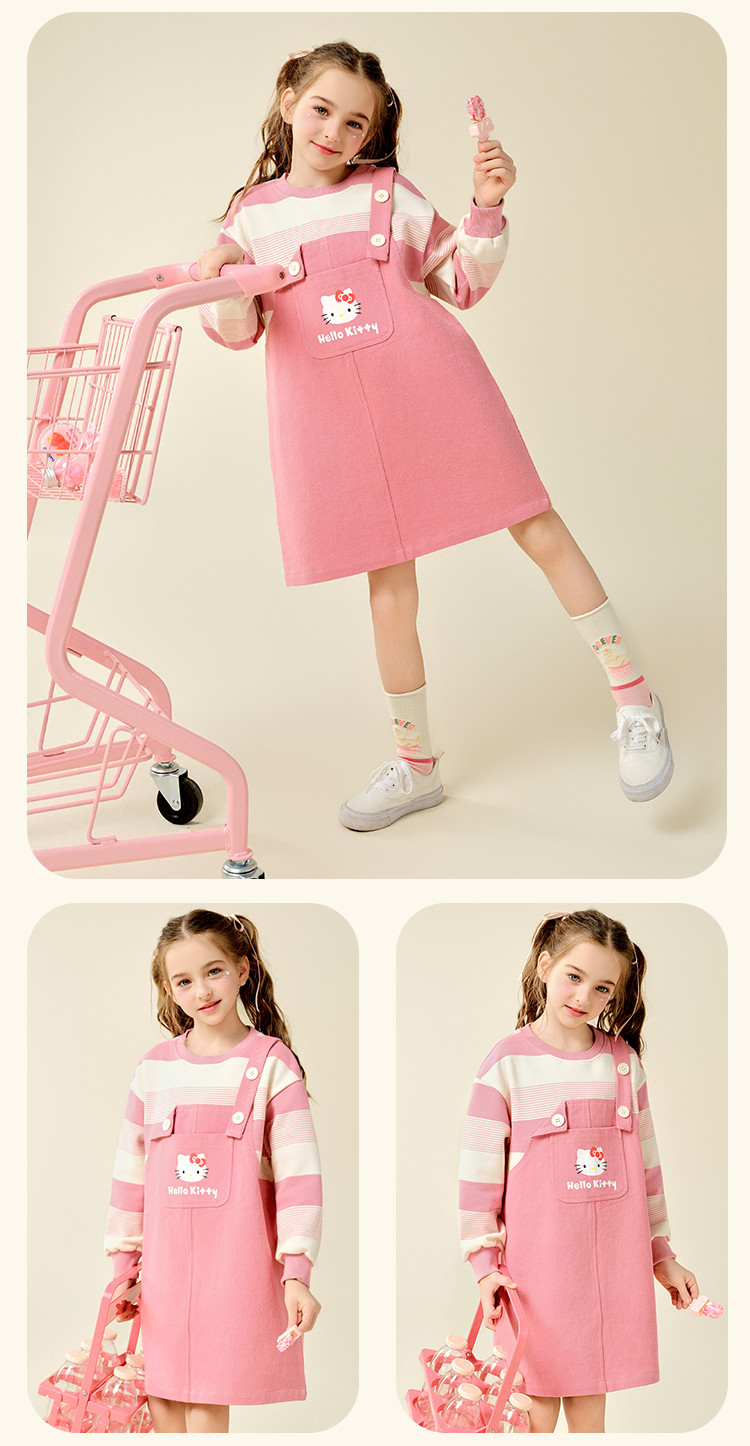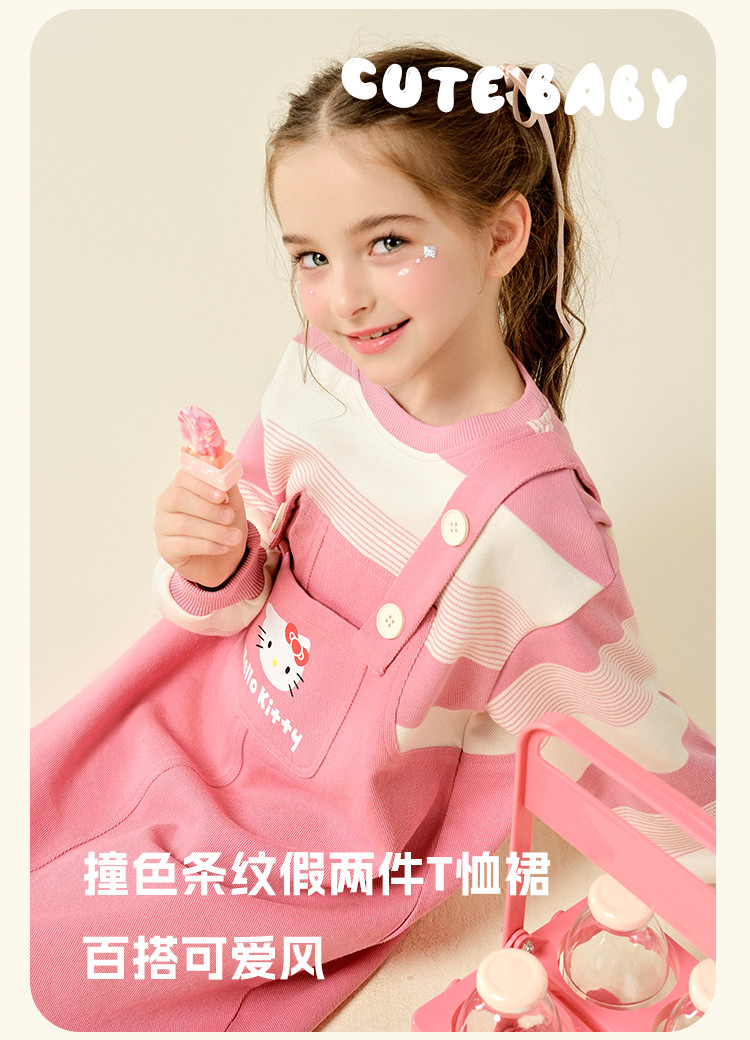 商品名称:女童春季连衣裙2025款中大童T恤儿童装卡通洋气时髦背带裙 717790