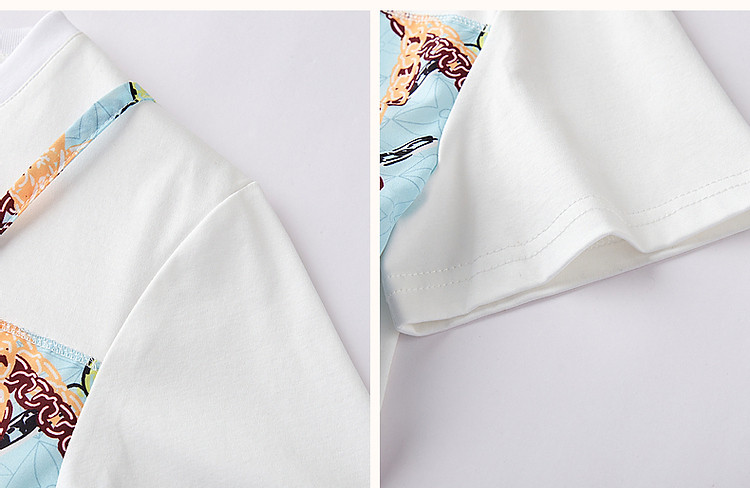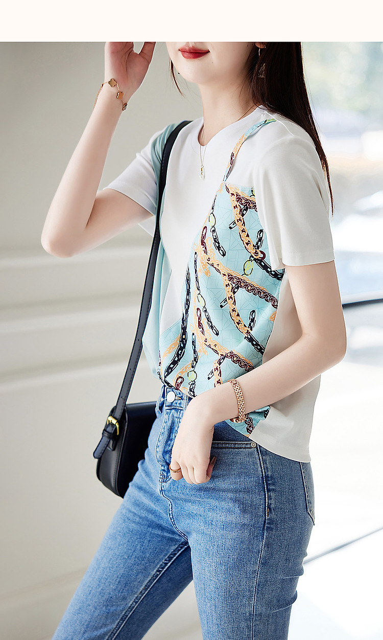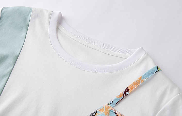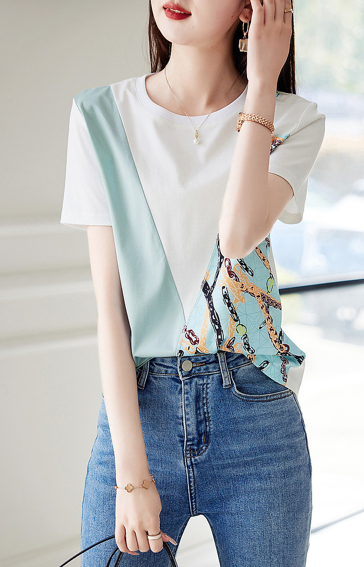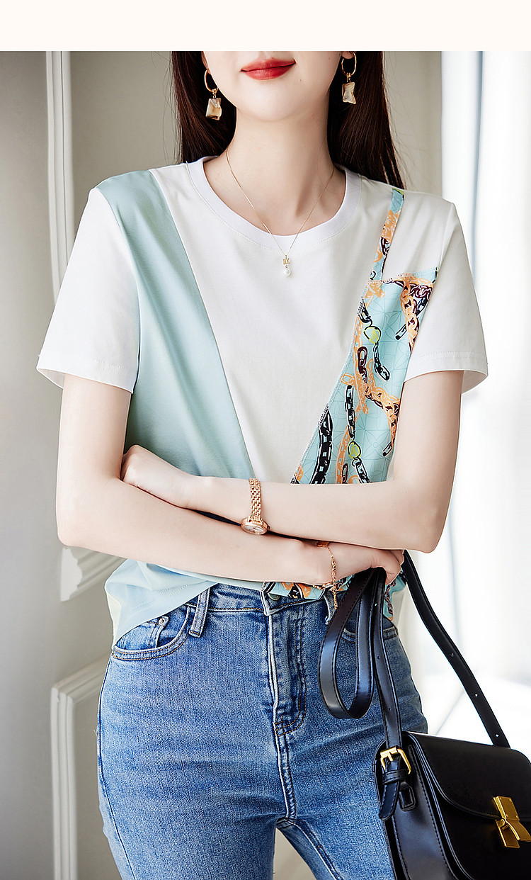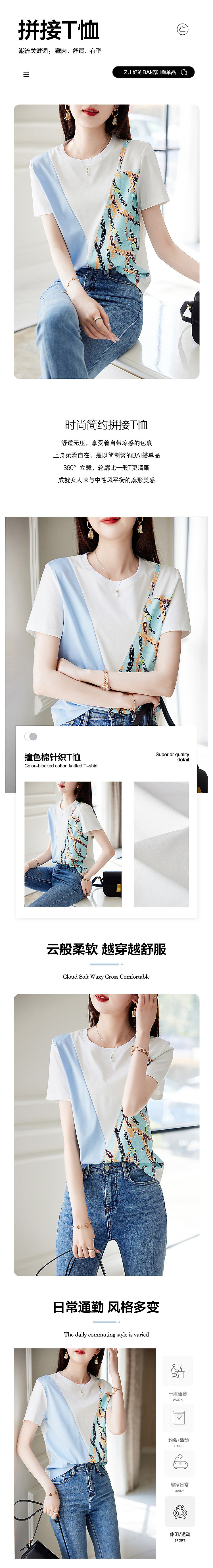 商品名称:【撞色棉氨针织女式t恤】春秋款圆领几何拼色短袖t恤女 788225