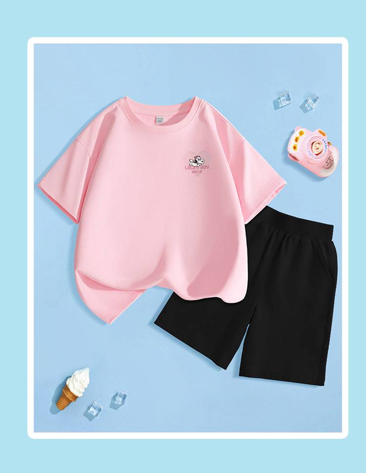 商品名称:女童套装夏款25年夏季短袖t恤中大童休闲裤子儿童纯棉两件套薄 330463