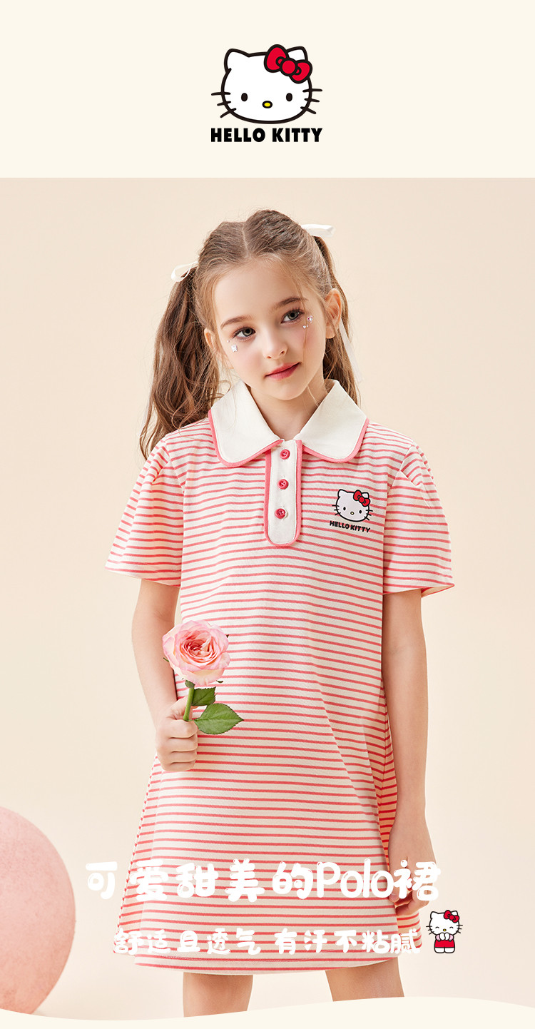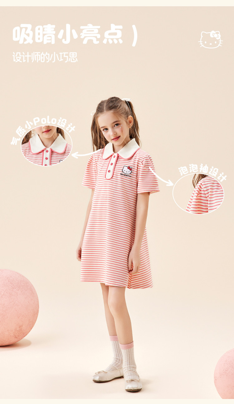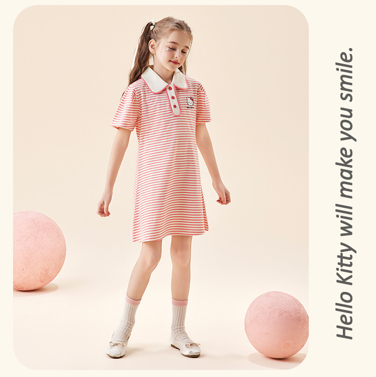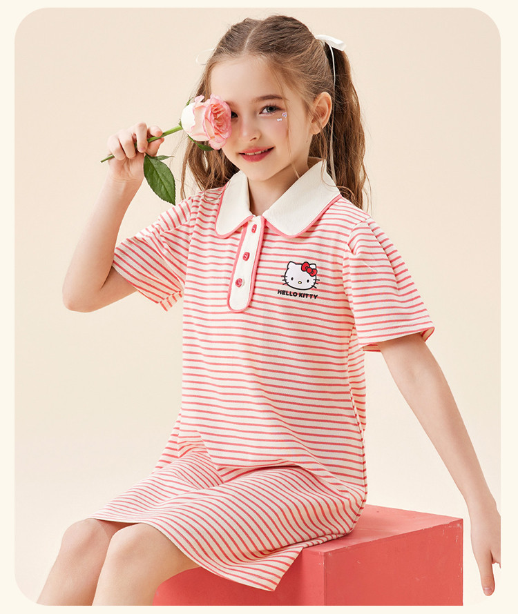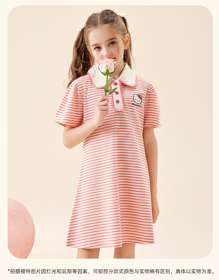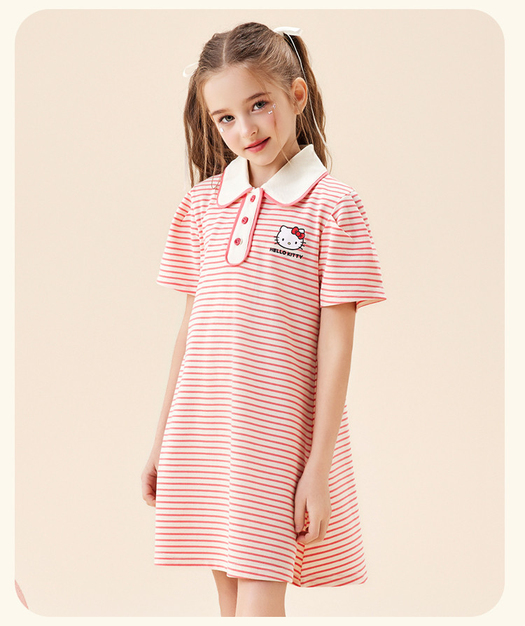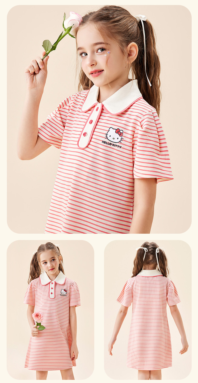 商品名称:女童夏季连衣裙2025款翻领条纹卡通3-12岁中大童短袖裙子 950942