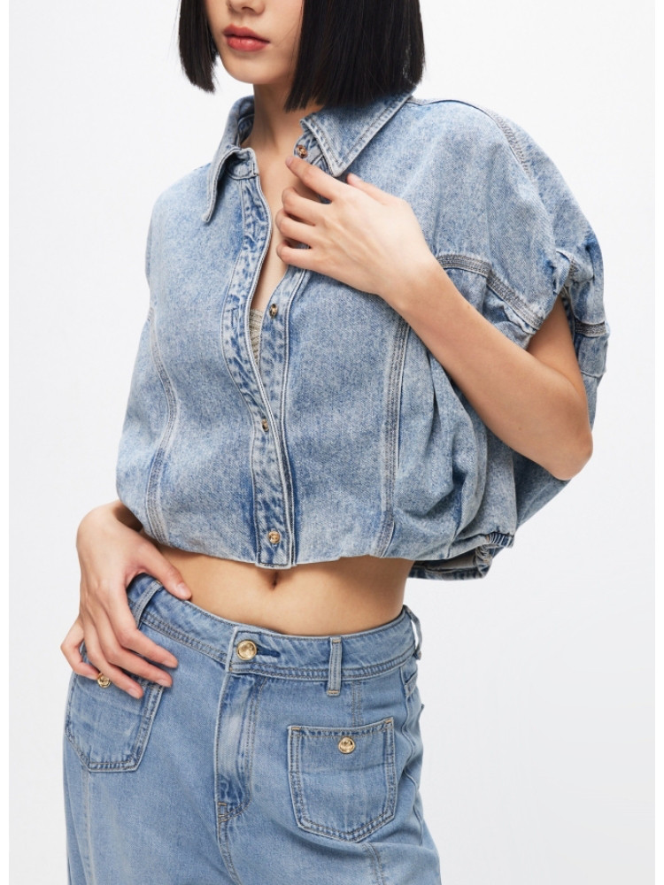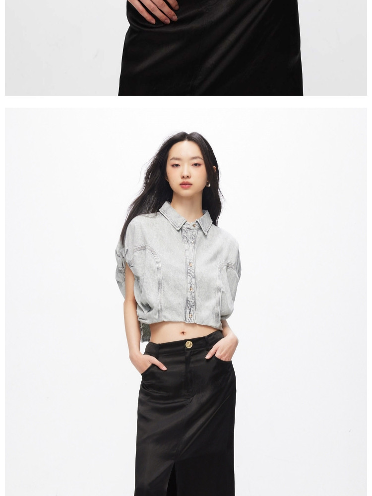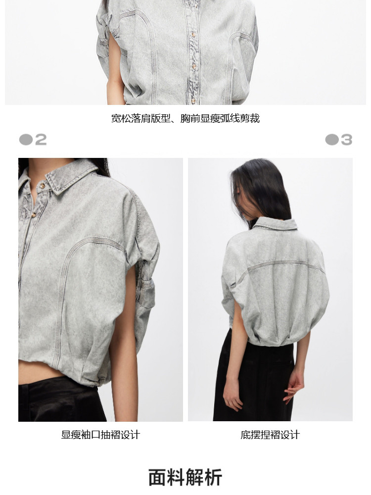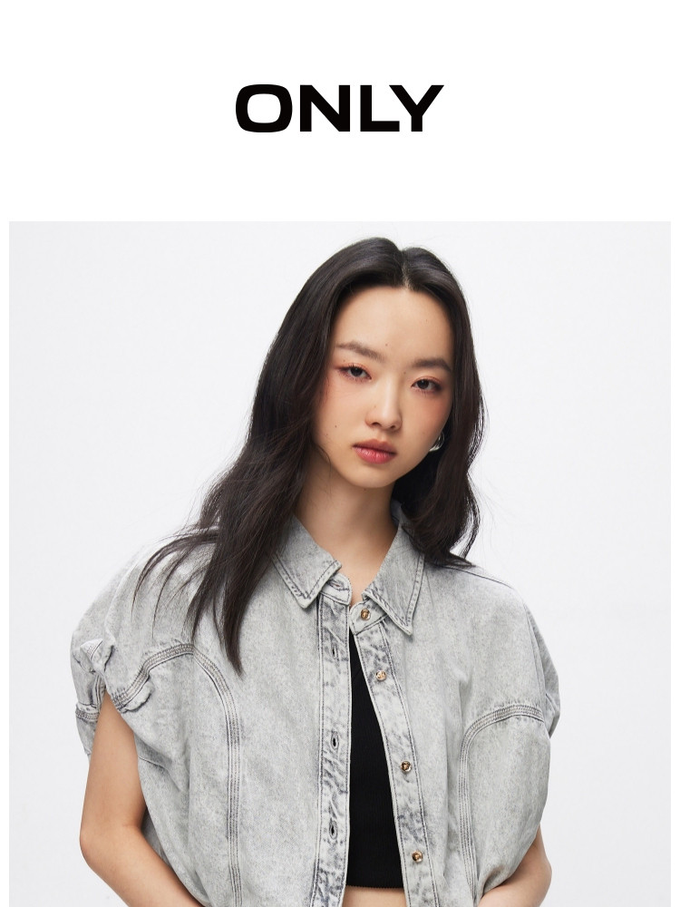 【百搭休闲】夏季含莱赛尔天丝宽松落肩翻领短袖牛仔衬衫女 898202