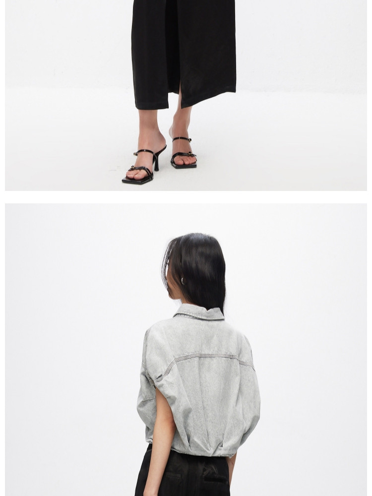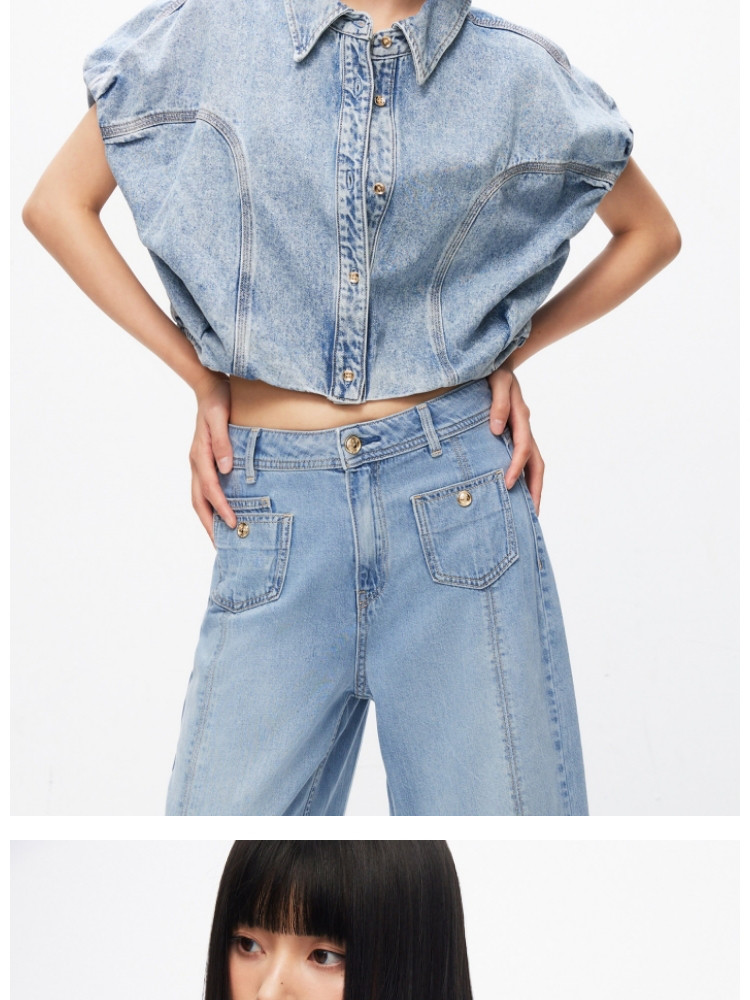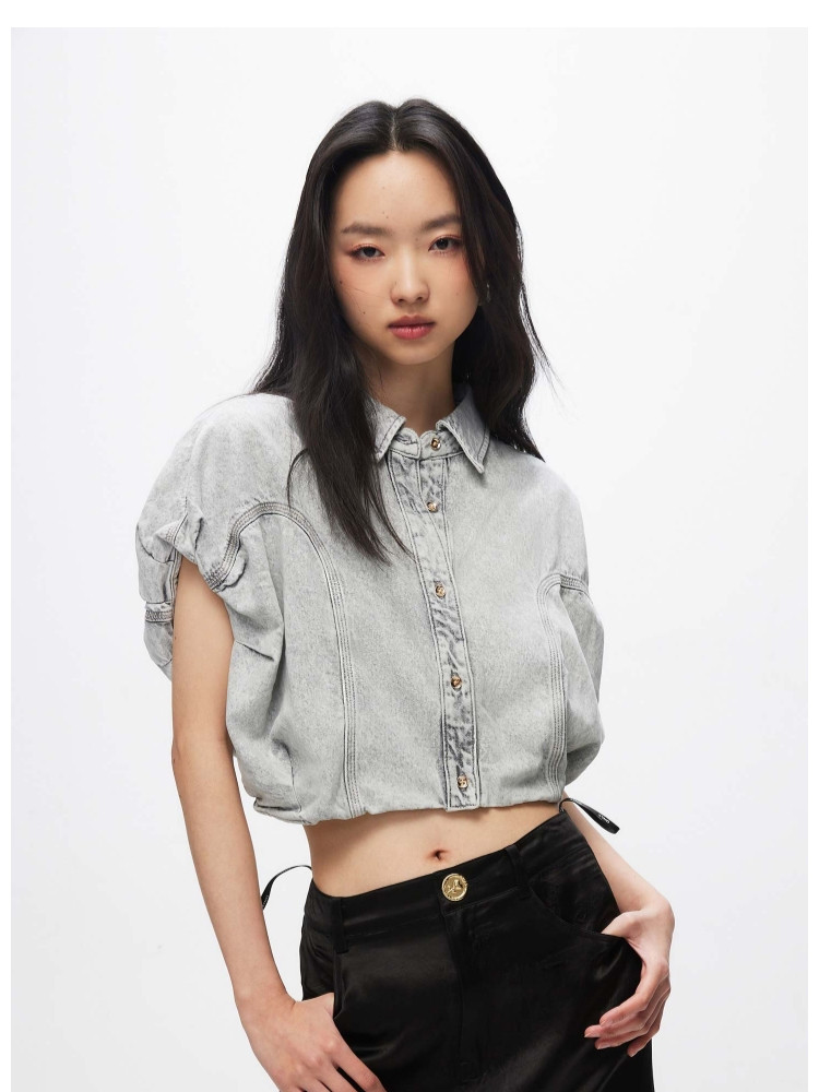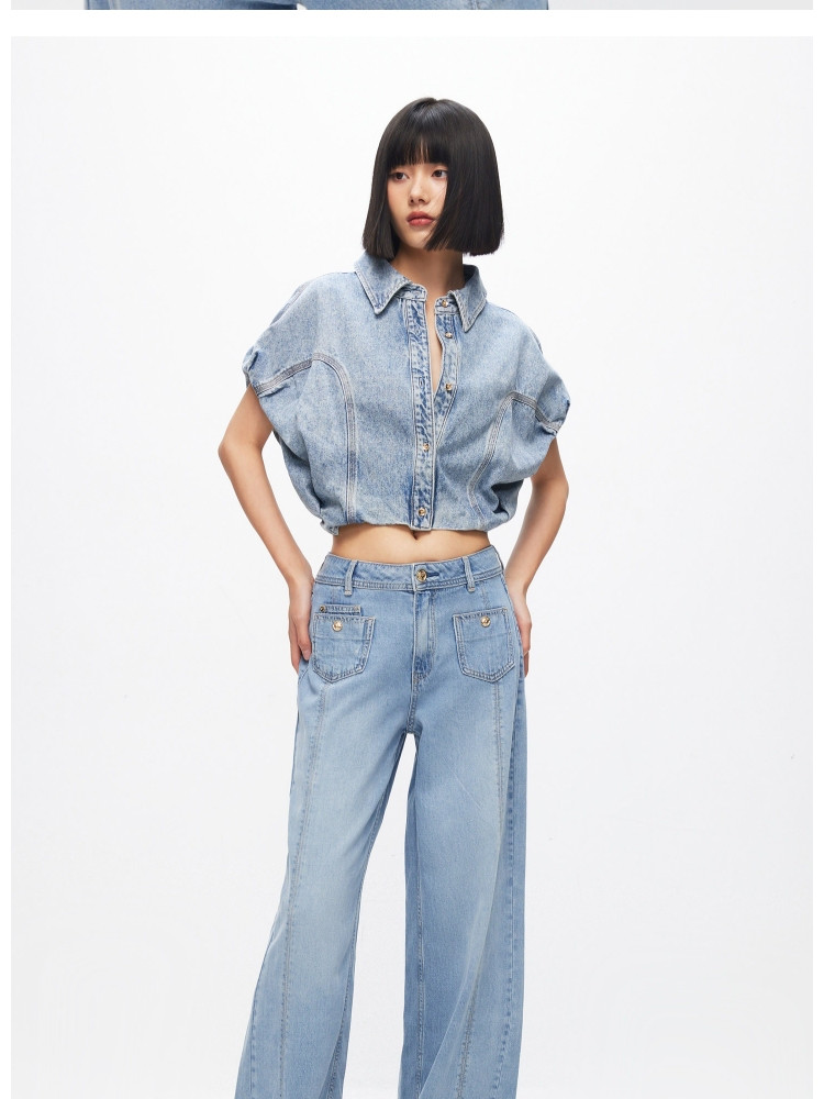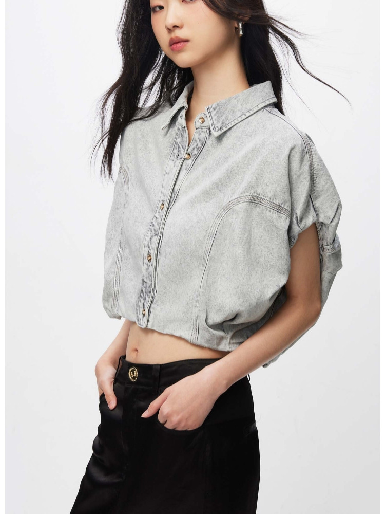【百搭休闲】夏季含莱赛尔天丝宽松落肩翻领短袖牛仔衬衫女 898202