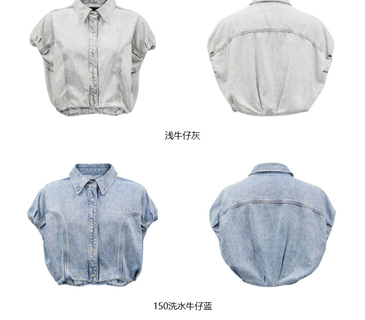 商品名称:【百搭休闲】夏季含莱赛尔天丝宽松落肩翻领短袖牛仔衬衫女 898202