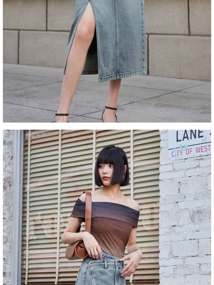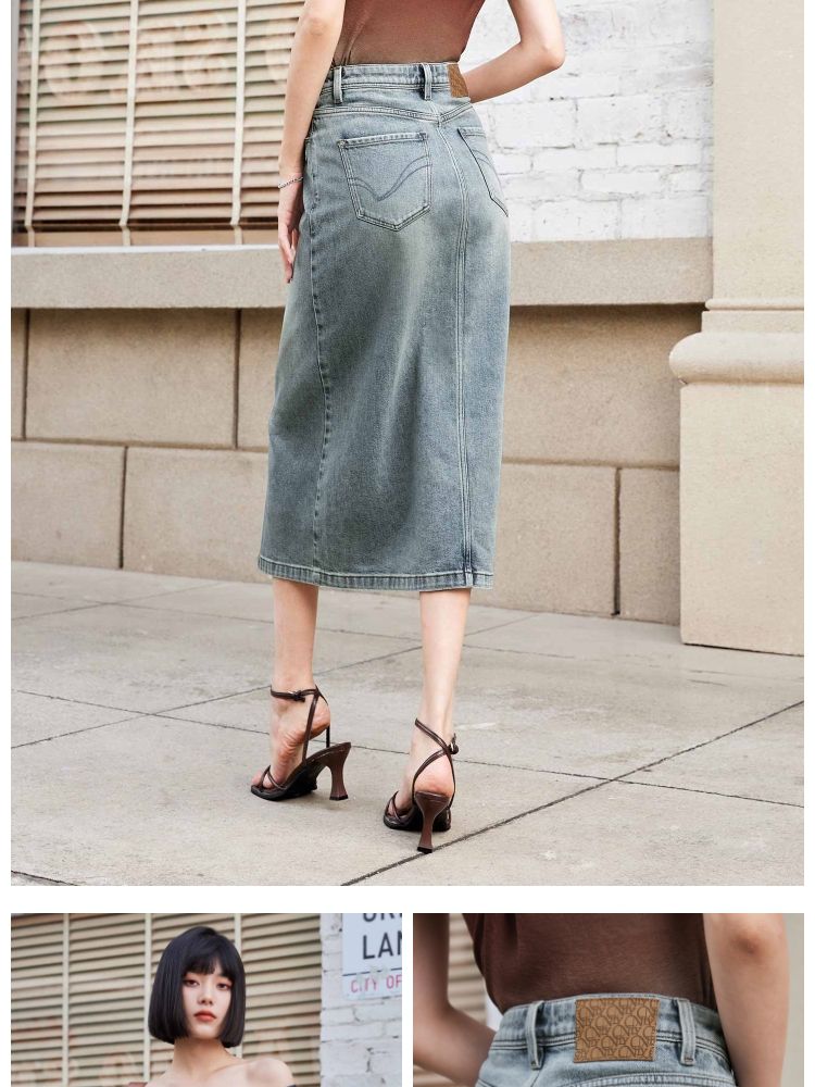 商品名称:【斜腰头侧开衩】夏季时尚个性中长款牛仔半身裙女 576090