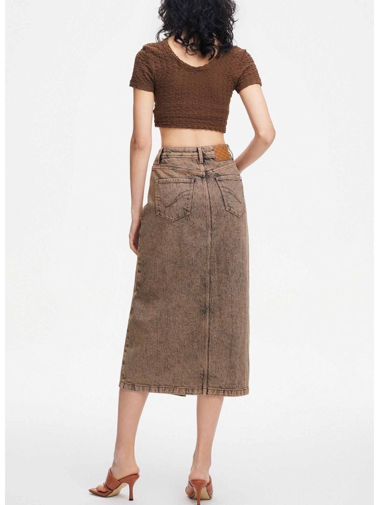 【斜腰头侧开衩】夏季时尚个性中长款牛仔半身裙女 576090