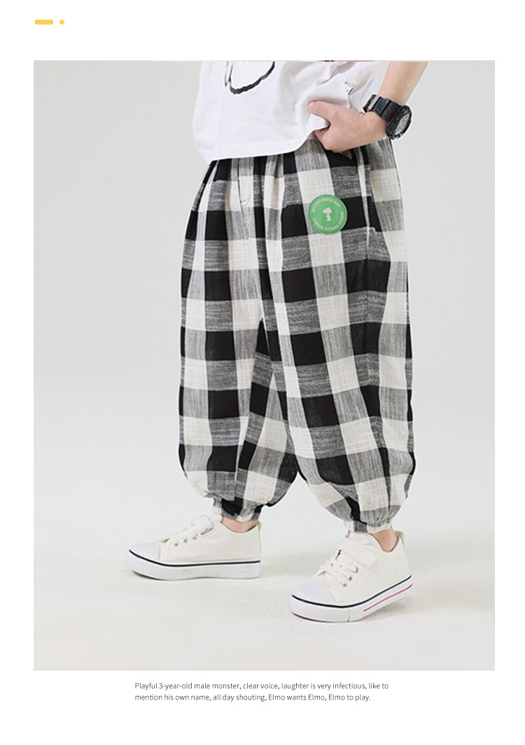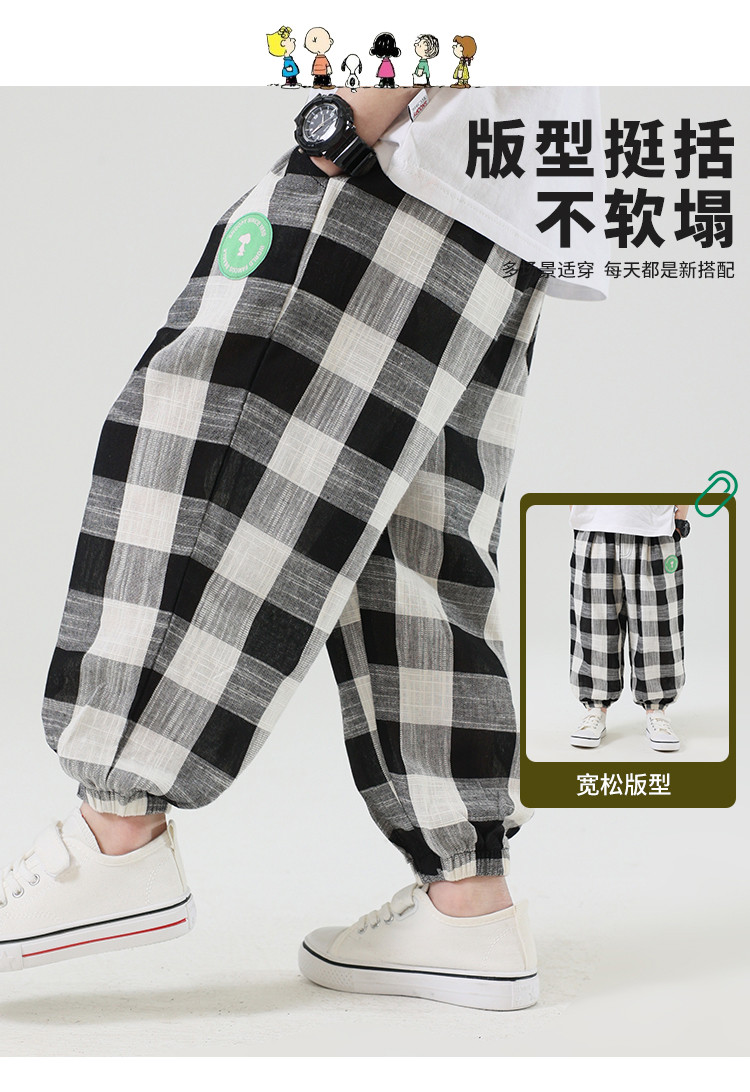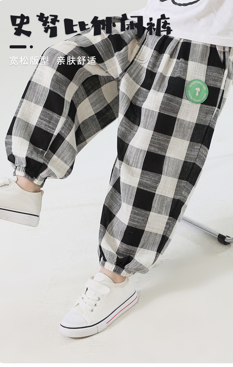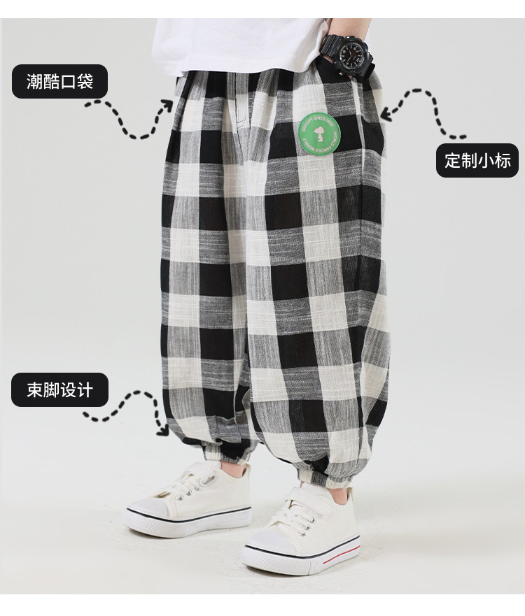 商品名称:【儿童裤子】25年夏季小中大童宽松透气裤子男女宝格子休闲长裤 622559