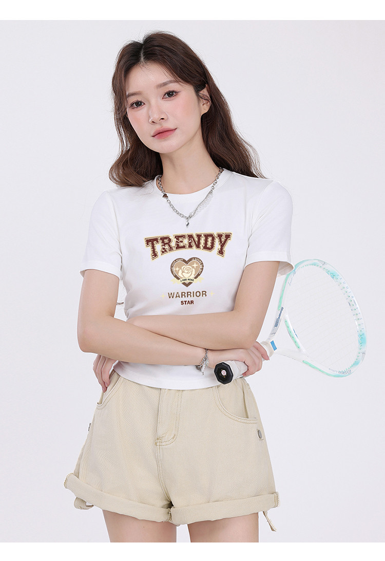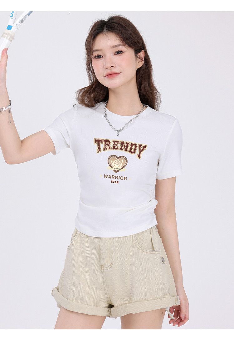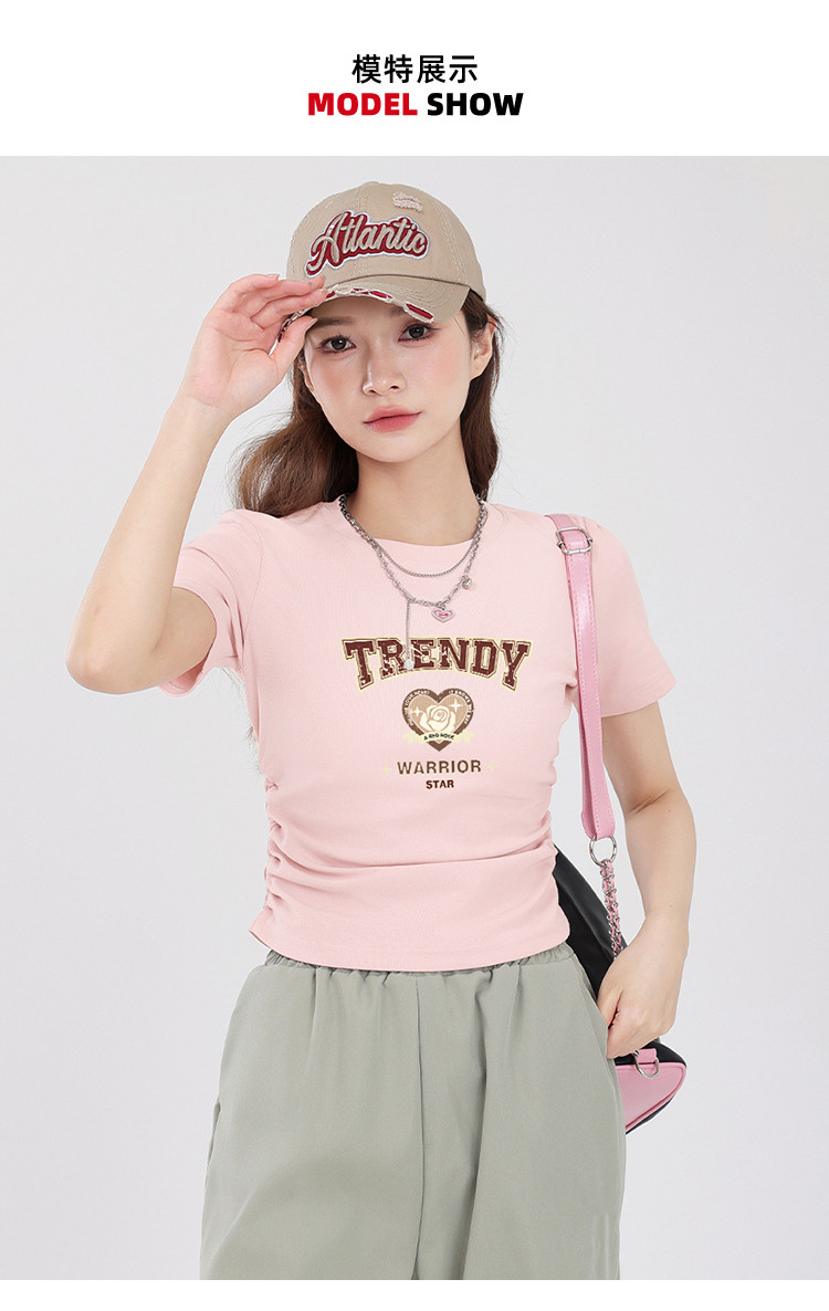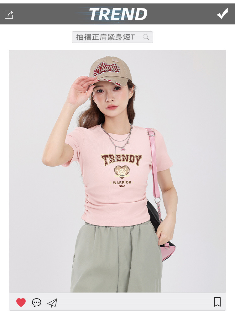 商品名称:【女装正肩】女式短款小个子T恤紧身显瘦夏季小众抽褶设计感短袖 555283