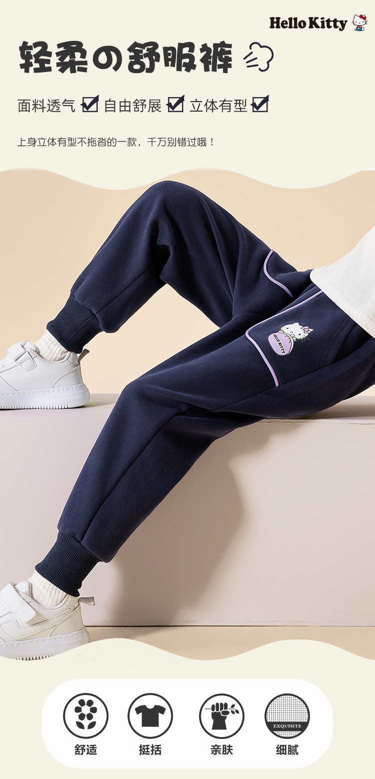 商品名称:女童秋冬季加绒可选裤子2025款中大童装女孩跑步运动简约卫裤 455262