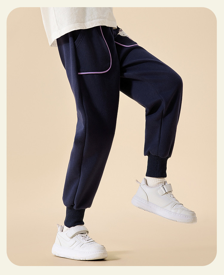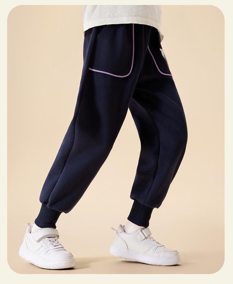 女童秋冬季加绒可选裤子2025款中大童装女孩跑步运动简约卫裤 455262
