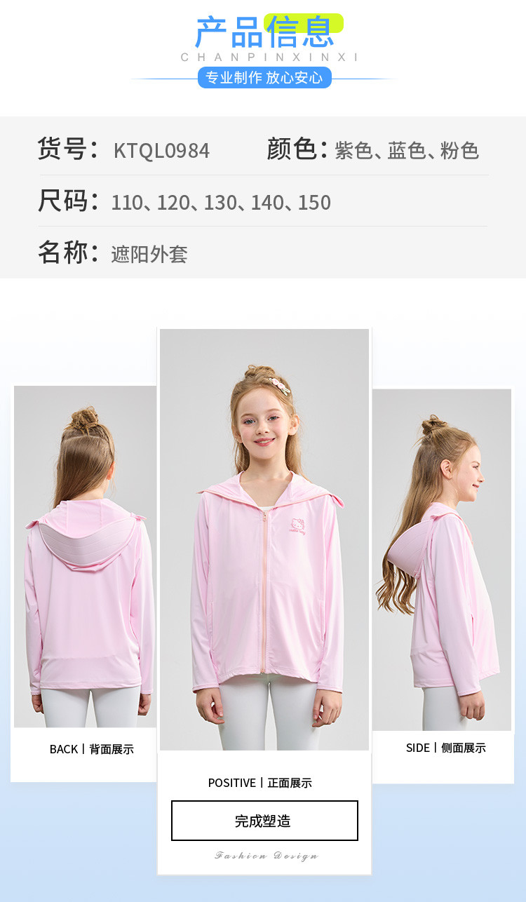 商品名称:夏季儿童亲肤透气百搭女童遮阳外套轻薄防晒衣遮热防紫外线外套 478081
