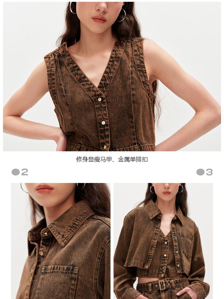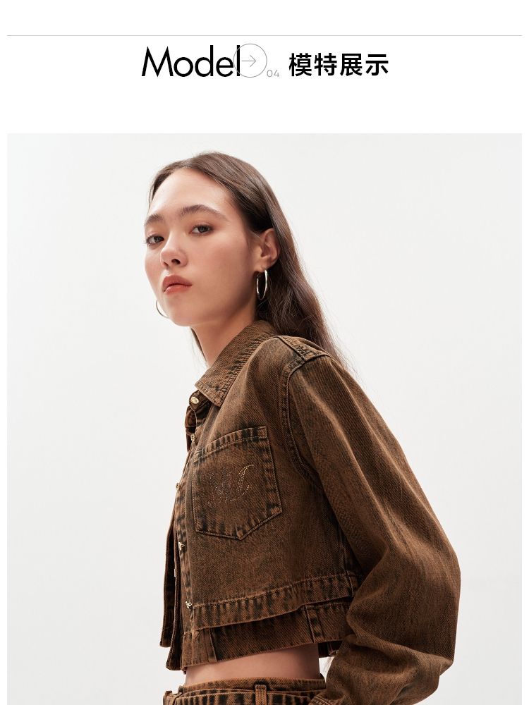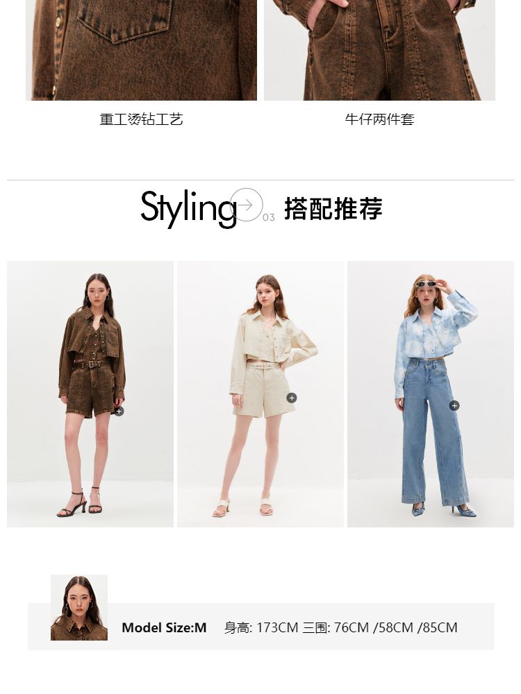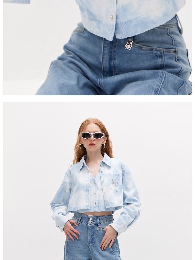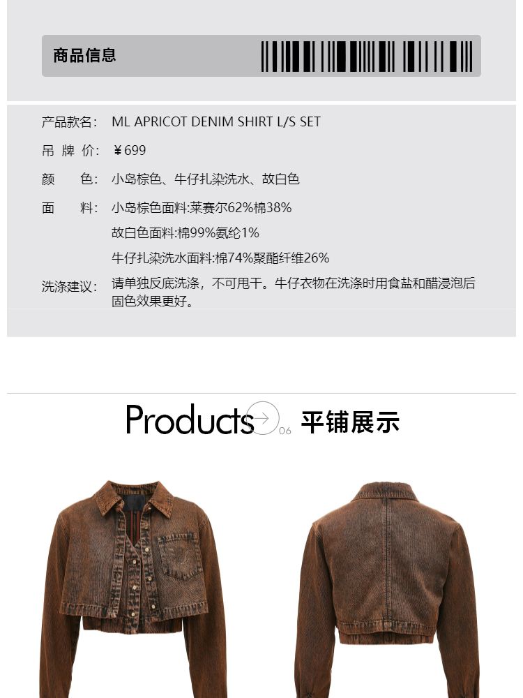 商品名称:【设计感】夏季含莱赛尔套装翻领牛仔短款长袖衬衫女 902042