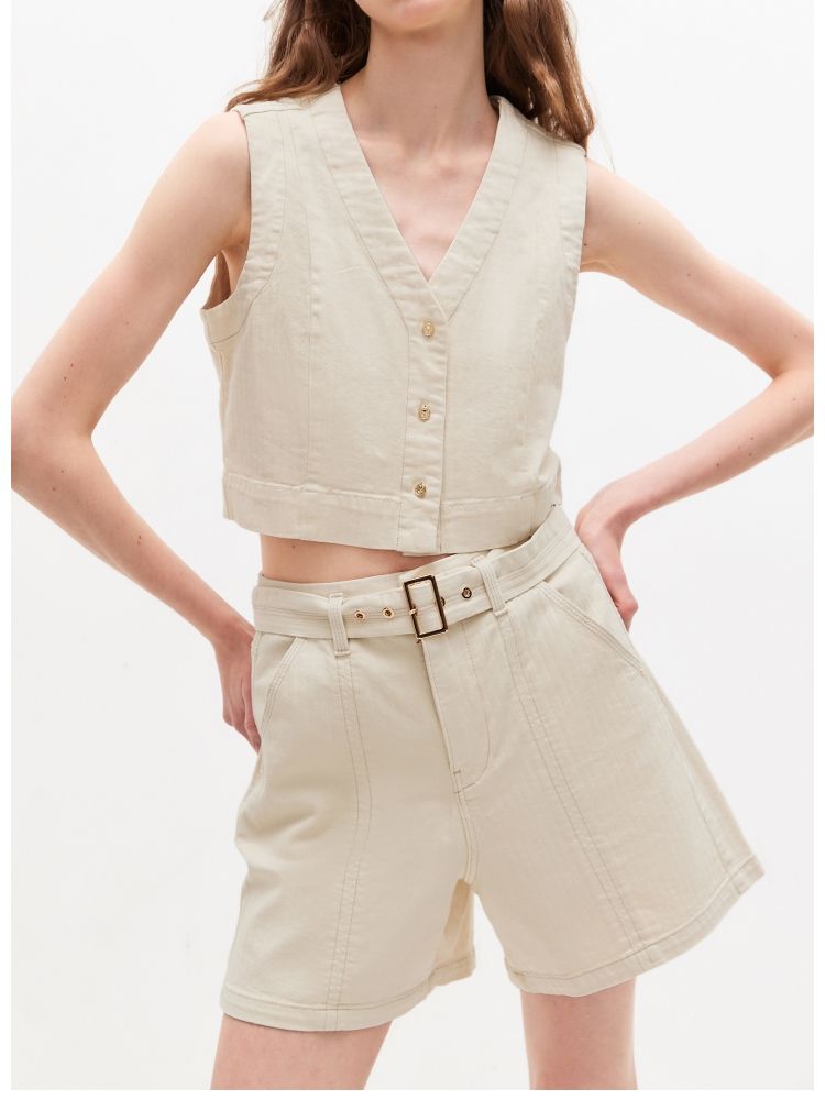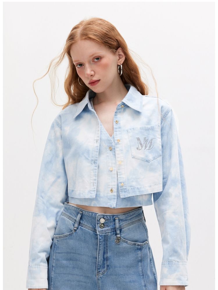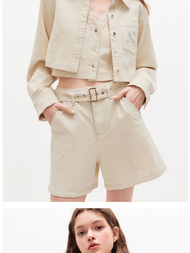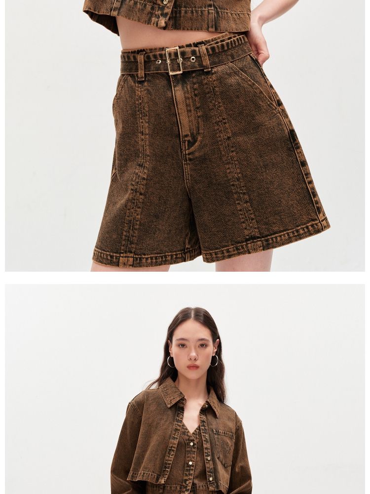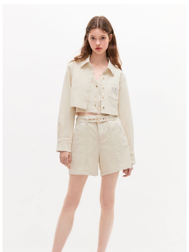 【设计感】夏季含莱赛尔套装翻领牛仔短款长袖衬衫女 902042