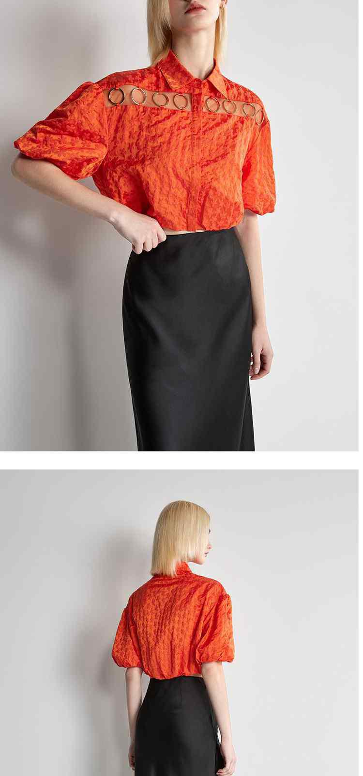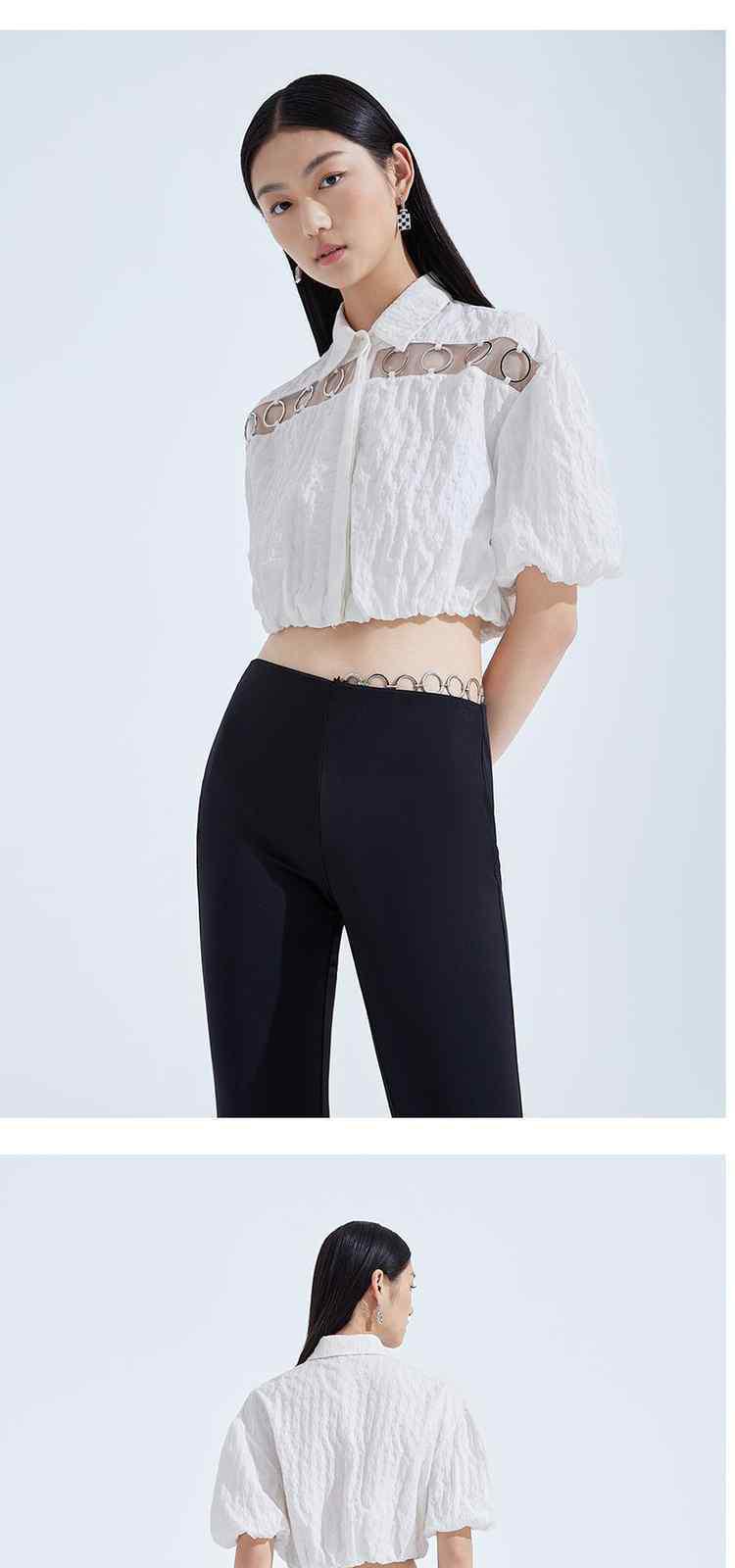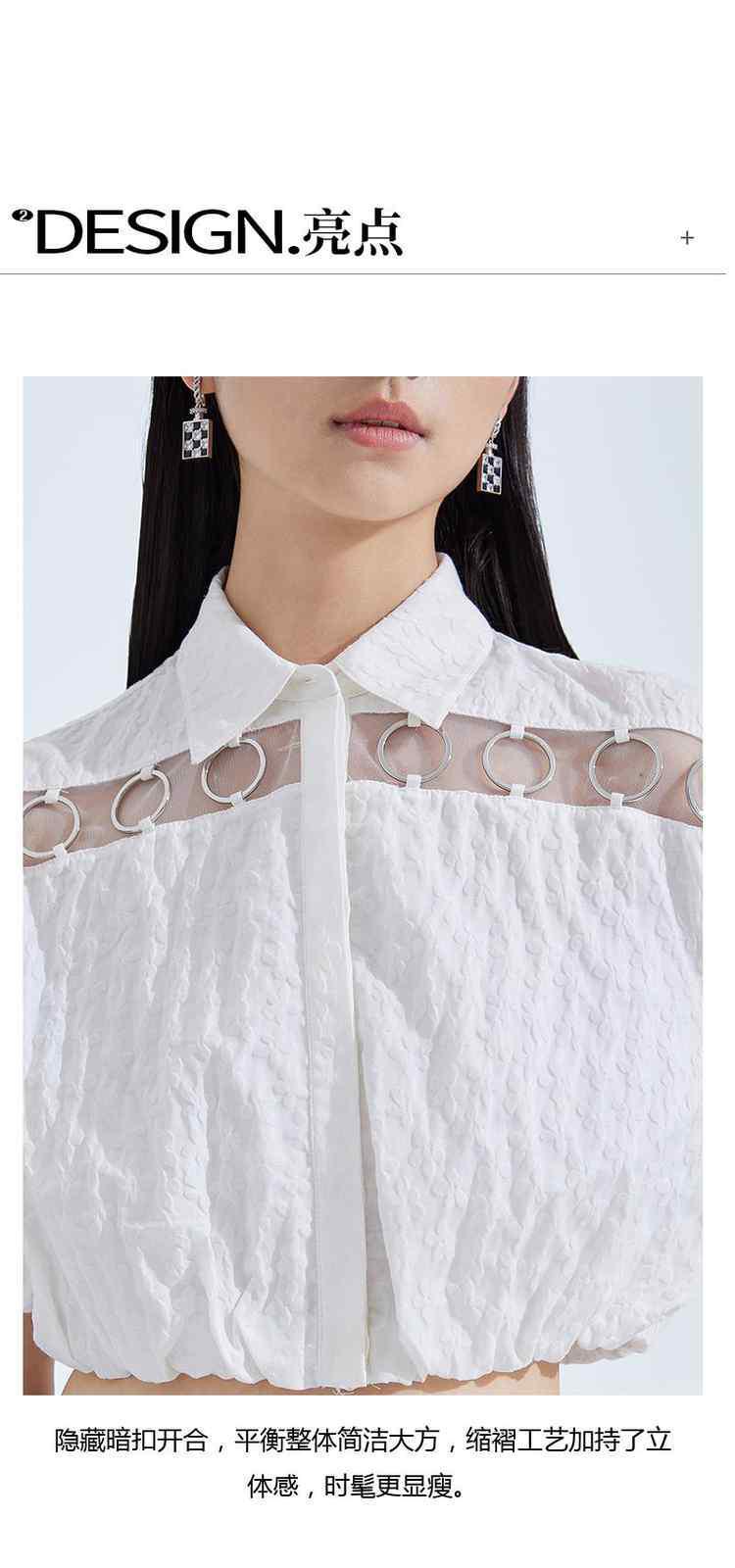 夏装 镂空金属设计感小众提花泡泡袖短衬衫 844687