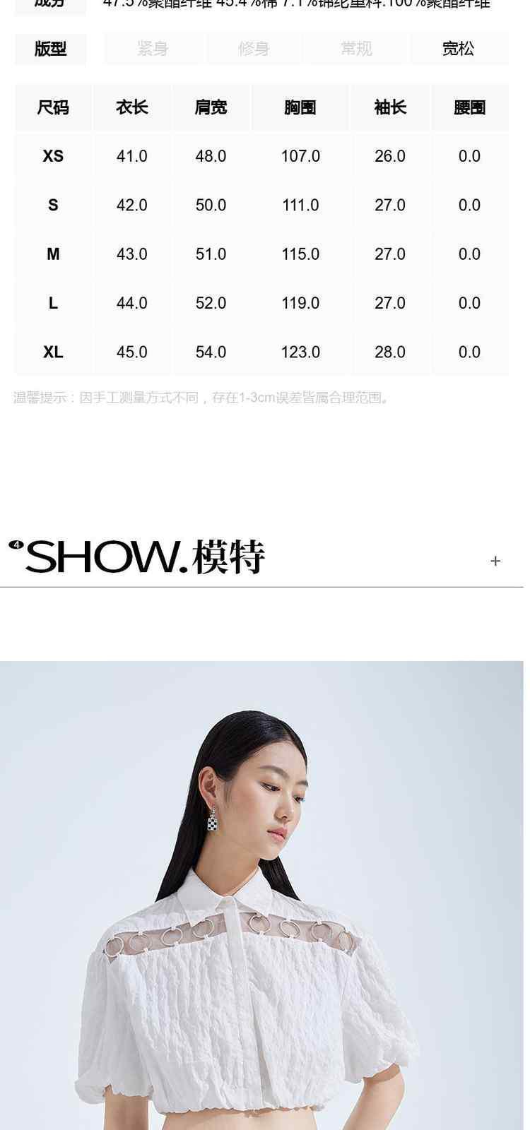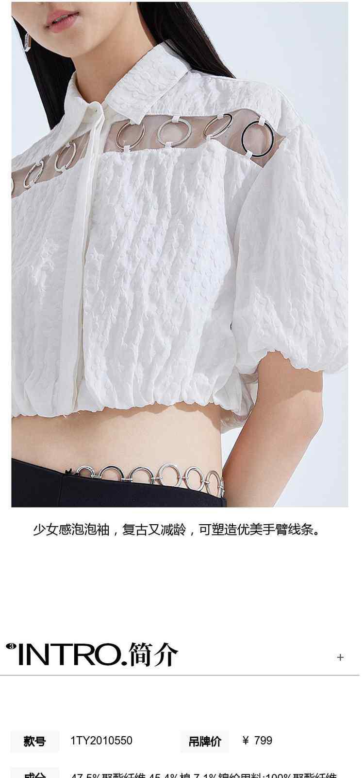 商品名称:夏装 镂空金属设计感小众提花泡泡袖短衬衫 844687