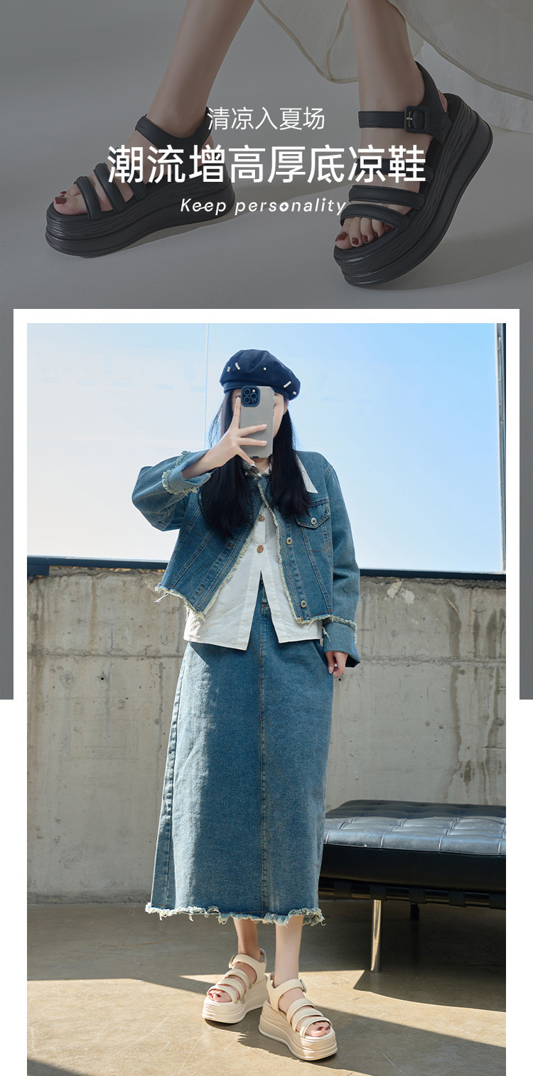 凉鞋夏女罗马凉鞋女厚底鞋女增高凉鞋百搭小个子夏季凉鞋 414671