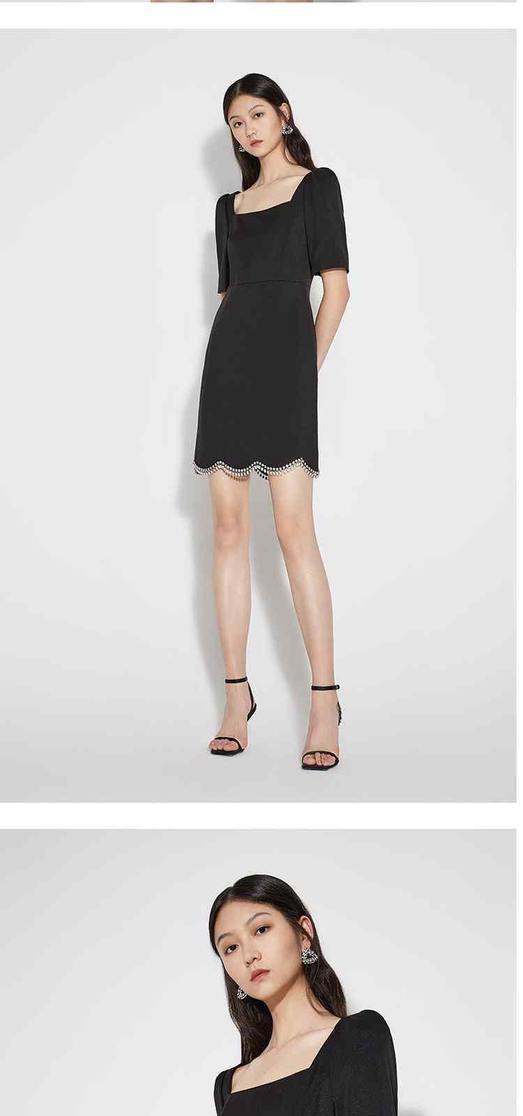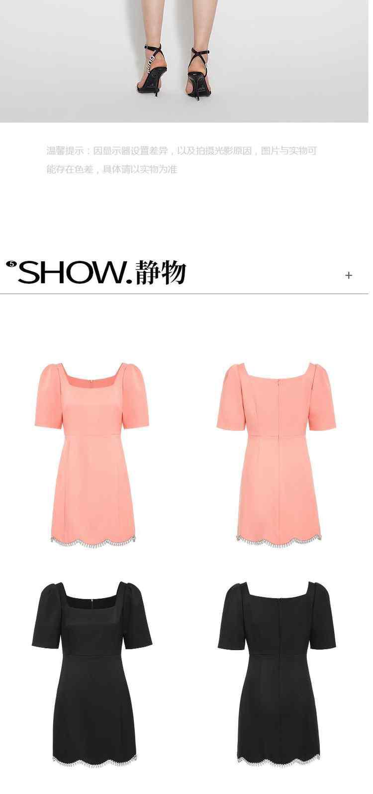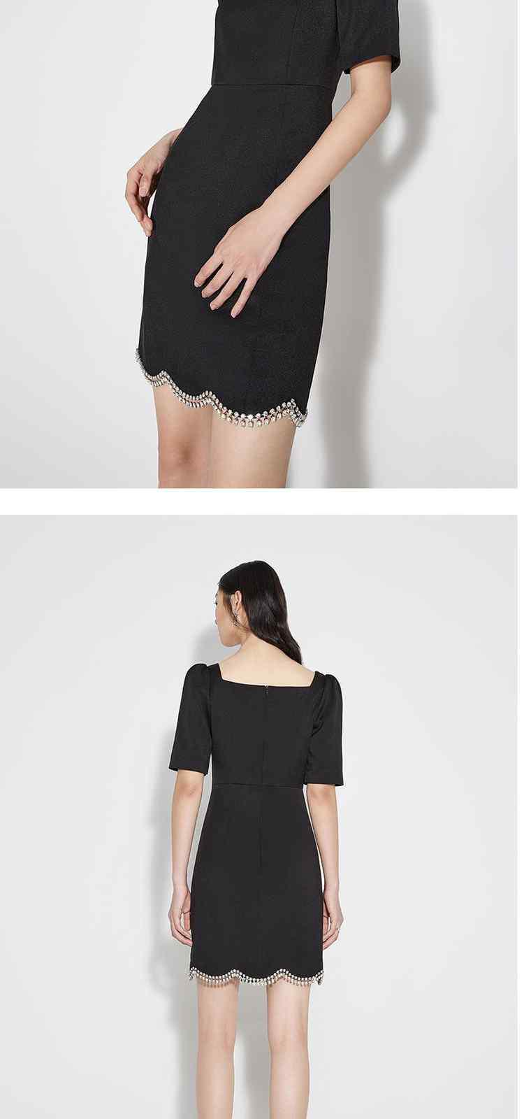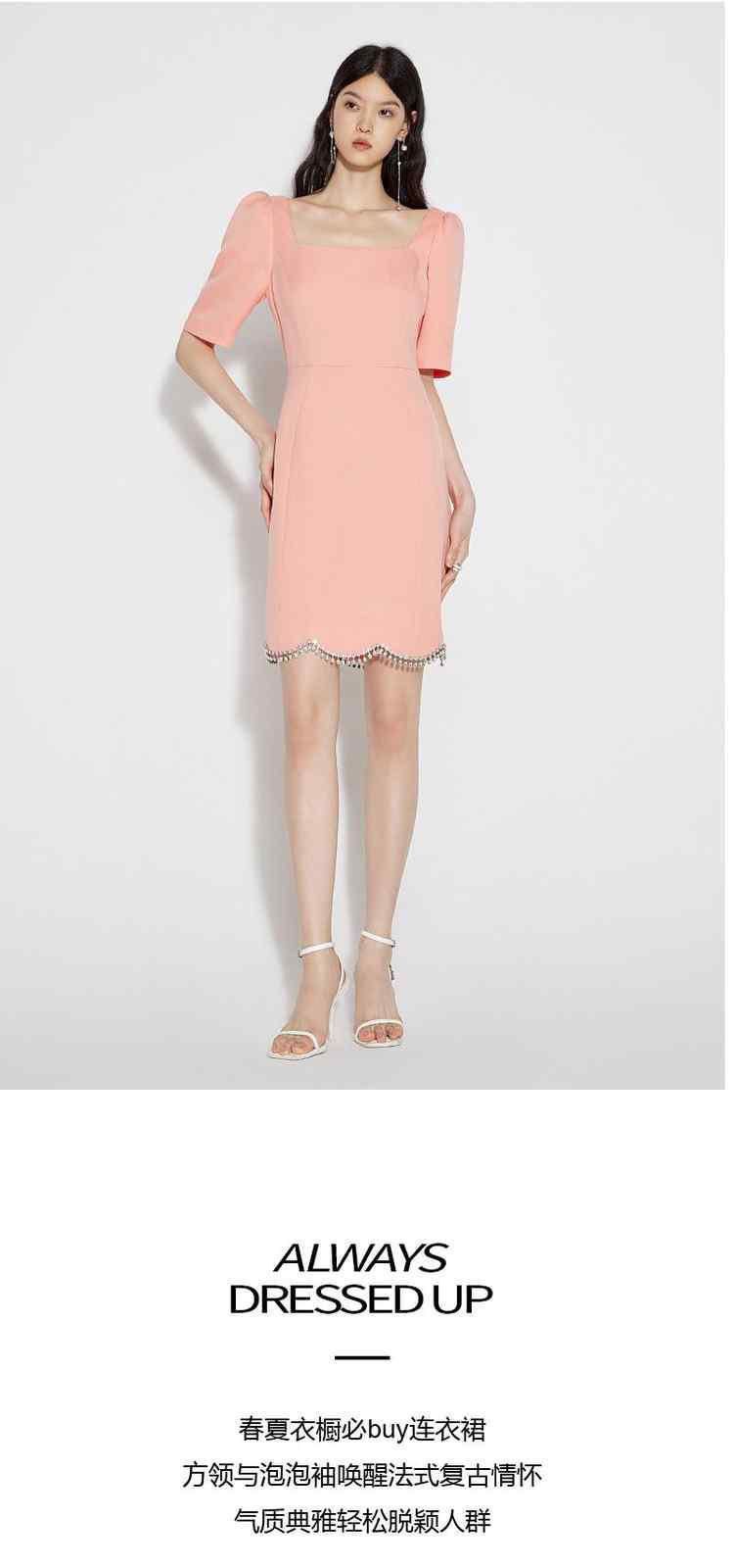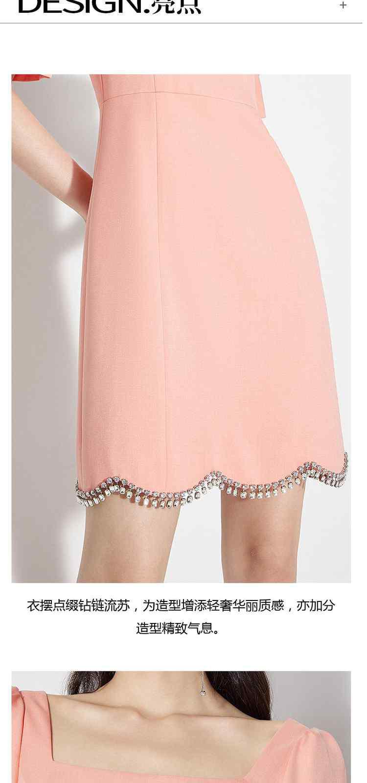 商品名称:夏装 镶钻泡泡袖方领法式短袖连衣裙 087951