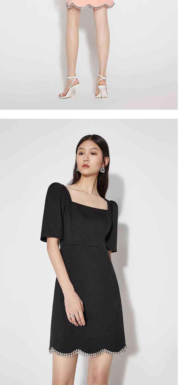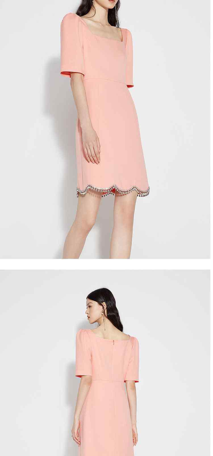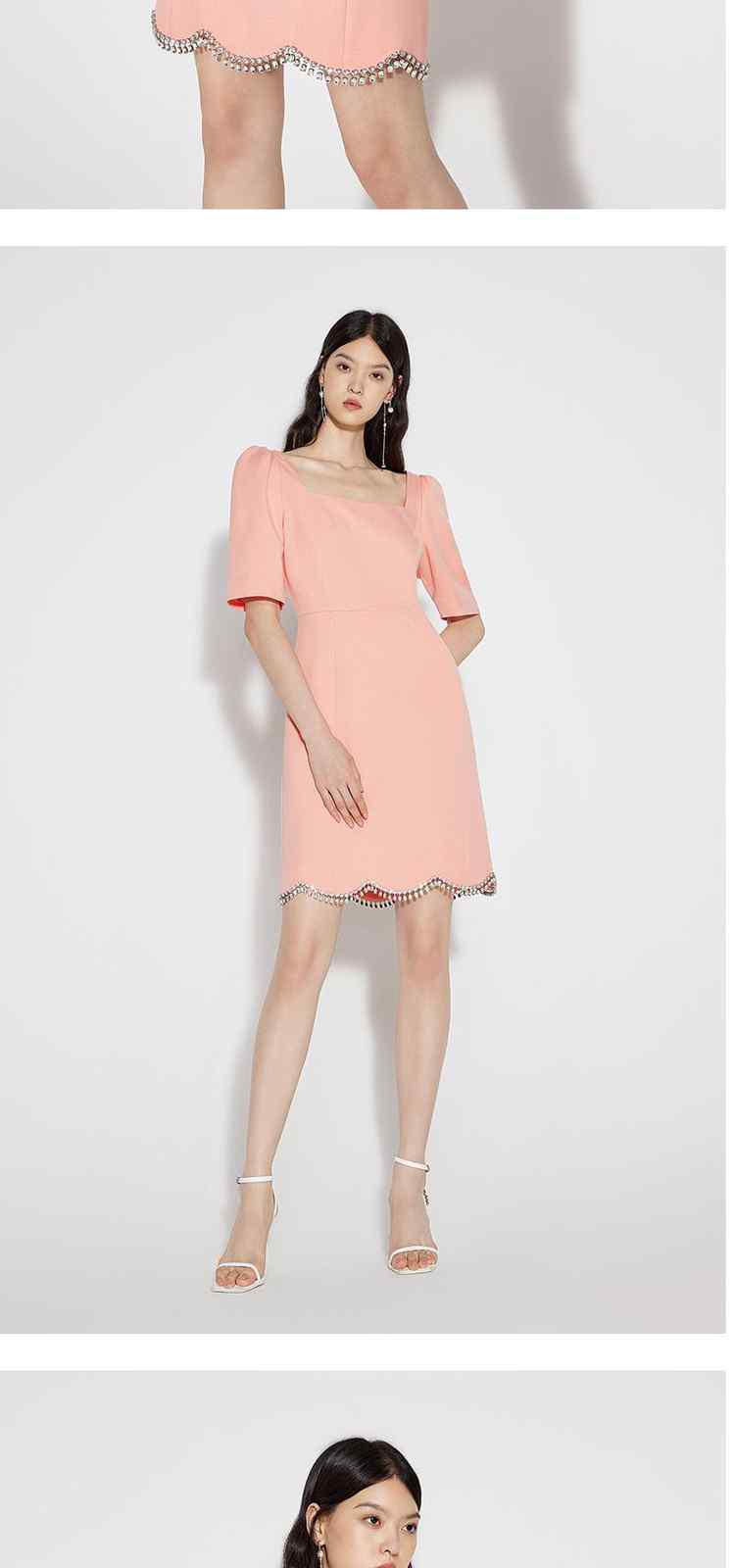 夏装 镶钻泡泡袖方领法式短袖连衣裙 087951
