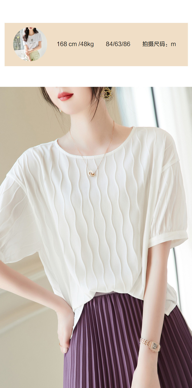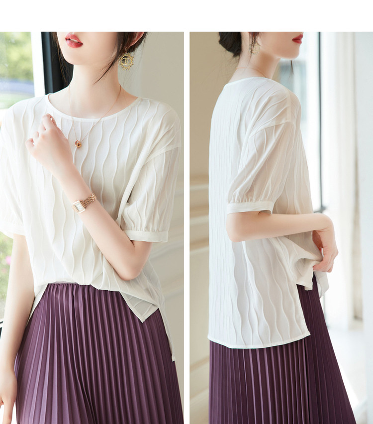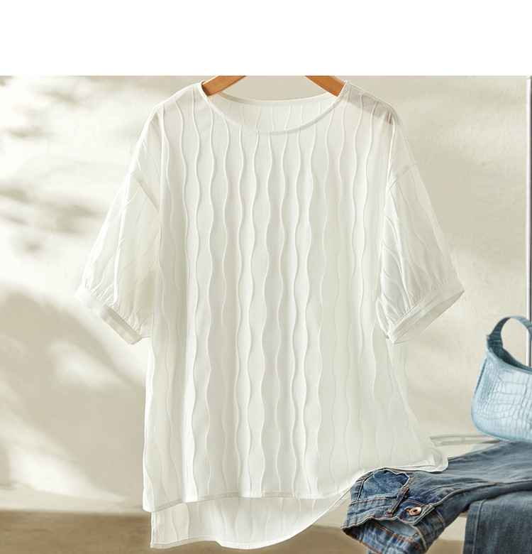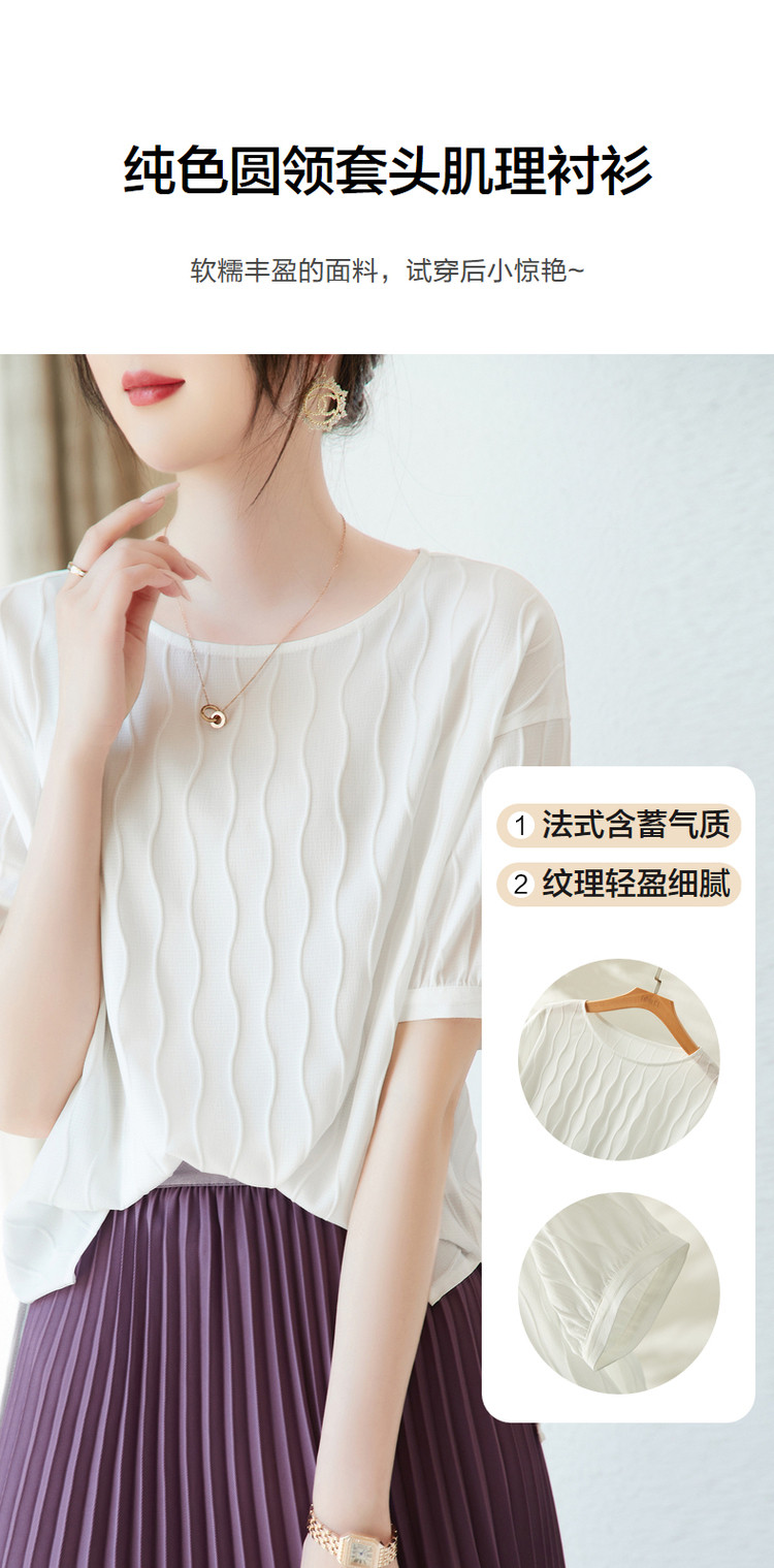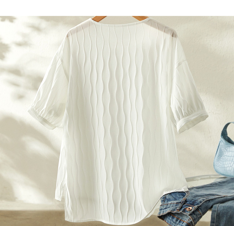 商品名称:【气质肌理衬衫】夏季圆领宽松短袖薄款水洗衬衣女式上衣 105409