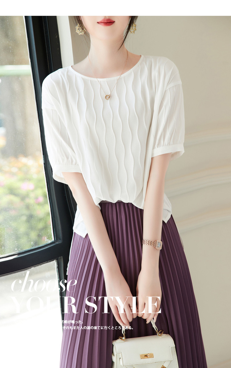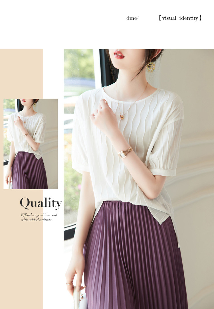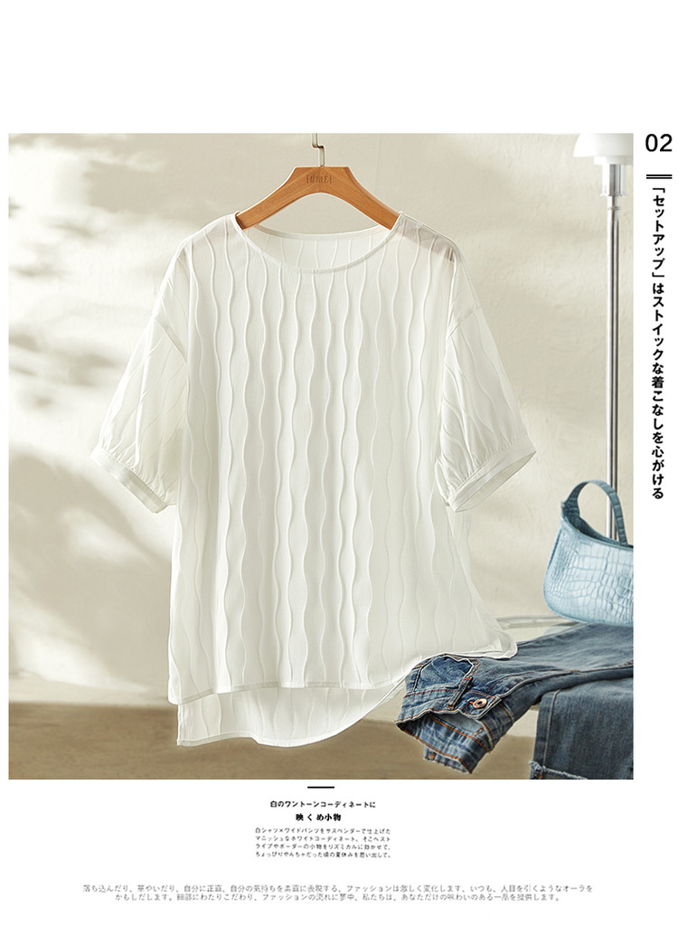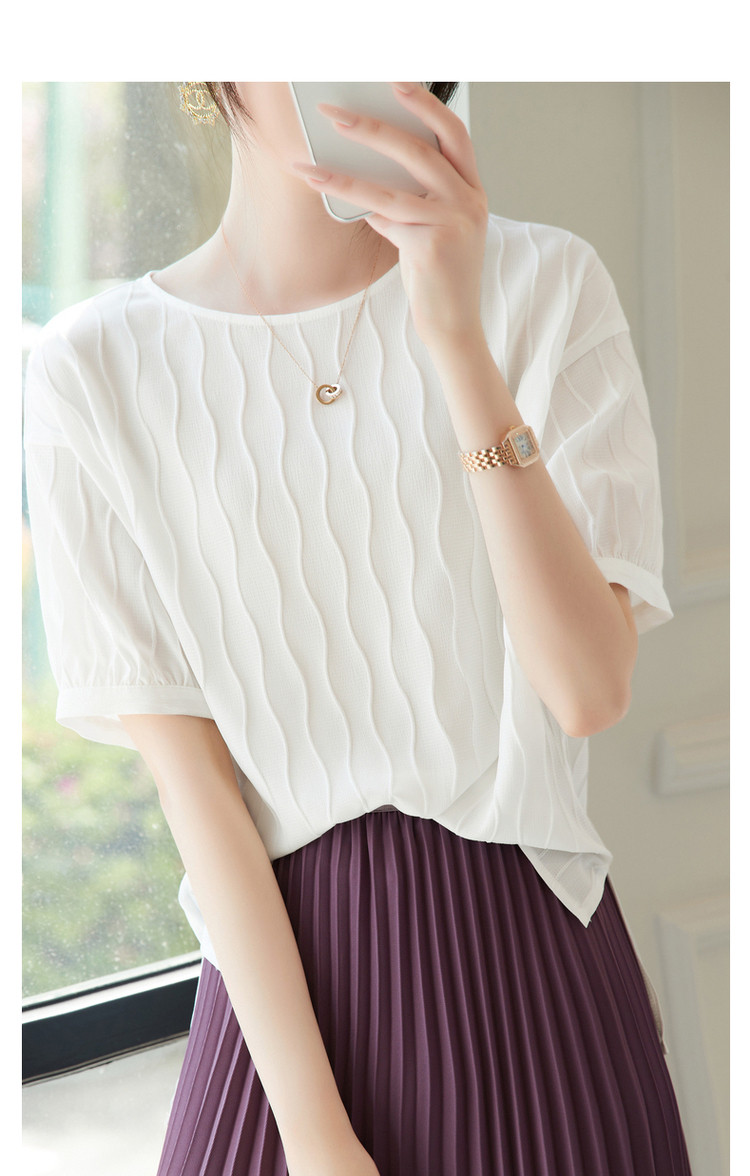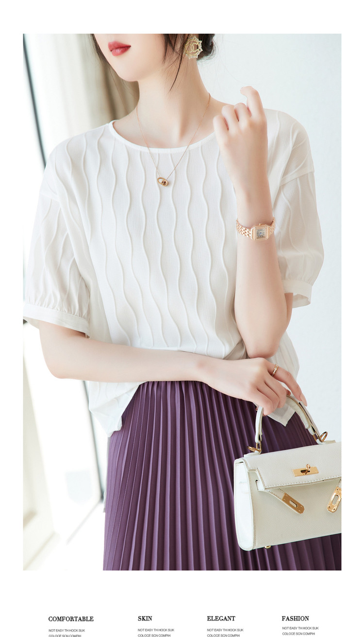 商品名称:【气质肌理衬衫】夏季圆领宽松短袖薄款水洗衬衣女式上衣 105409