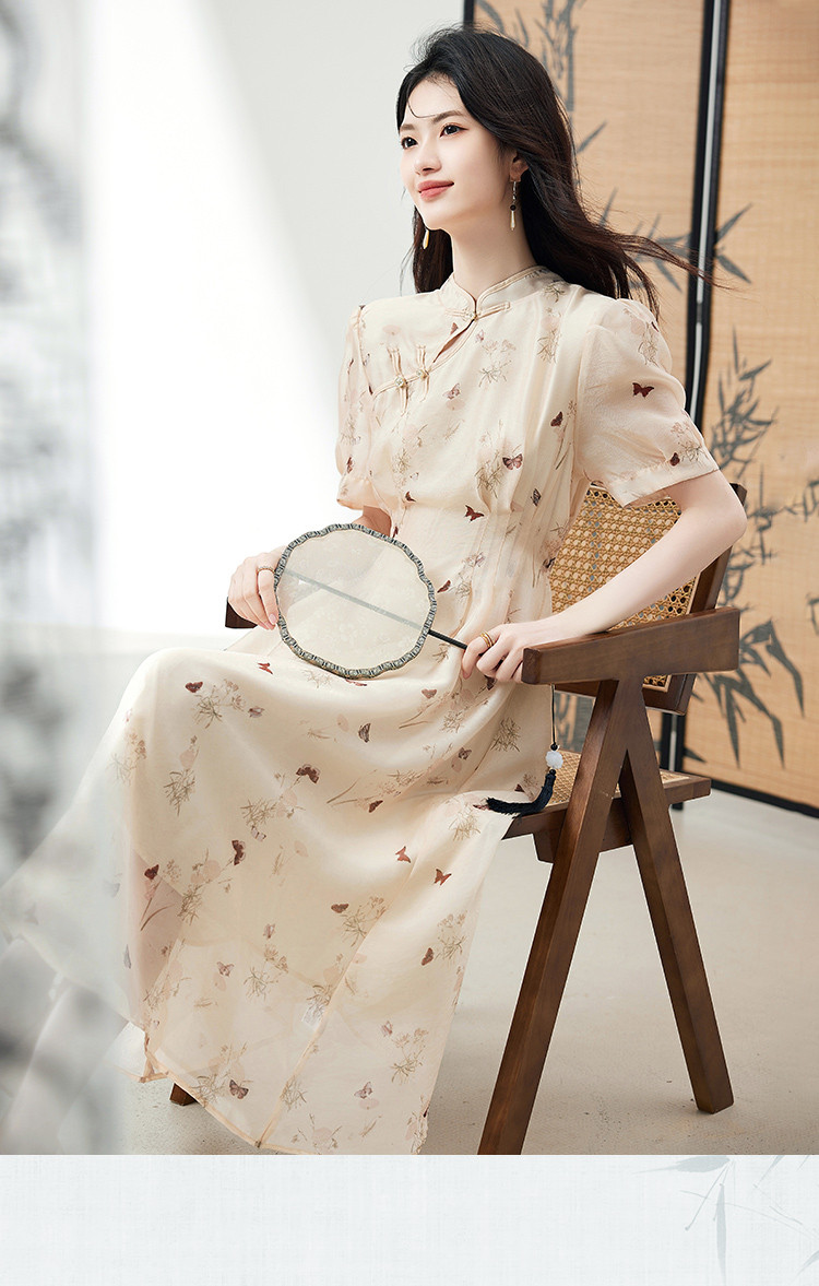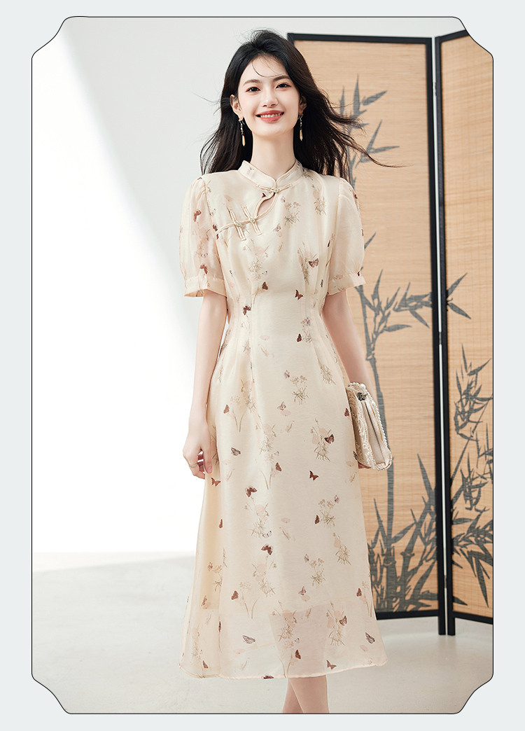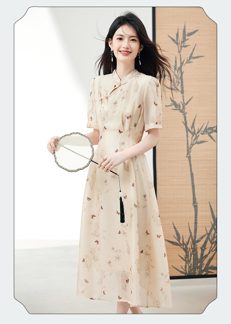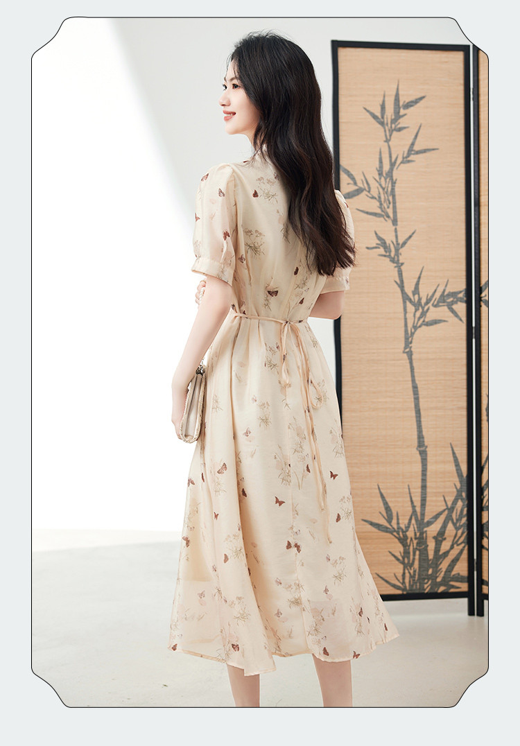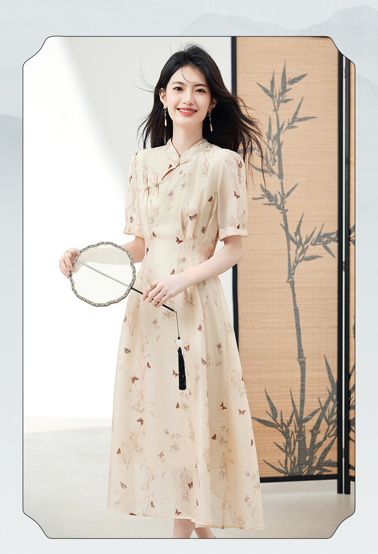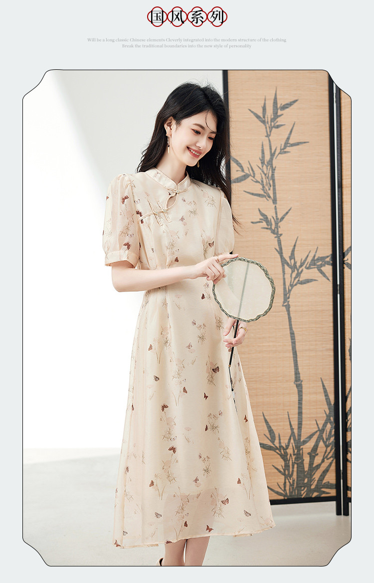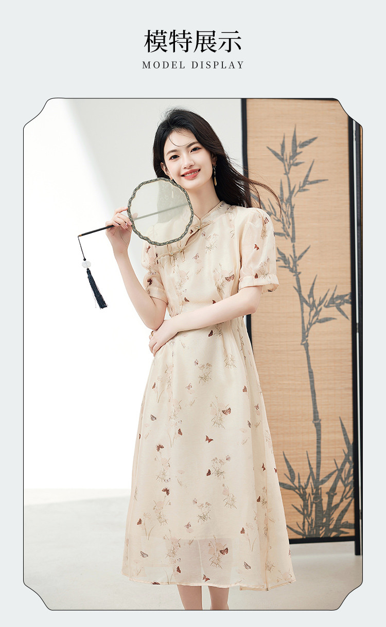 商品名称:连衣裙女2025新款夏季遮肚显瘦印花新中式高级感气质中长裙子 260056
