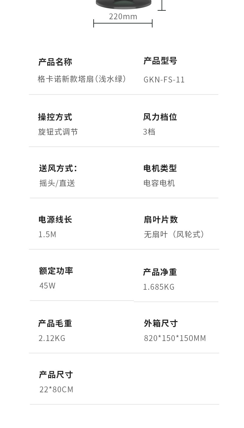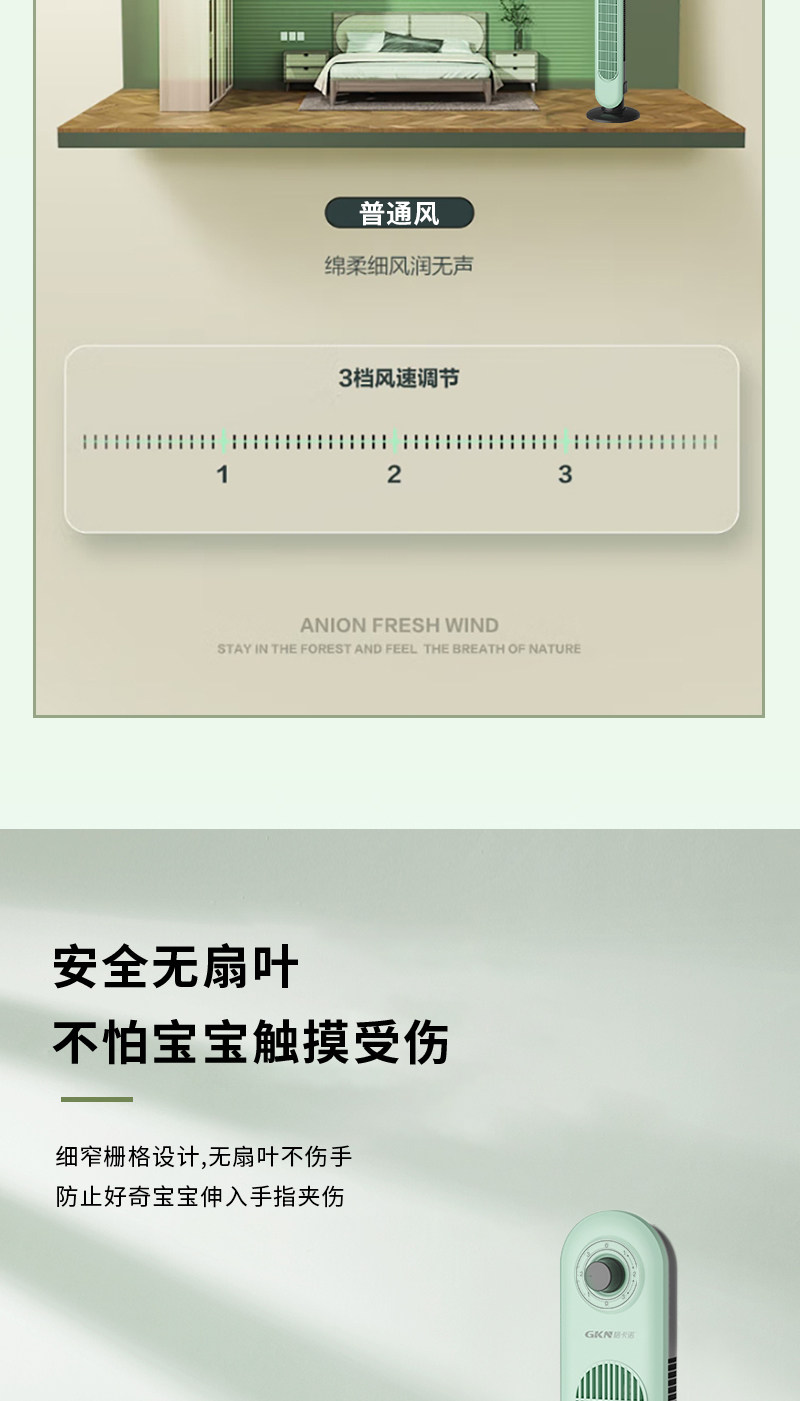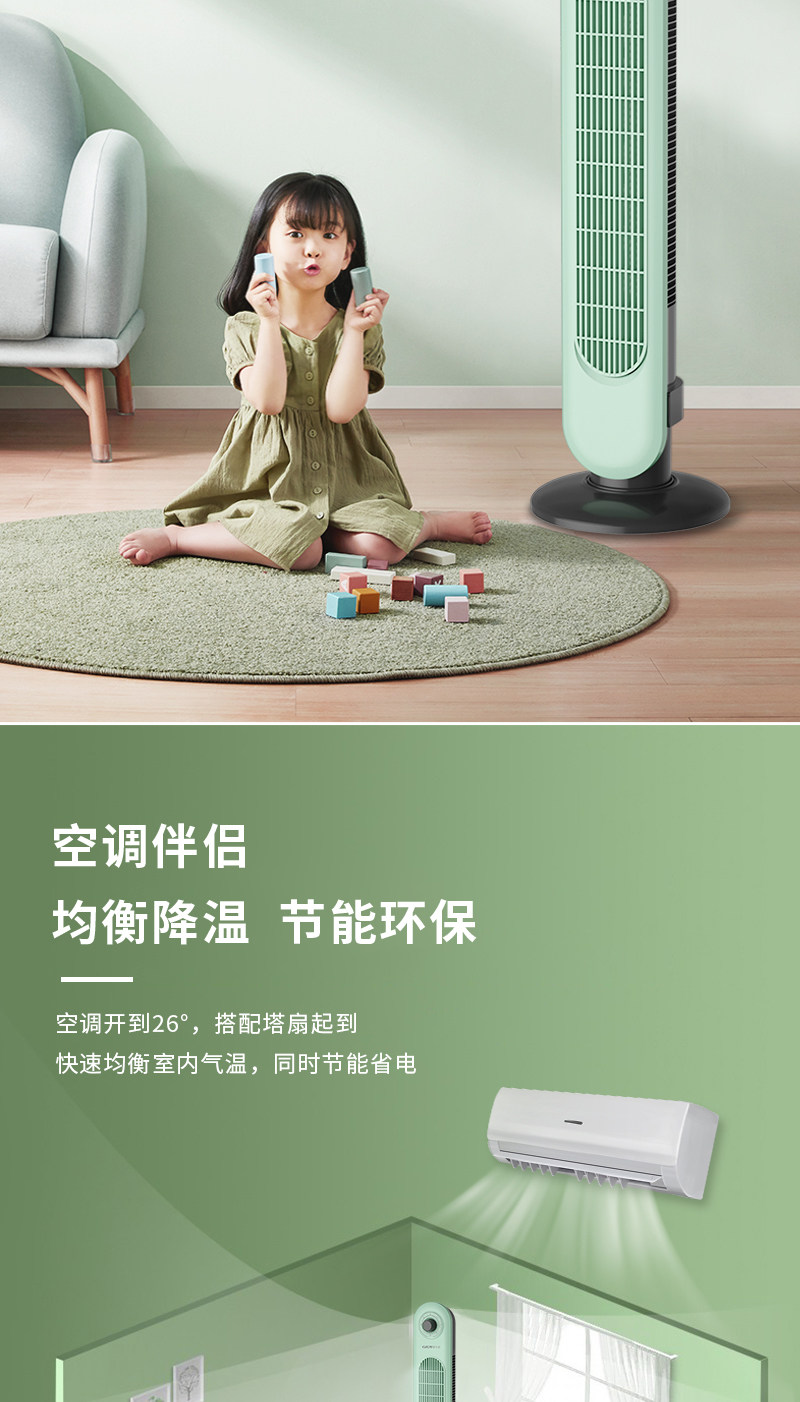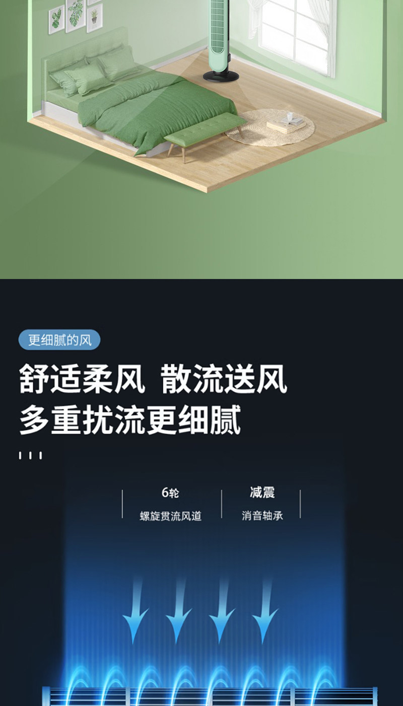 商品名称:格卡诺新款塔扇家用电风扇轻音节能无叶风扇大风量电扇(浅水绿)