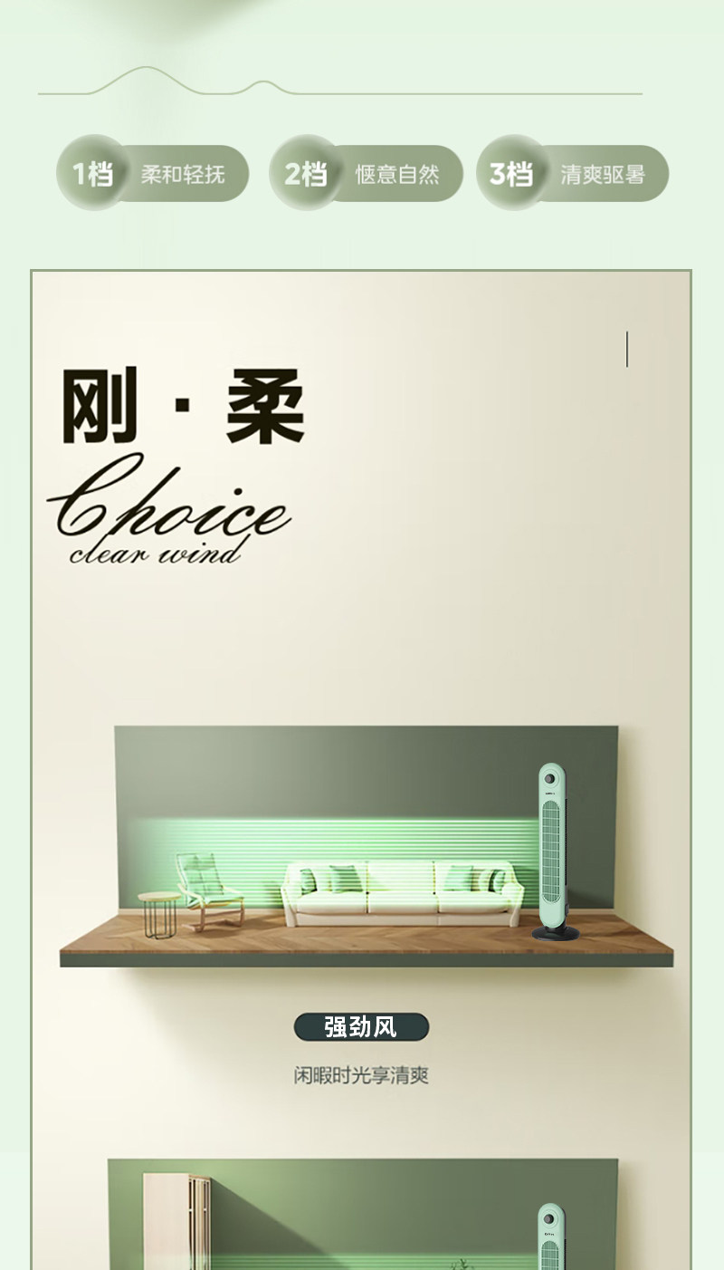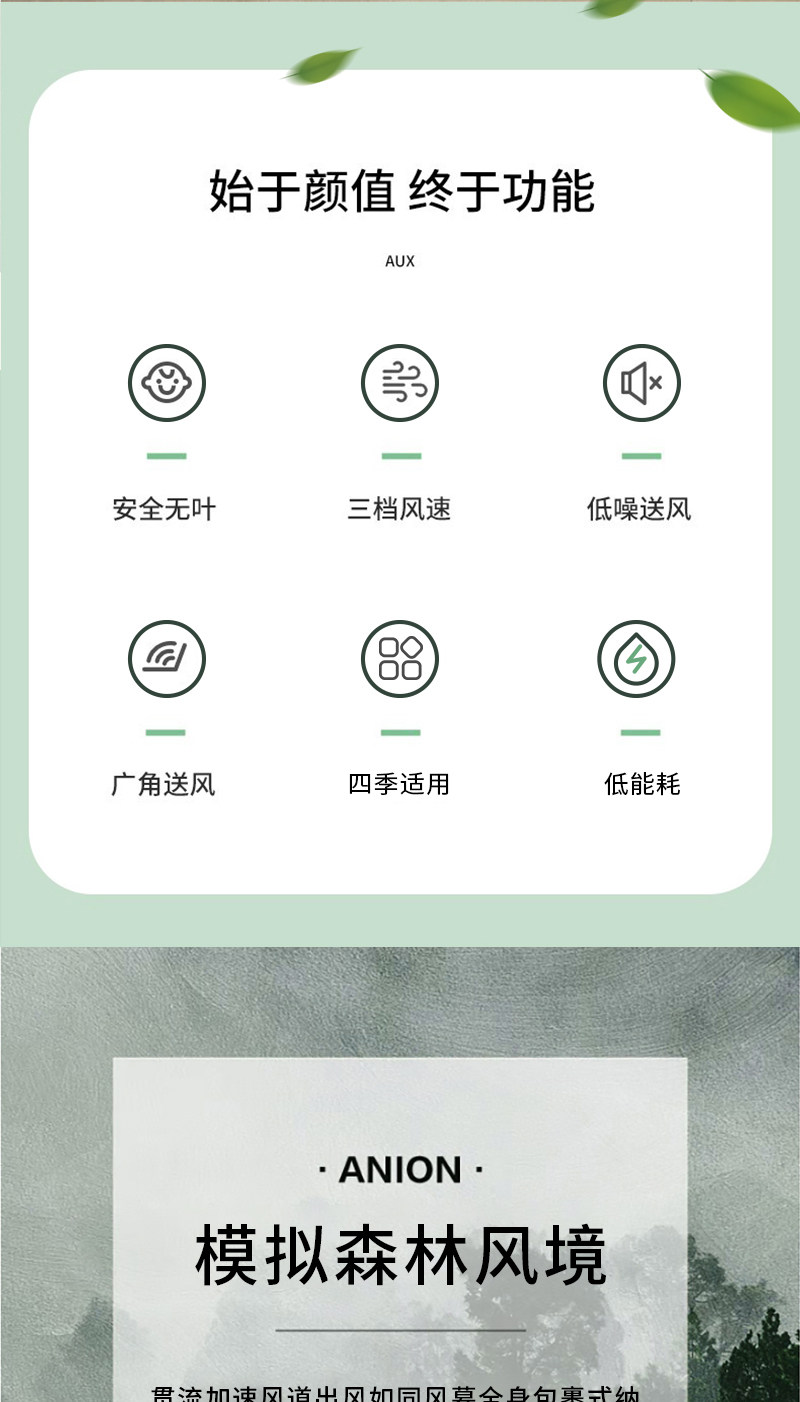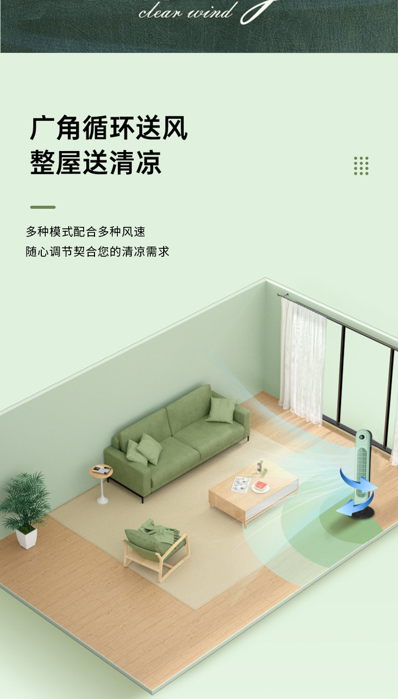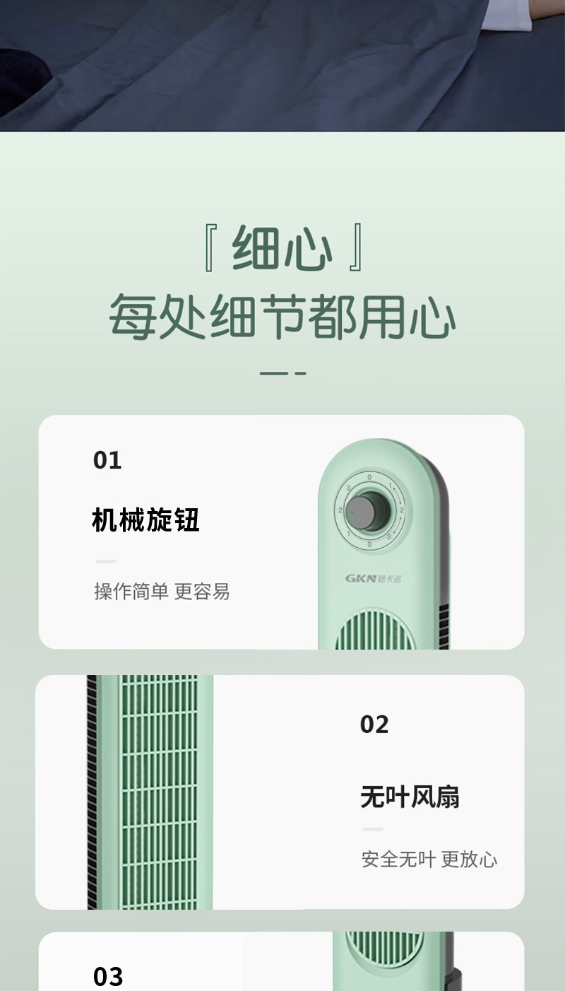 商品名称:格卡诺新款塔扇家用电风扇轻音节能无叶风扇大风量电扇(浅水绿)