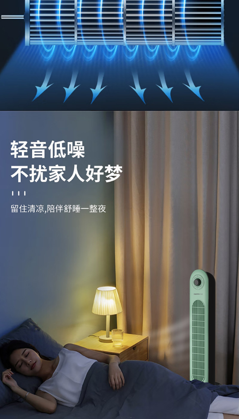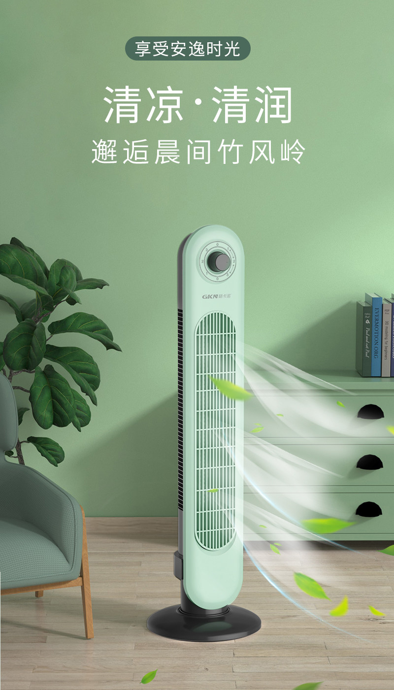 格卡诺新款塔扇家用电风扇轻音节能无叶风扇大风量电扇(浅水绿)