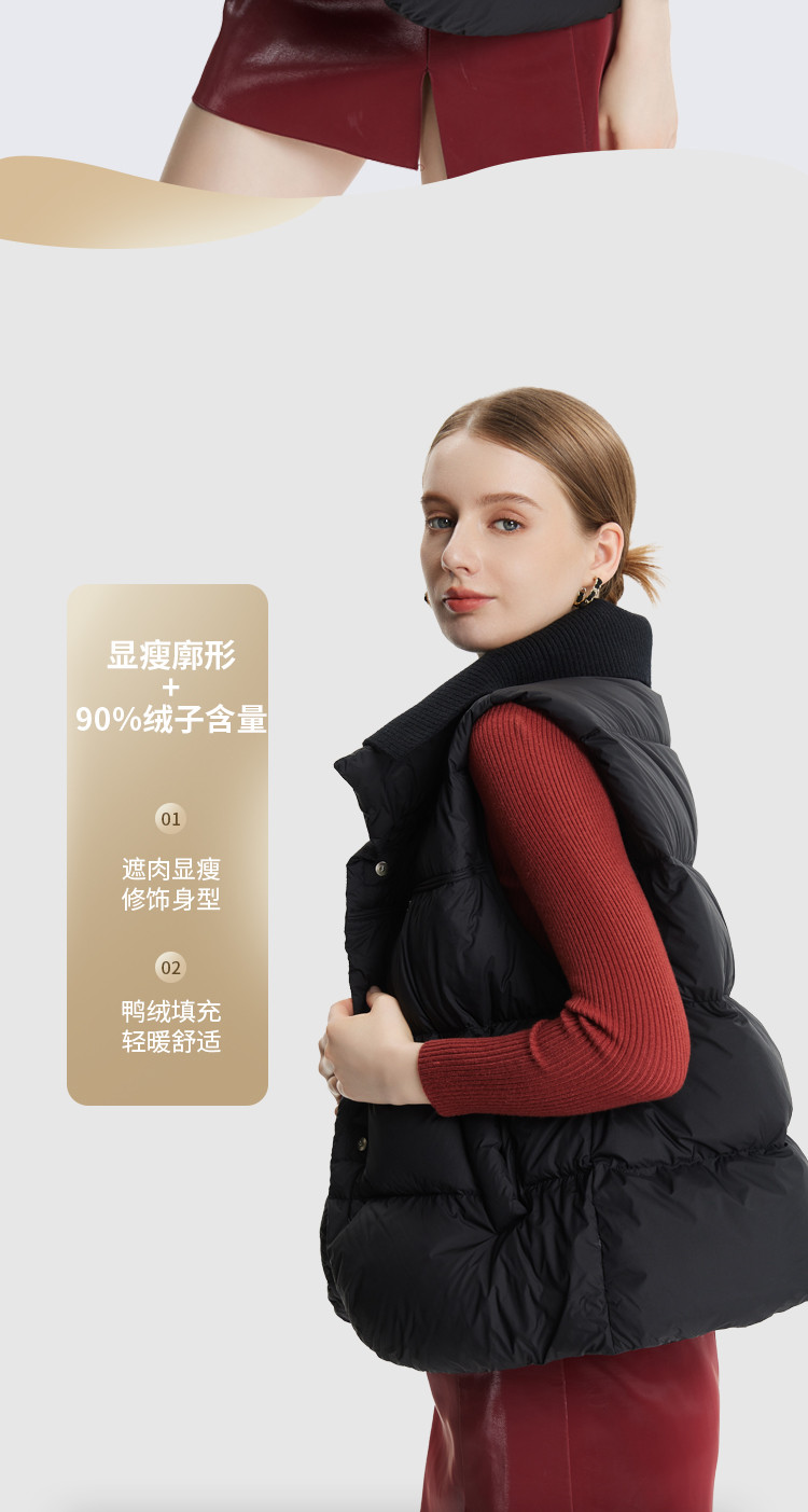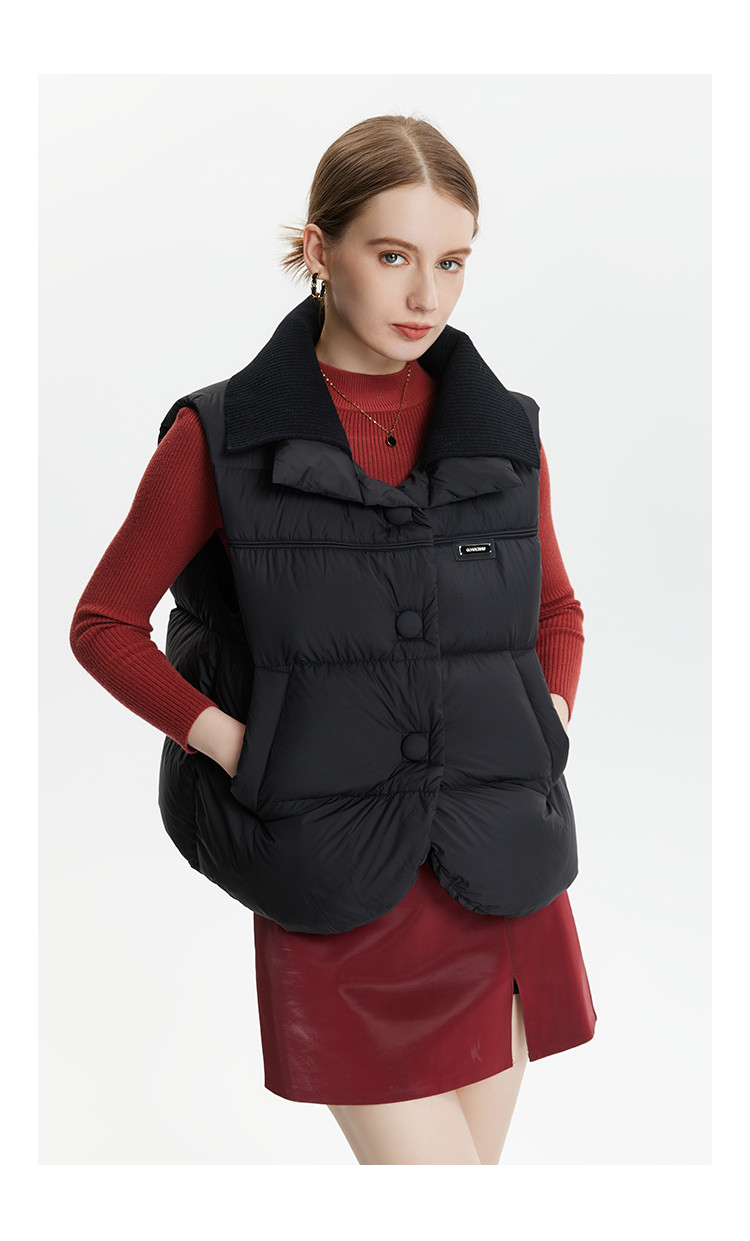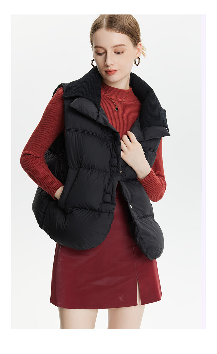 【好物推荐】针织拼接双层领宽松廓形保暖短款休闲羽绒外穿马甲 346207