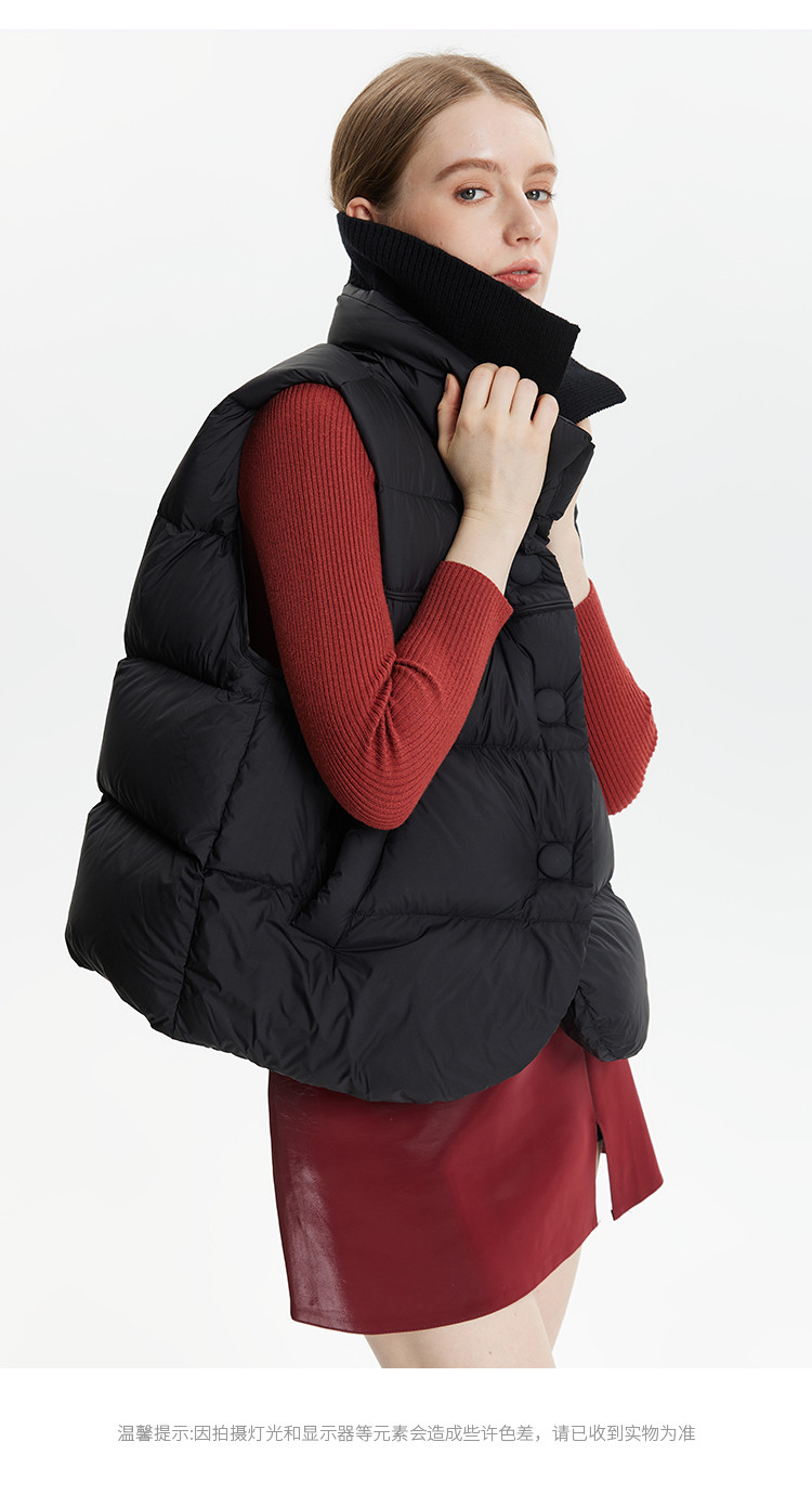 商品名称:【好物推荐】针织拼接双层领宽松廓形保暖短款休闲羽绒外穿马甲 346207