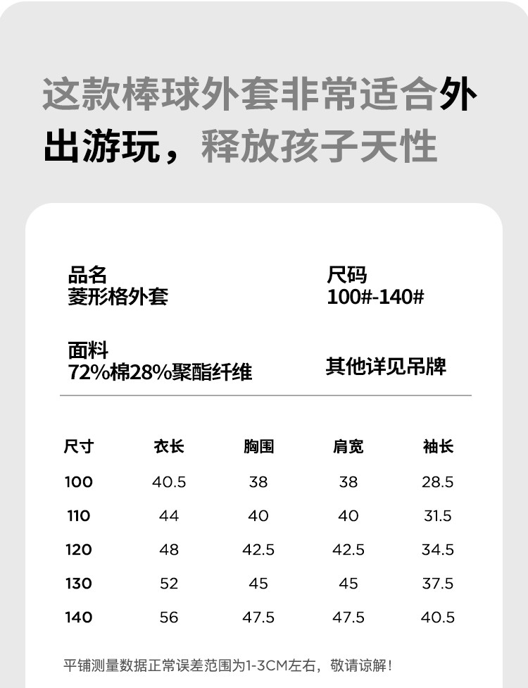 商品名称:【菱形格撞色棒球服】春季男童外套百搭立领儿童外套儿童棒球服 723608