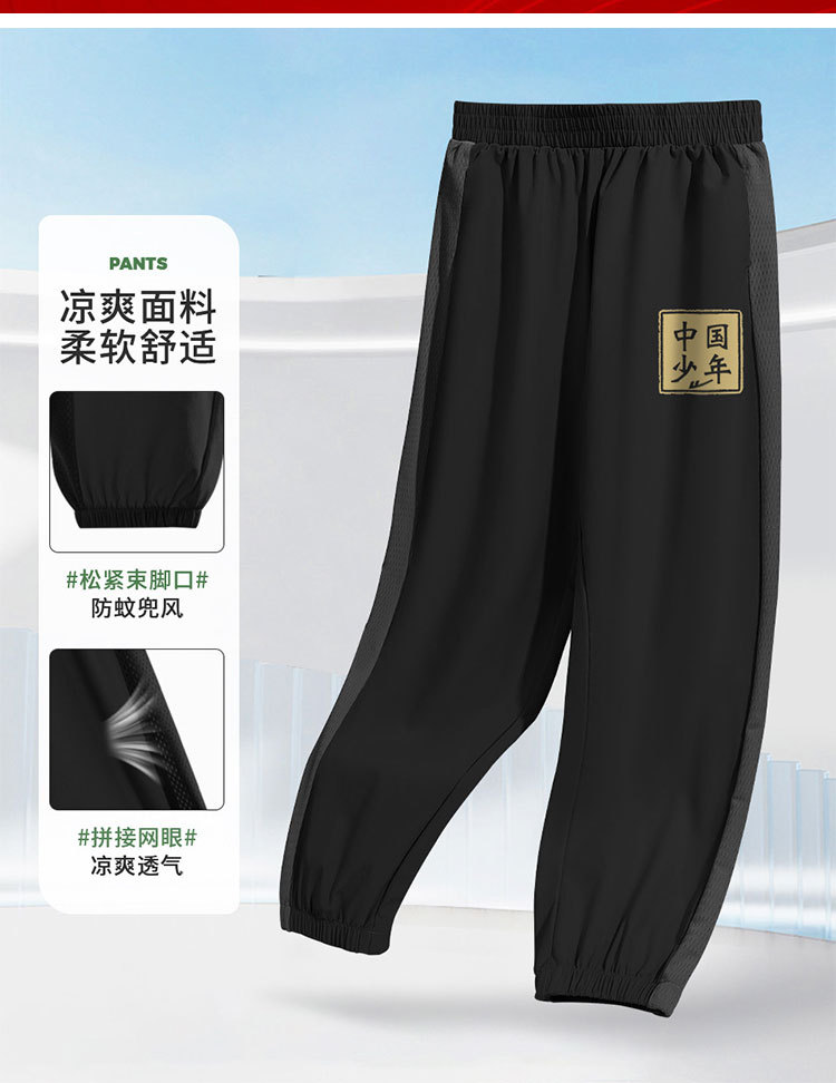 中大童长裤薄款国潮拼接防蚊裤凉感休闲运动裤25年儿童夏季裤子 574803