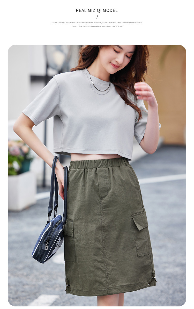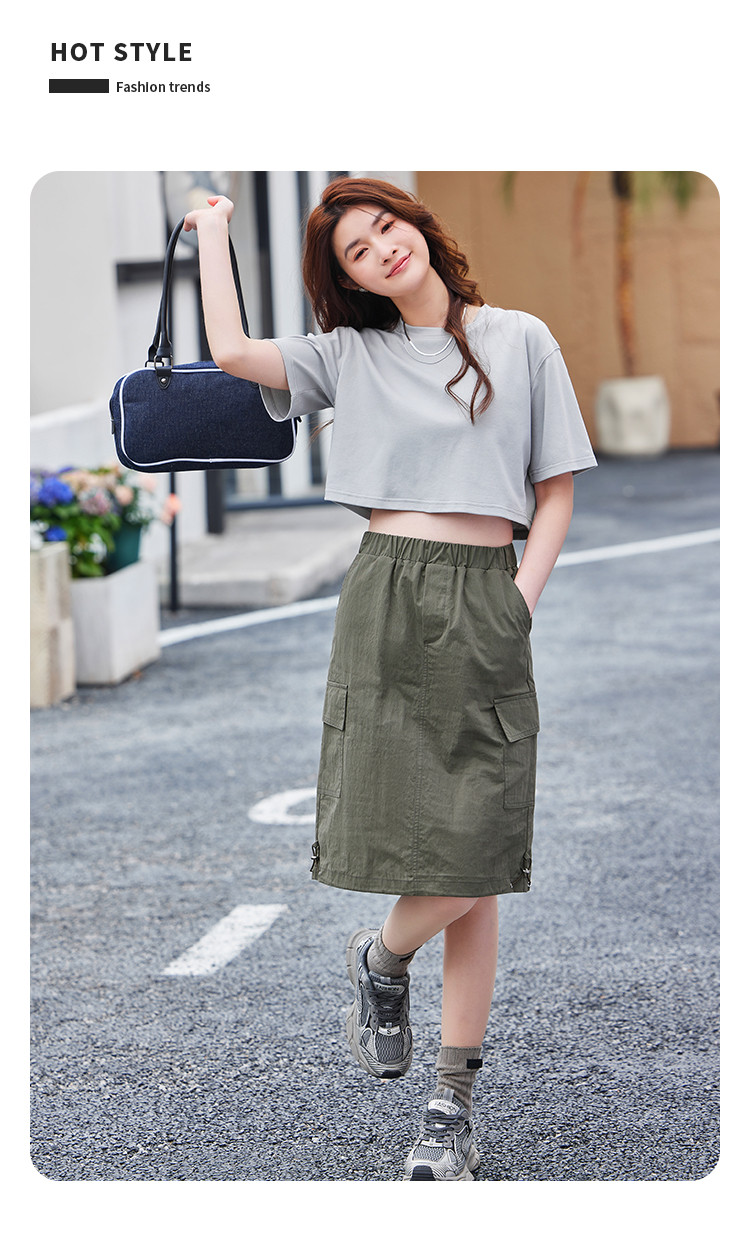 米子旗春夏季款半身裙宽松松紧腰口袋半身直筒裙 071962