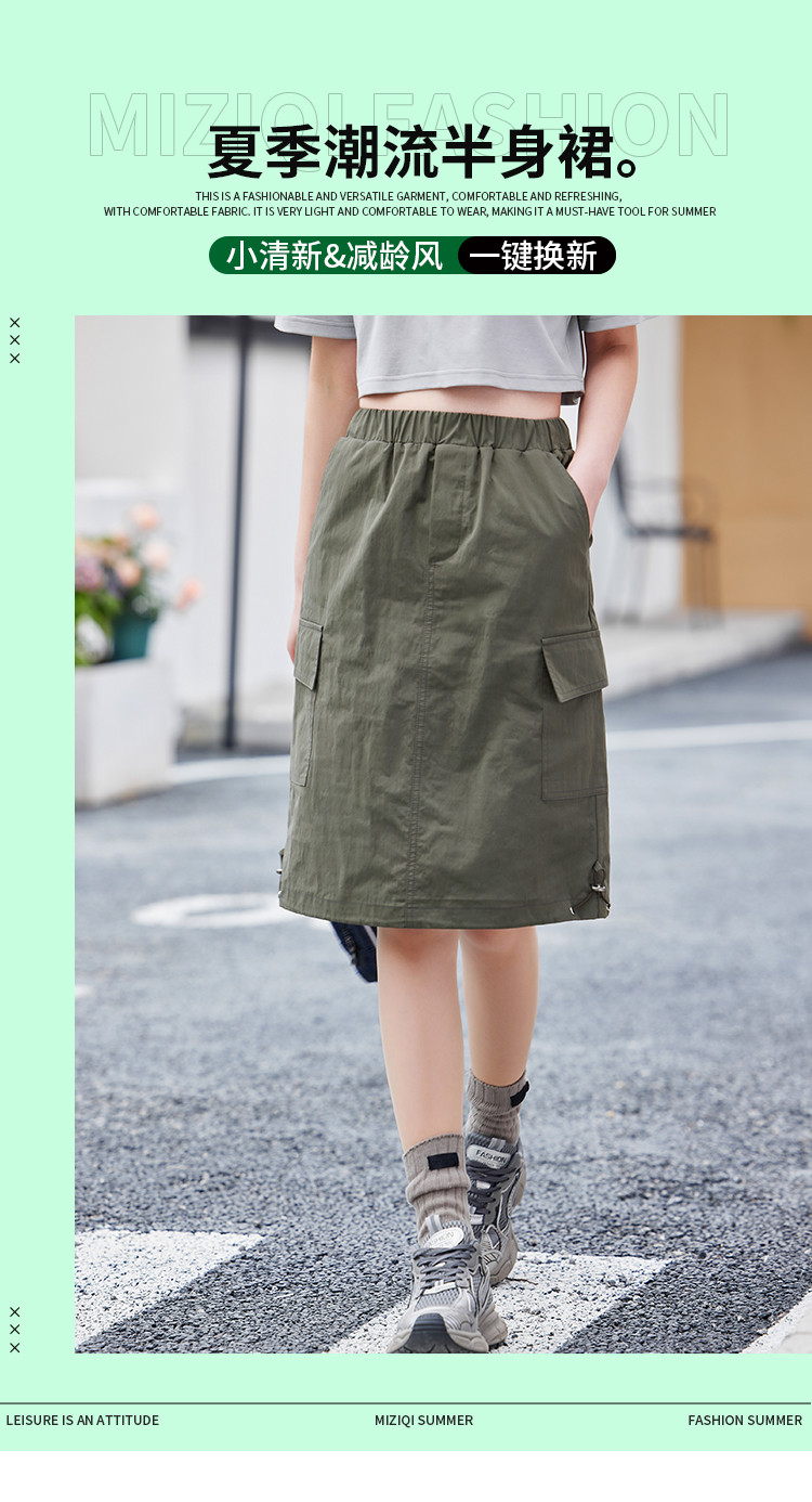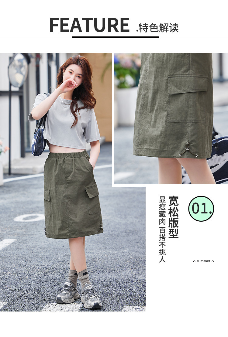 商品名称:米子旗春夏季款半身裙宽松松紧腰口袋半身直筒裙 071962