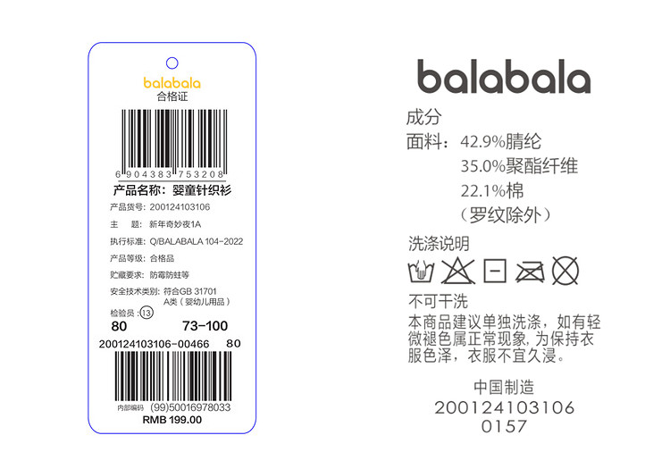 商品名称:巴拉巴拉宝宝毛衣针织衫男童打底衫线衫春秋款时尚潮 743109