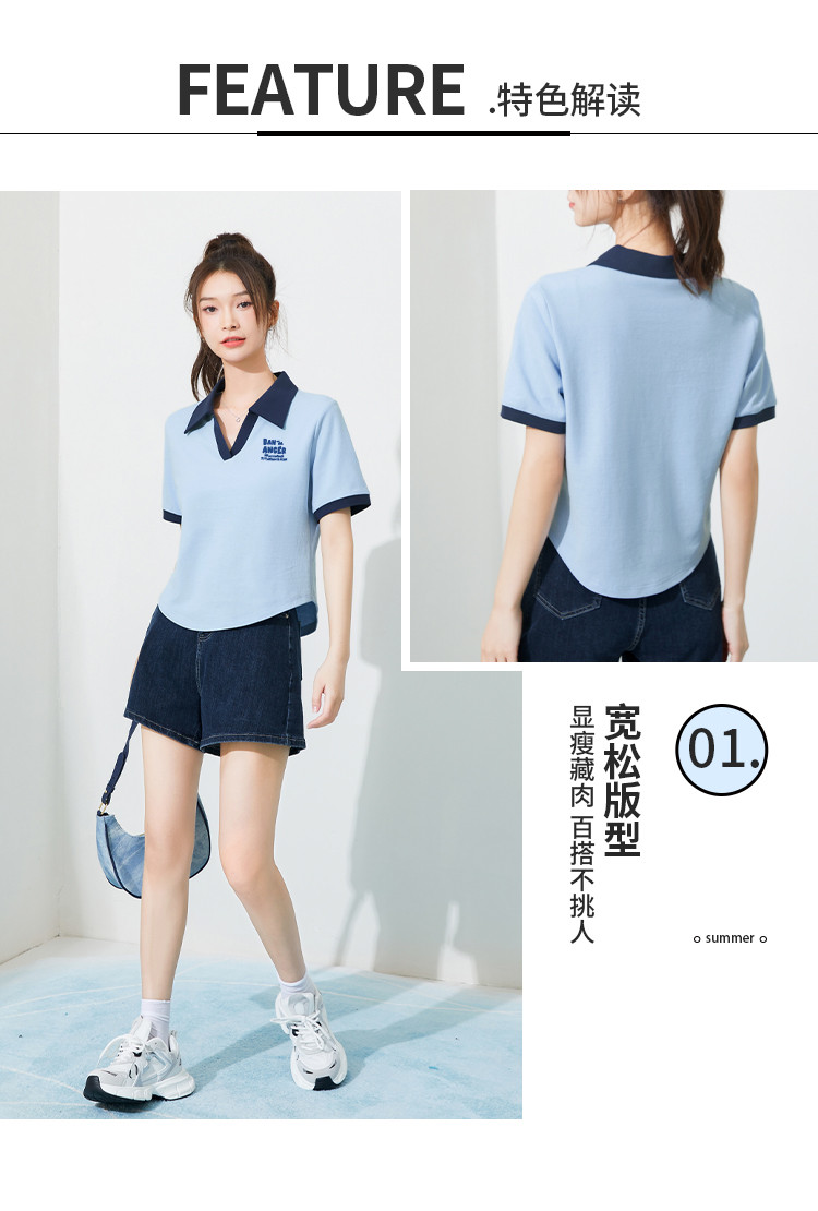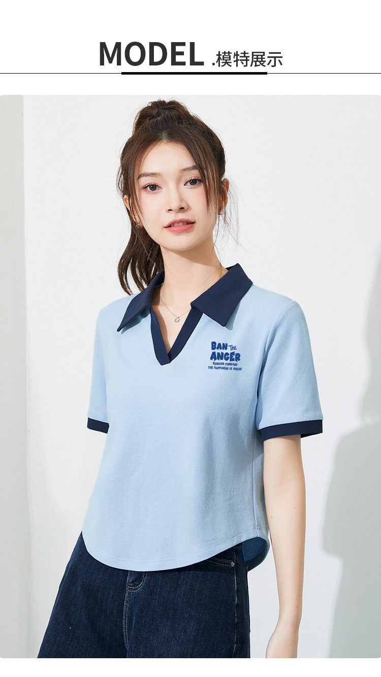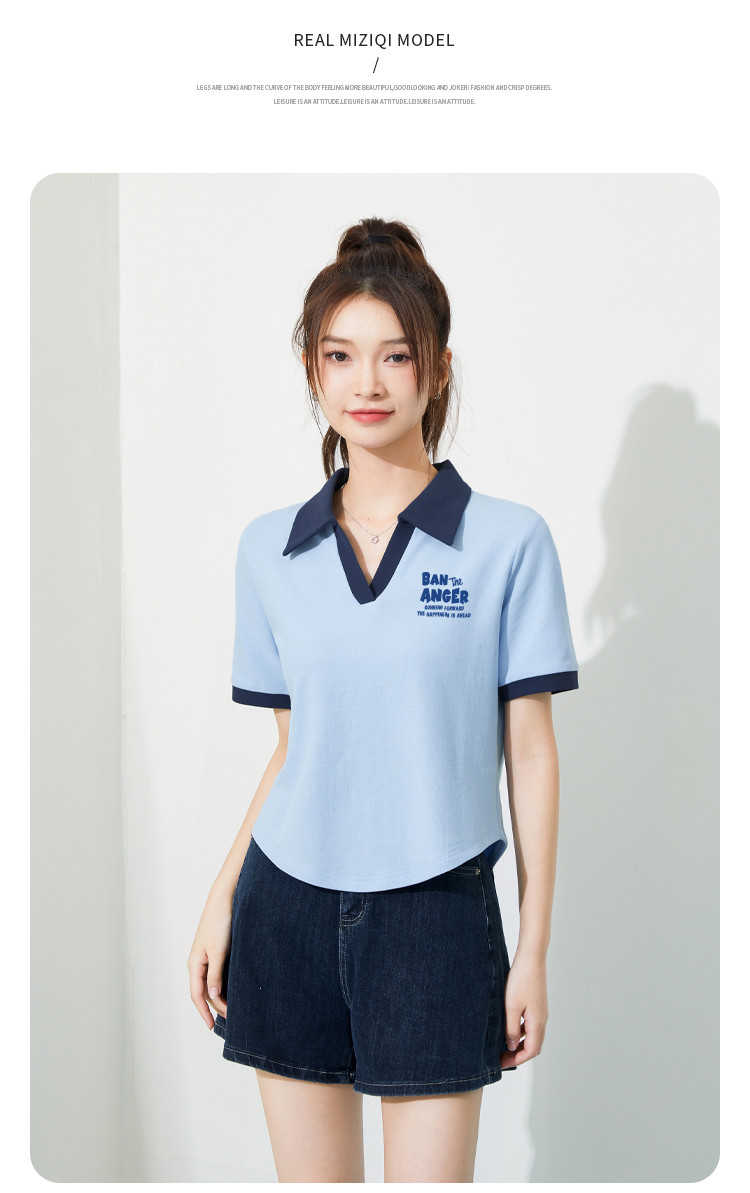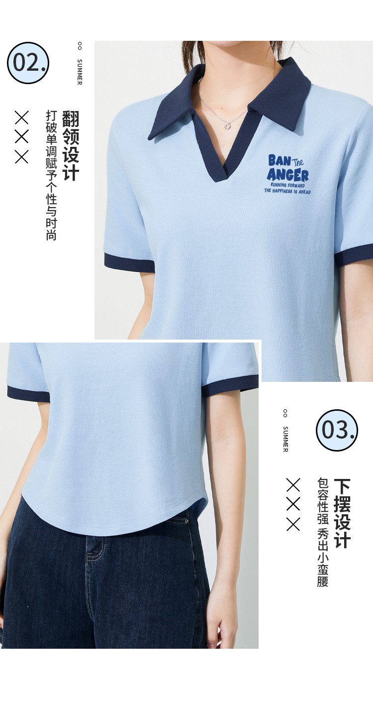 商品名称:米子旗夏季polo领创意印花女式T恤短款修身减龄短袖上衣 480282