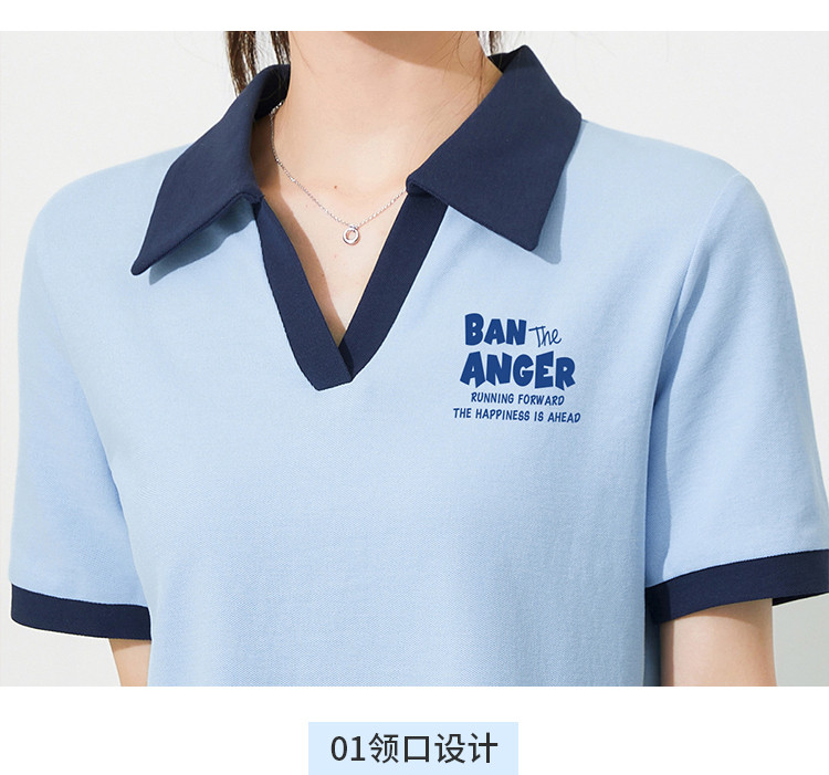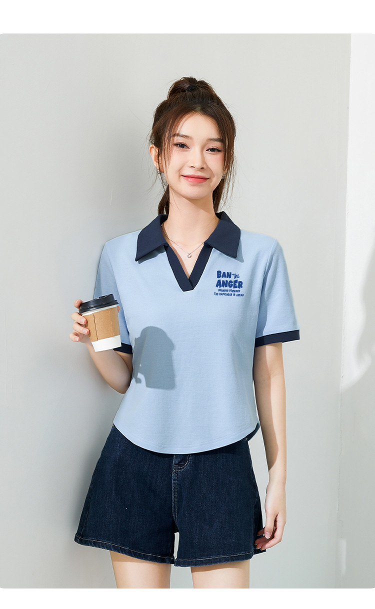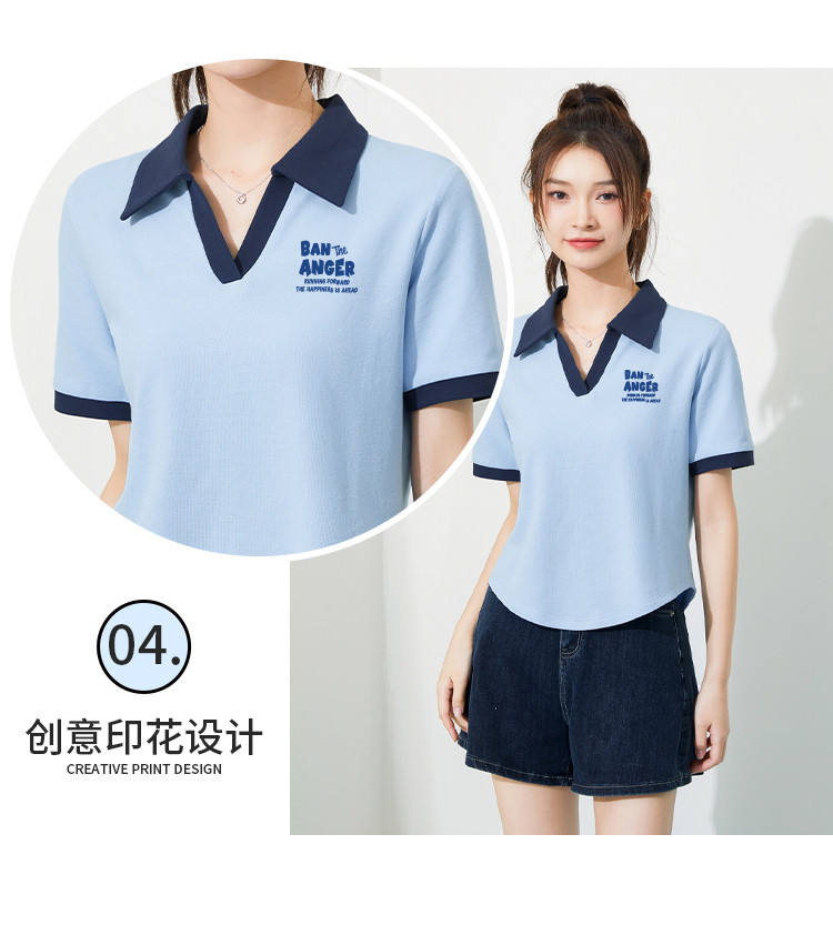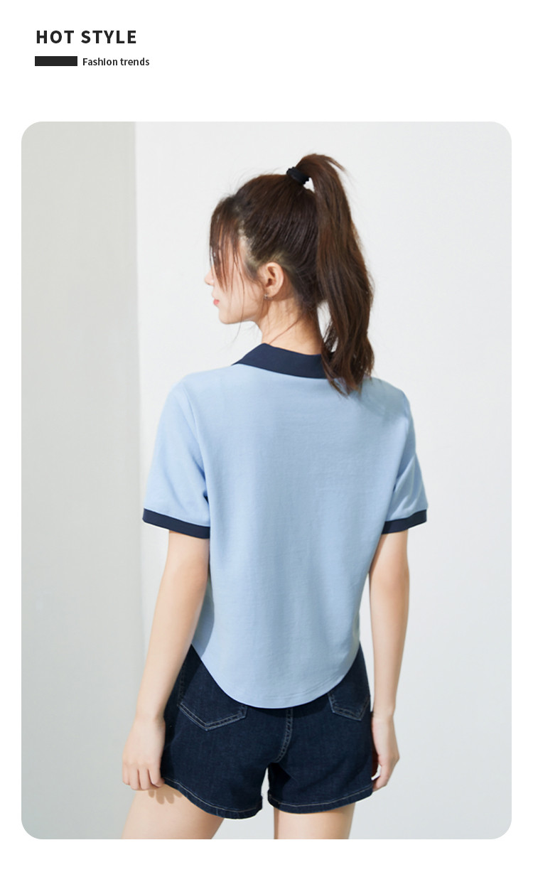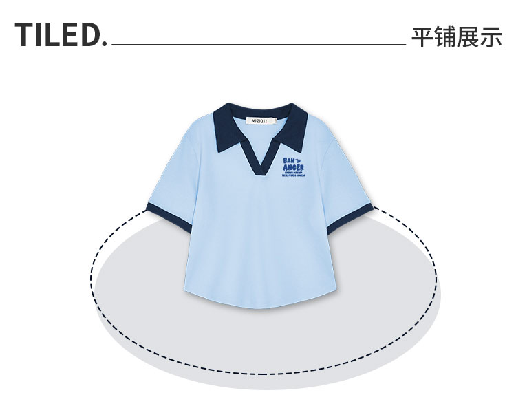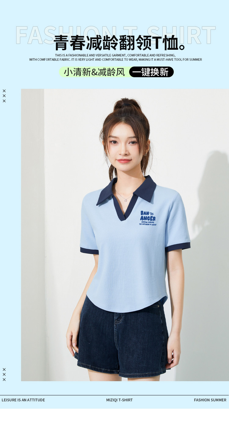 商品名称:米子旗夏季polo领创意印花女式T恤短款修身减龄短袖上衣 480282