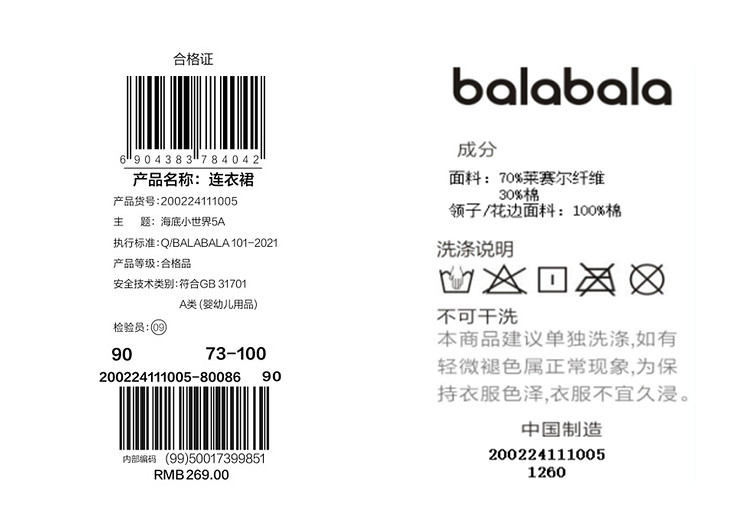 商品名称:巴拉巴拉宝宝连衣裙婴儿裙子儿童公主裙女童夏装甜美气质清爽时尚 826757