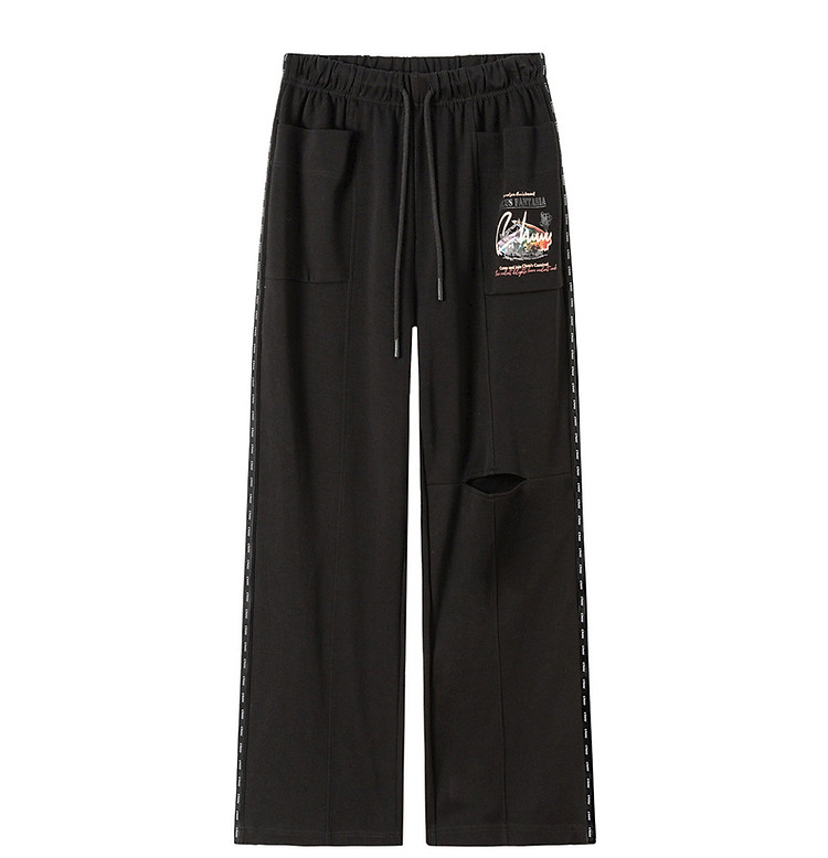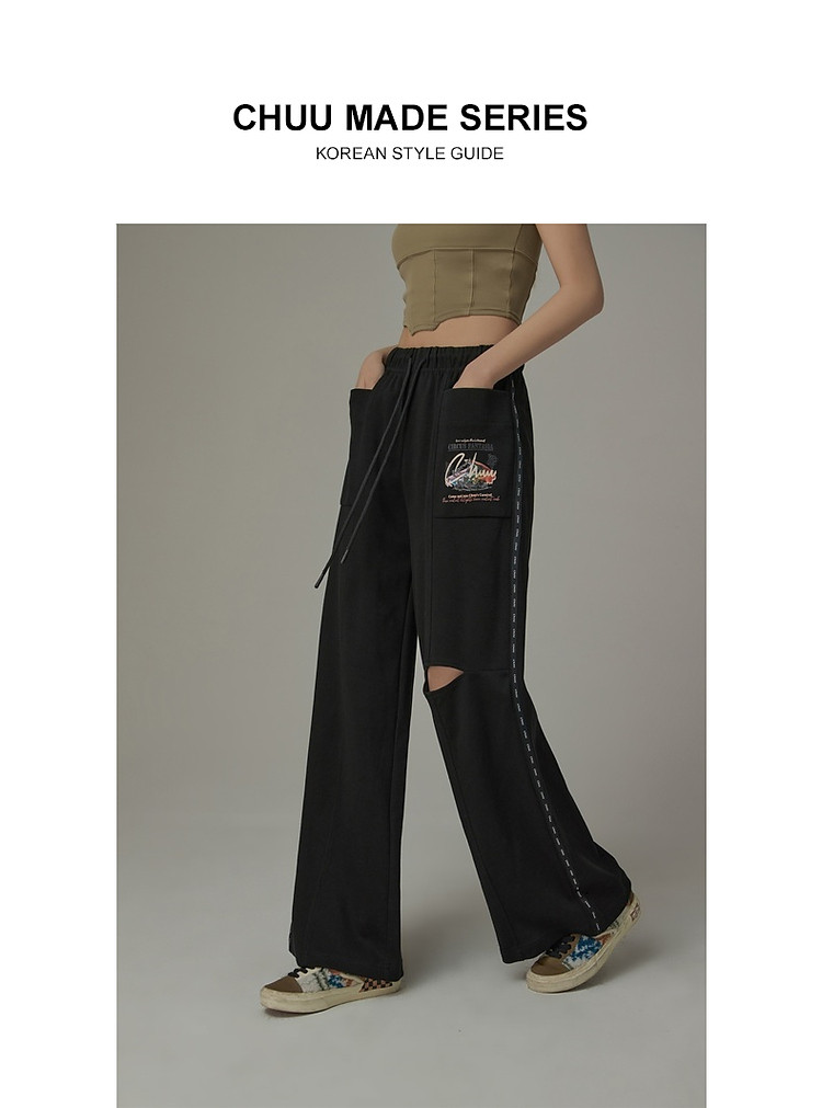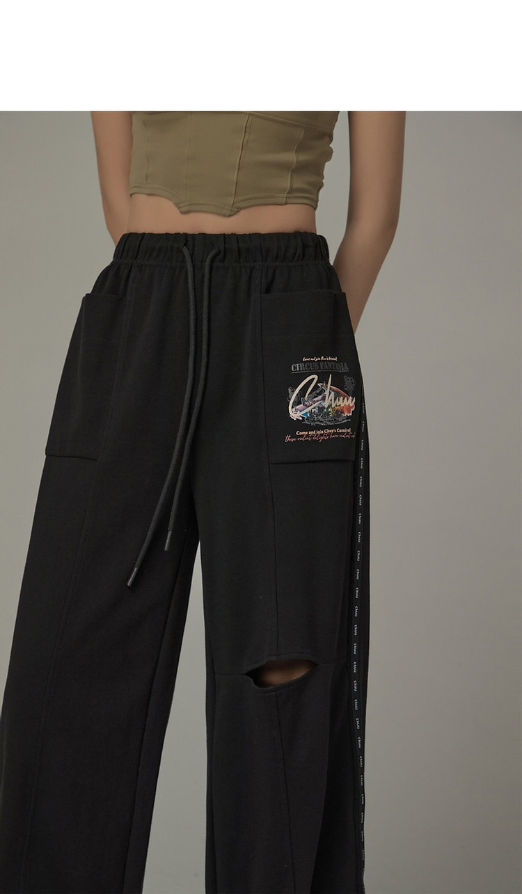 商品名称:字母印花休闲裤女夏松紧腰系带宽松阔腿裤子 504979