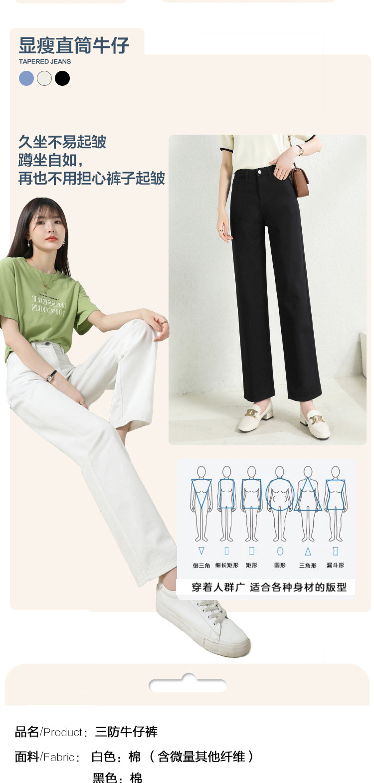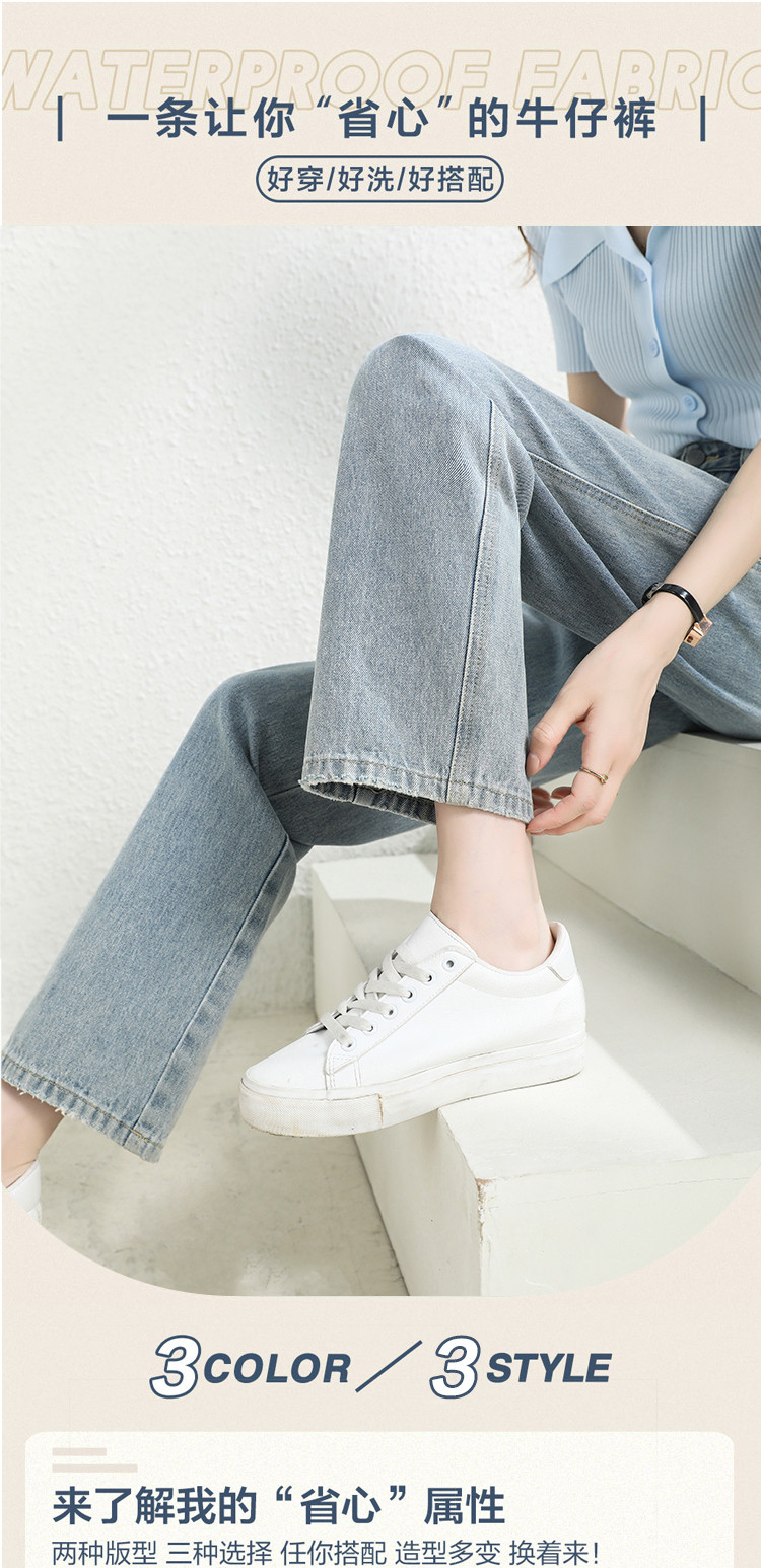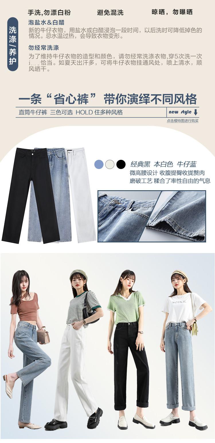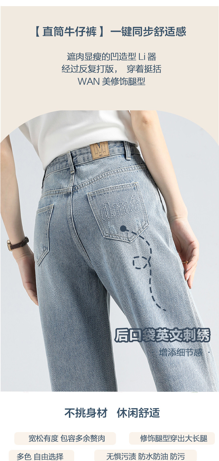 商品名称:【高能黑科技三防】夏季复古棉质简约字母绣花直筒裤藏肉女牛仔裤 760257