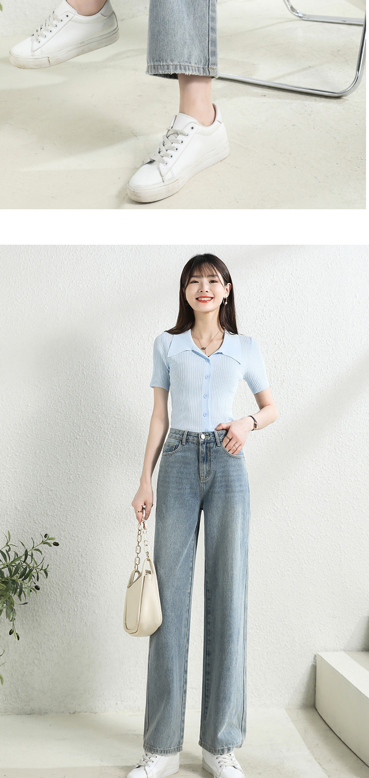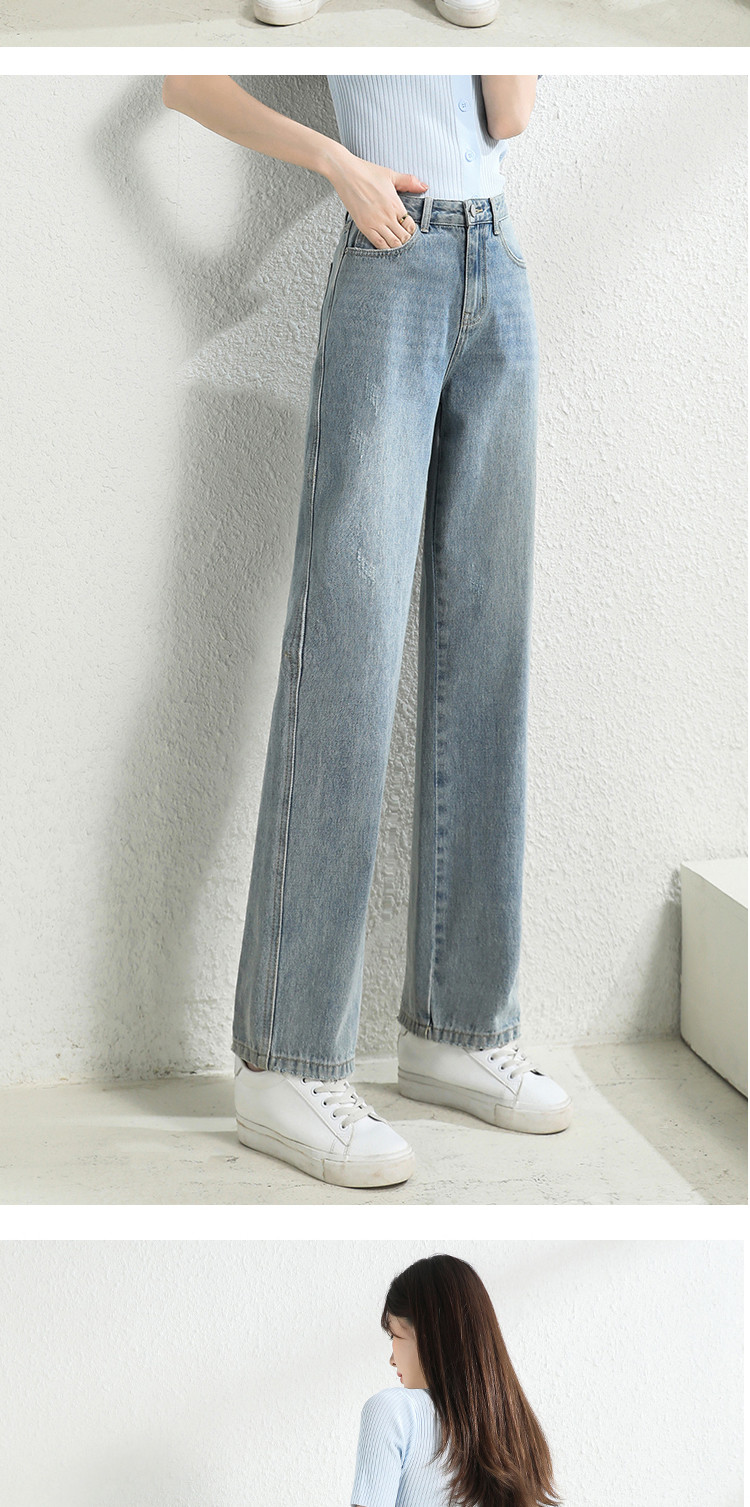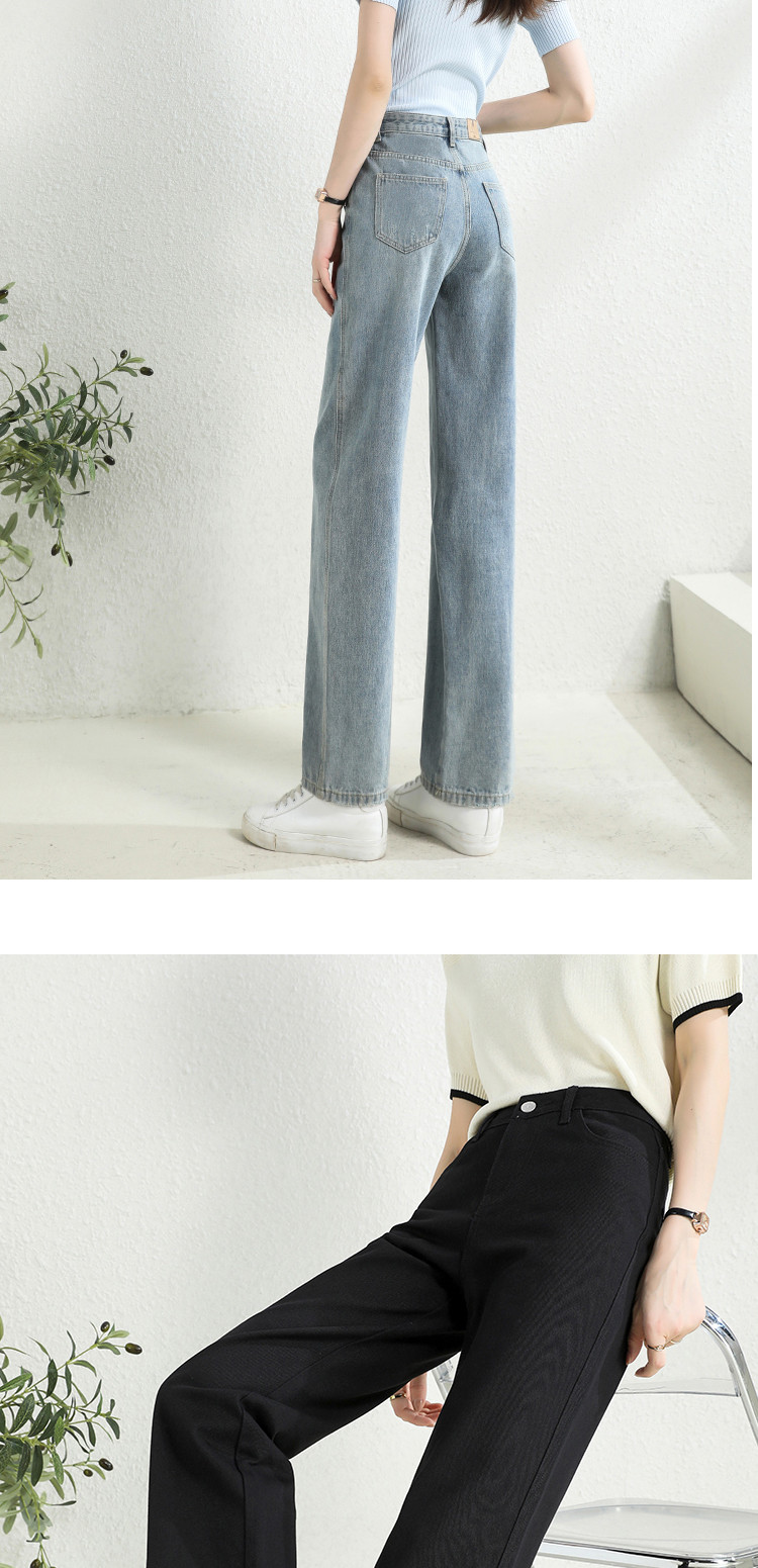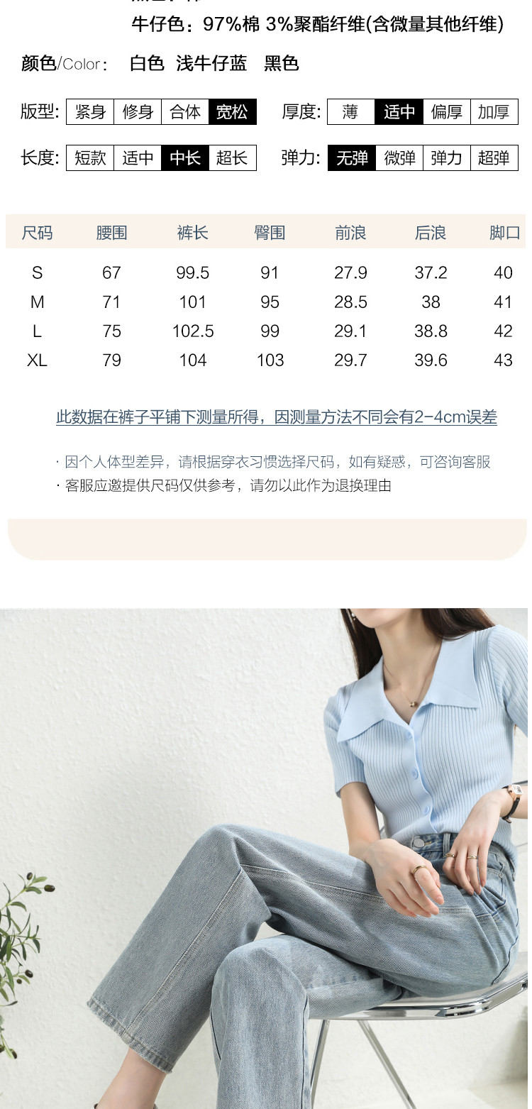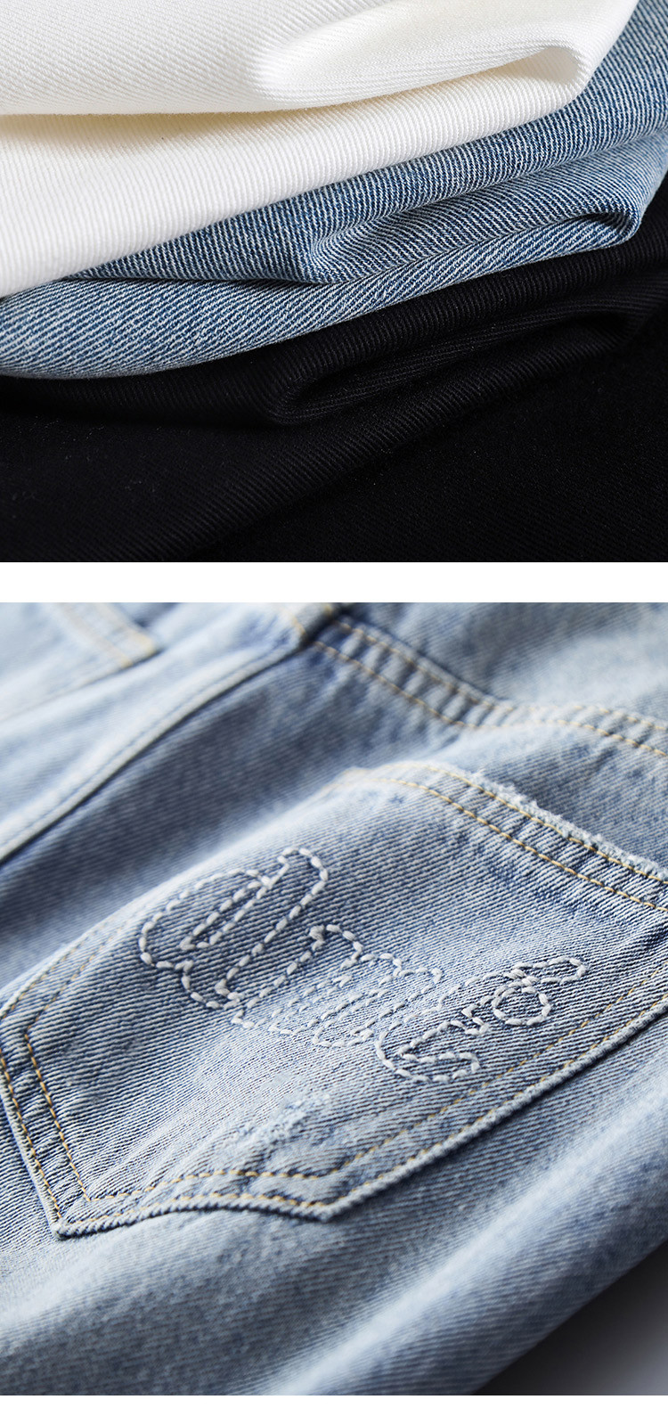 商品名称:【高能黑科技三防】夏季复古棉质简约字母绣花直筒裤藏肉女牛仔裤 760257