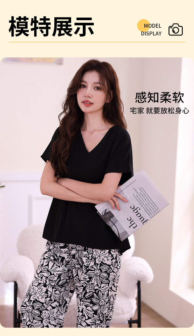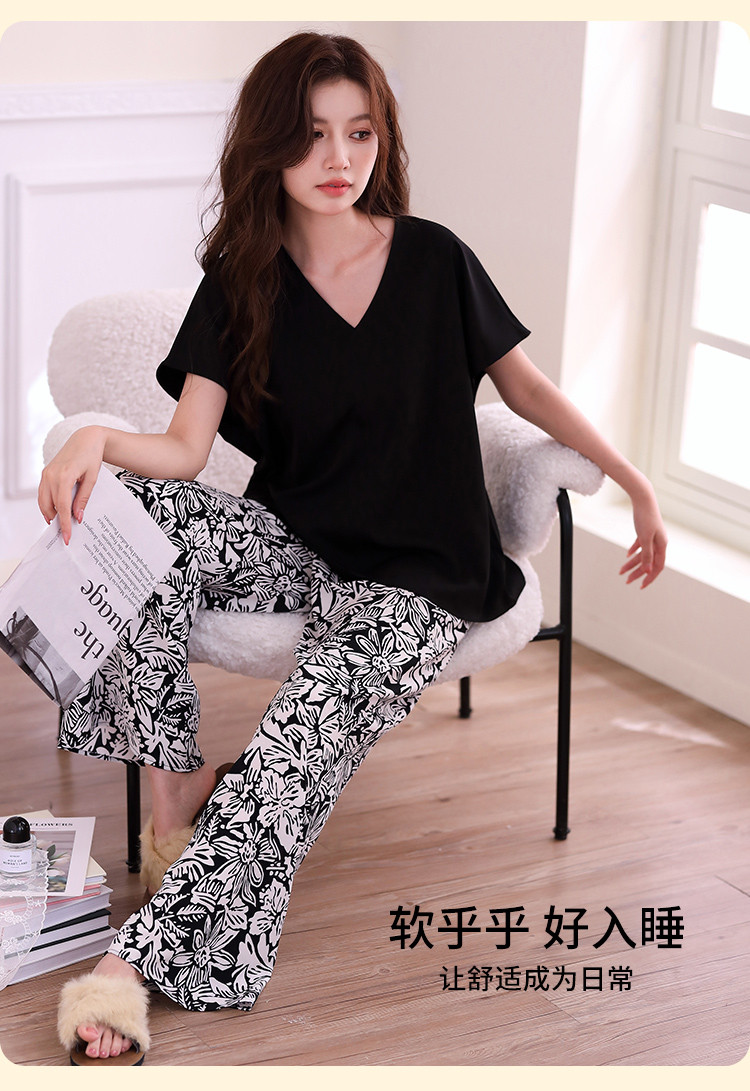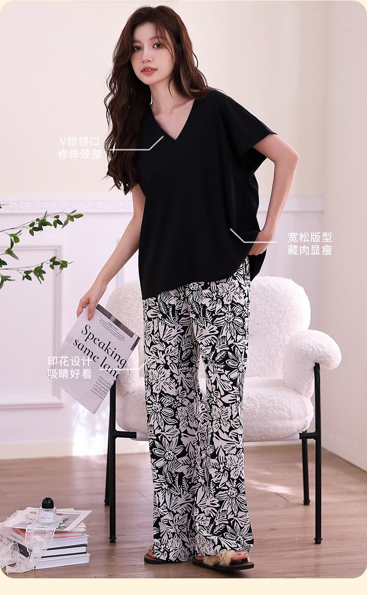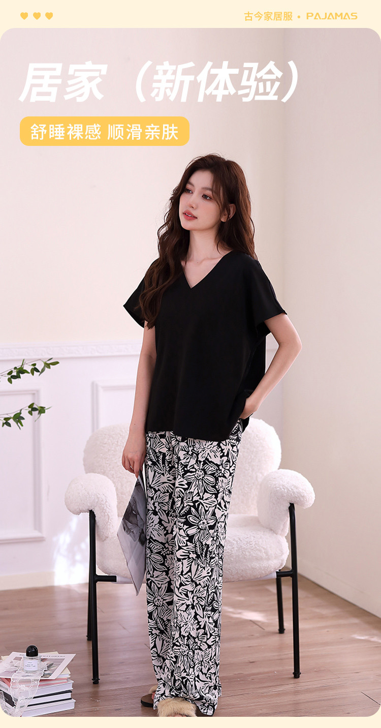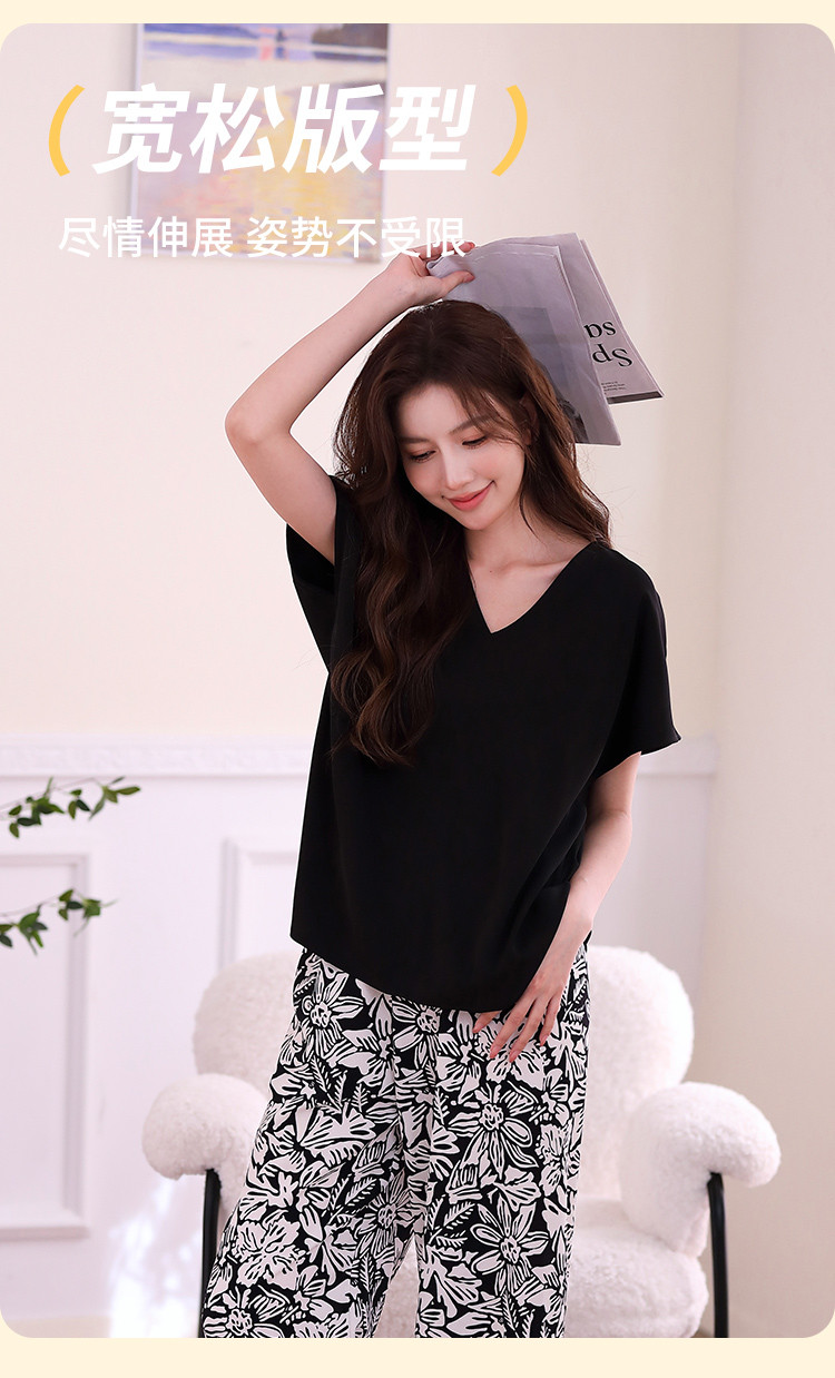 【清爽透气 裸感丝滑】复古风女士睡衣春夏款可外穿家居服套装 840971