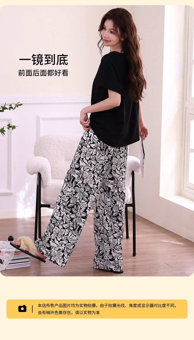 商品名称:【清爽透气 裸感丝滑】复古风女士睡衣春夏款可外穿家居服套装 840971