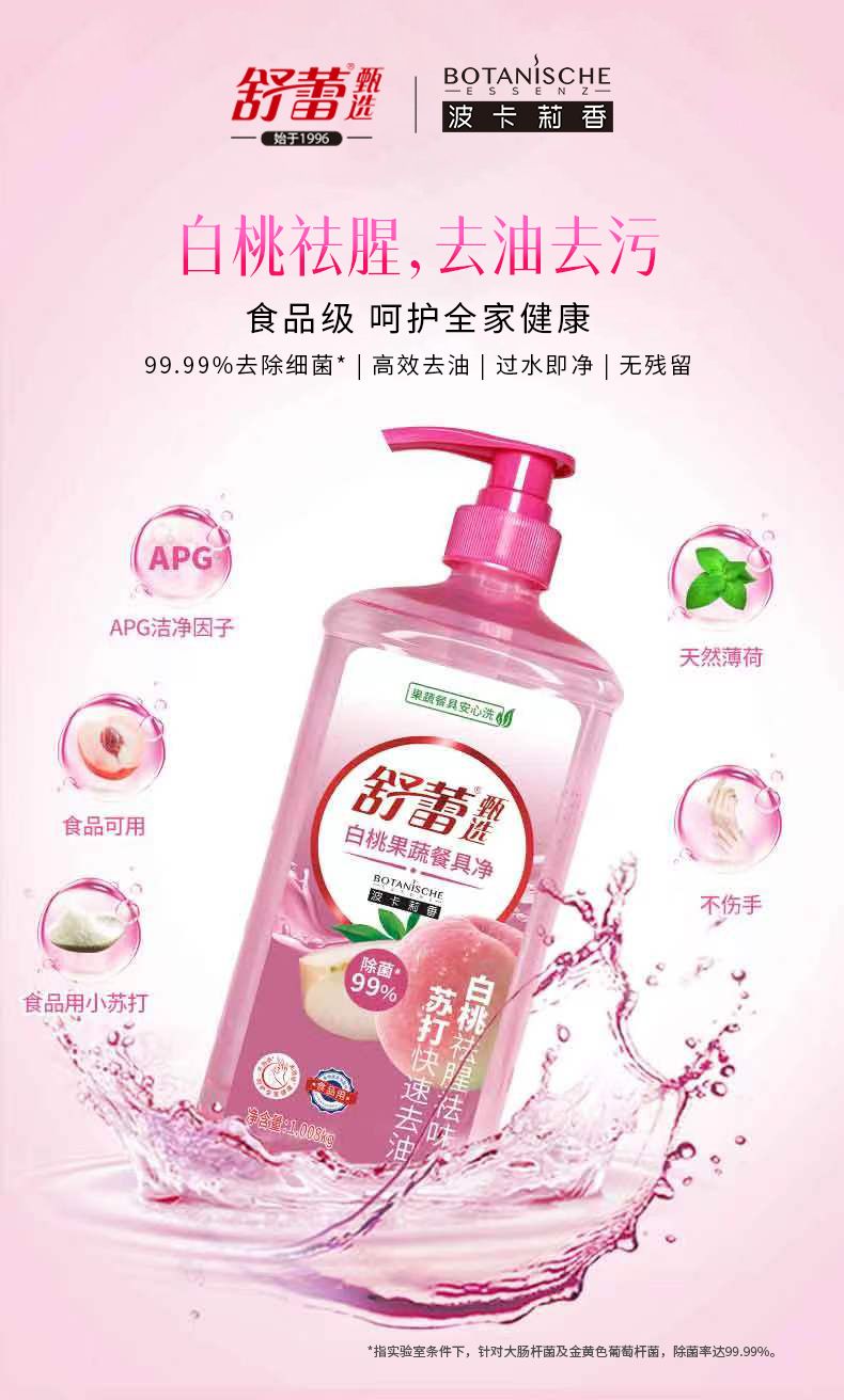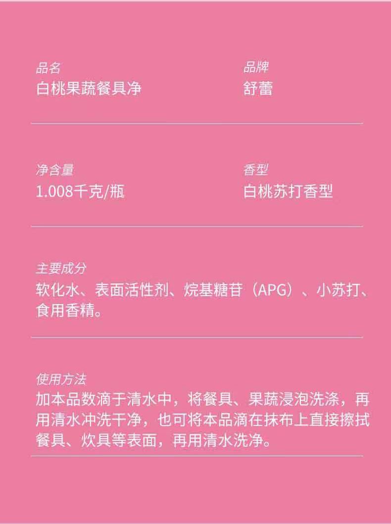 商品名称:舒蕾波卡莉香白桃果蔬餐具净洗洁精洗碗食品级整箱不伤手洗洁精