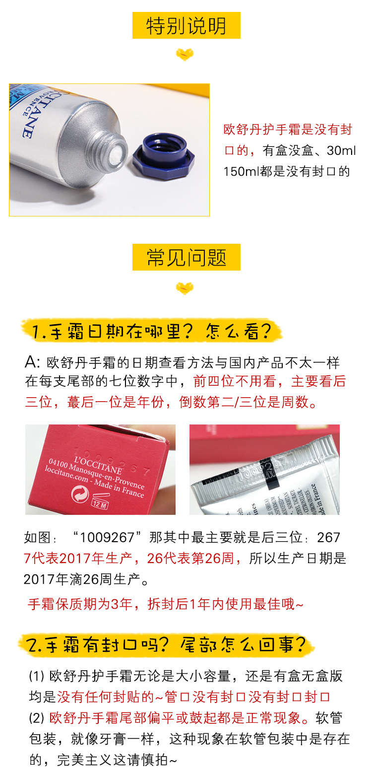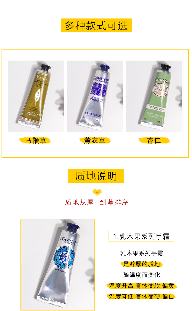 商品名称:欧舒丹 明星护手霜六件套 乳木果30ml*2樱花30ml*2玫瑰30ml*2 新旧版本随机发