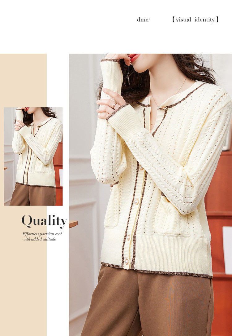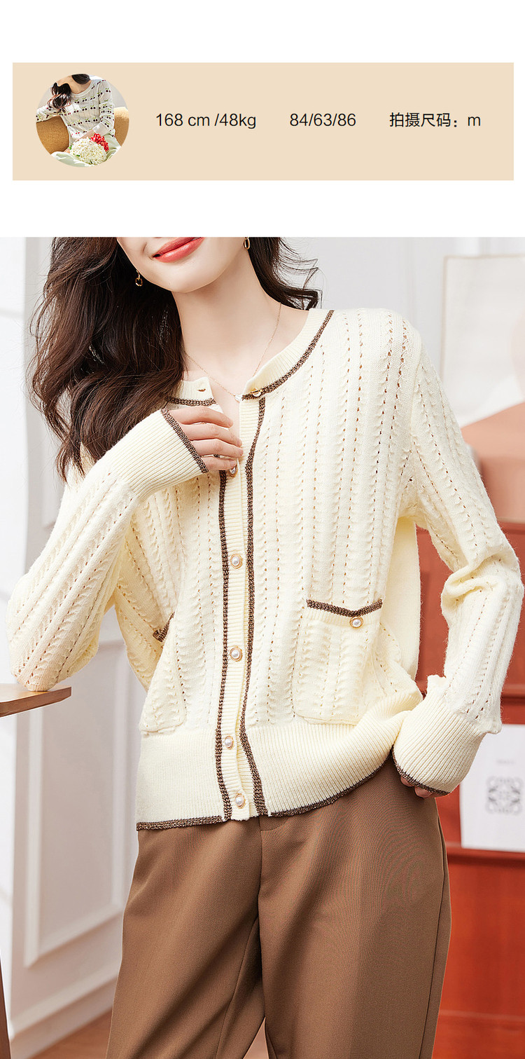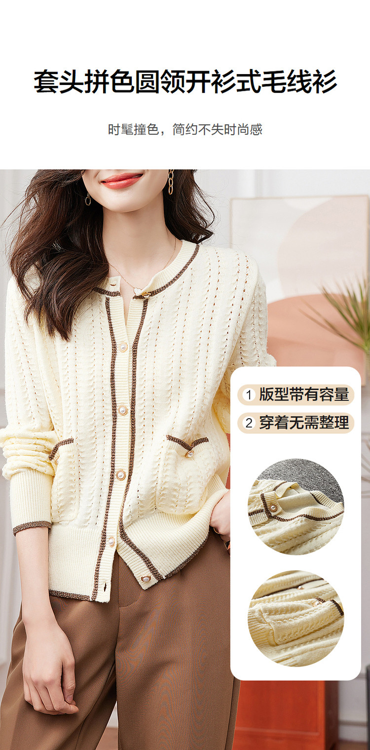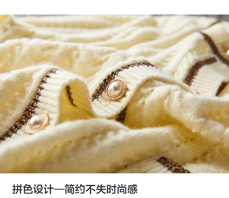 商品名称:【爆热销】春秋安哥拉纤绒纱拼色开衫金属丝嵌边毛衣女春秋 411777